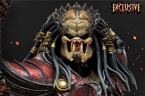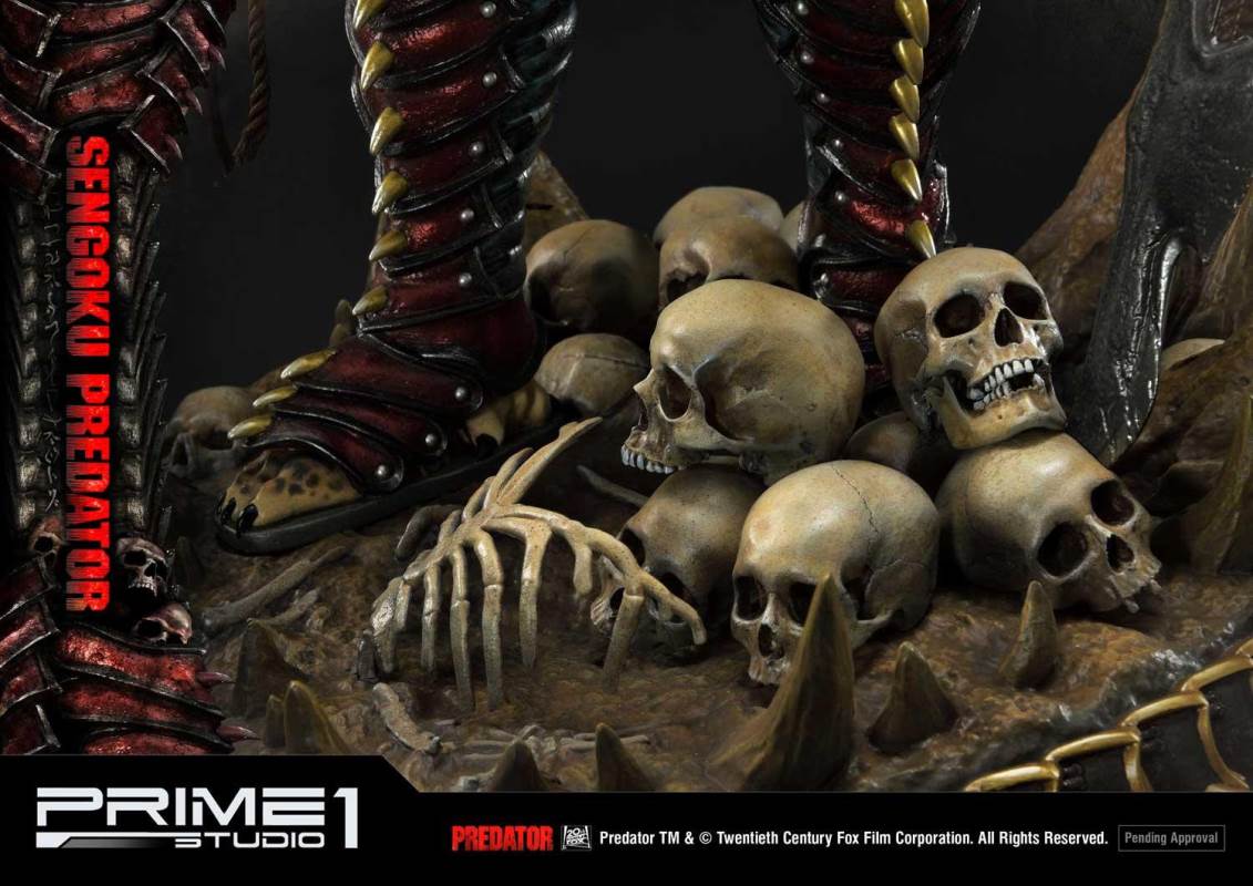 การออกแบบชุดเกราะมาจากยุค Sengoku สีหลักคือสีแดงและสีทองซึ่งให้บรรยากาศที่ดีของวัฒนธรรมญี่ปุ่น ใบหน้าที่คุ้นเคยของ Predator มีการแสดงออกที่โหดร้ายมากกว่าเมื่อเปรียบเทียบกับชิ้นส่วนอื่น ๆ เขาถือเส้นประสาทไขสันหลังในมือขวาของเขาและถือหอกใหญ่อยู่ทางซ้าย มีกะโหลกศีรษะและโครงกระดูกมนุษย์กระจายอยู่ที่เท้าของเขา รูปปั้นมีความสูงประมาณ 35 นิ้วและสร้างขึ้นด้วยความใส่ใจในรายละเอียด