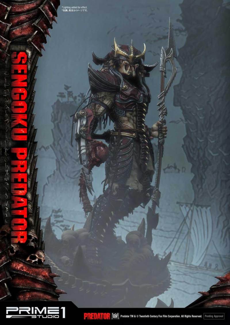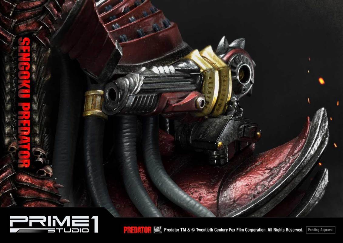 การออกแบบชุดเกราะมาจากยุค Sengoku สีหลักคือสีแดงและสีทองซึ่งให้บรรยากาศที่ดีของวัฒนธรรมญี่ปุ่น ใบหน้าที่คุ้นเคยของ Predator มีการแสดงออกที่โหดร้ายมากกว่าเมื่อเปรียบเทียบกับชิ้นส่วนอื่น ๆ เขาถือเส้นประสาทไขสันหลังในมือขวาของเขาและถือหอกใหญ่อยู่ทางซ้าย มีกะโหลกศีรษะและโครงกระดูกมนุษย์กระจายอยู่ที่เท้าของเขา รูปปั้นมีความสูงประมาณ 35 นิ้วและสร้างขึ้นด้วยความใส่ใจในรายละเอียด