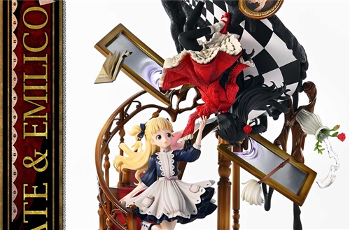 In a grand and dark mansion, the inhabitants of the Shadow House are attended to by their Living Doll partners who endlessly clean the soot their masters emit. Step into the daily life of Shadow House, the TV anime that depicts the mysterious world of shadows and dolls. In this magnificent diorama figure set, we proudly present the protagonists, Kate and Emilico!With a Möbius loop-like spiral staircase and a large mirror that connects their worlds, this elaborate diorama figure set beautifully captures the essence of the first season's openings and endings, bringing the world of Shadow House to life.Every detail, from Kate's red, rose hair accessory and white-frilled dress to Emilico’s blue ribbon and her doll companion, Rolly, in her pocket, is carefully crafted to match the characters' appearance in the series. Enjoy their mirrored positions, reminiscent of a playing card, adding to the fun and charm of the set.Surrounding the duo, you'll find familiar items such as the “Unthinking notebook” with flipped pages, the handy broom, the toppling flower vase, and the smiling “scorches”. Each item is neatly designed, allowing you to relive various memorable scenes.Embrace the heartwarming bond between Kate and Emilico and immerse yourself in the captivating world of gothic mystery! Specifications: Shadow House-themed base Notice: Prototype samples shown.Product details could be subject to change without further notice.Please note the final product specifications may differ because each product is Handmade.Since the product is still in the development stage, the Size (up to 10%) & Weight (up to 10kg) may be changed during the production stage. DETAILSBrandsPRISMA WINGCollectionPRISMA WING CollectionSeriesShadows HouseScale1/7 ScaleProduct CodePWSDH-01Product Size Approx.H:43cm W:31cm D:28cmMaterialsPolystone and other materialsJAN4580708047874