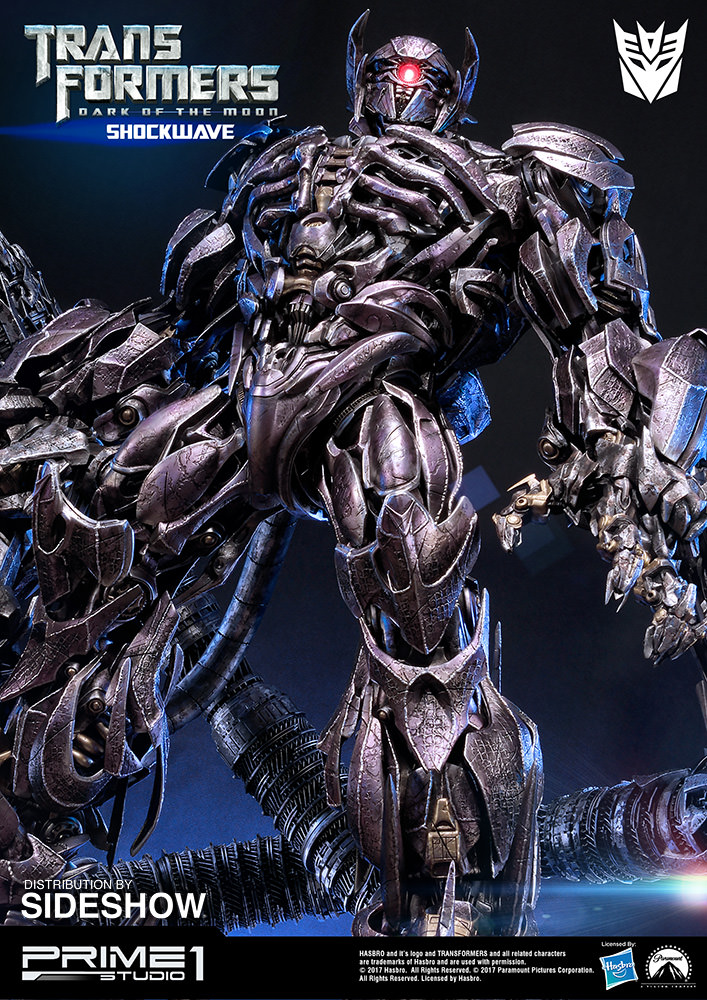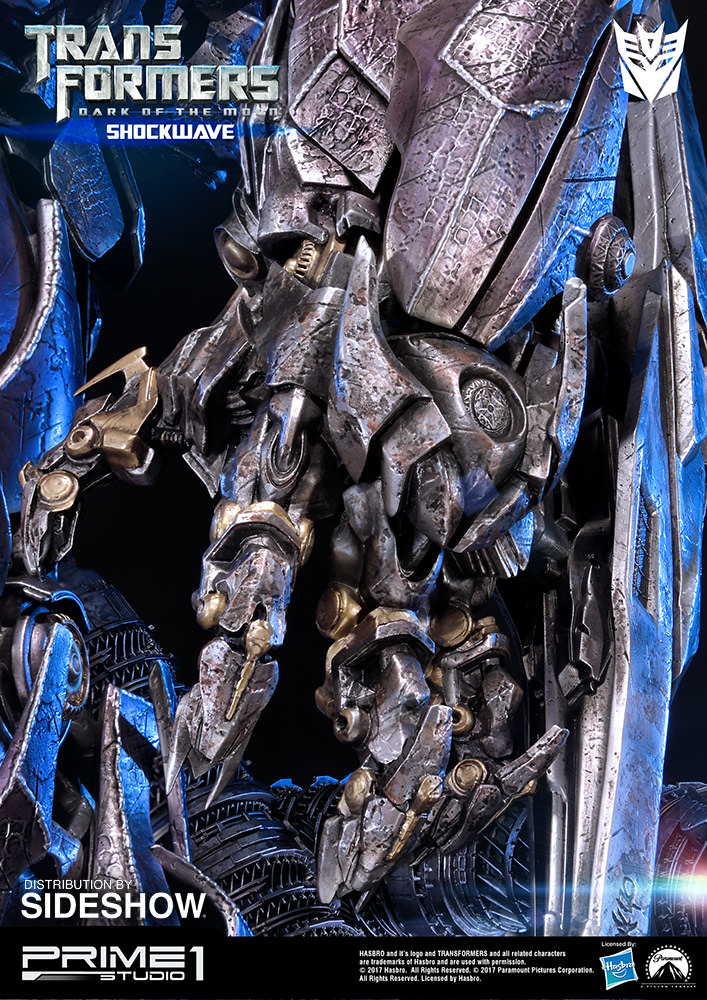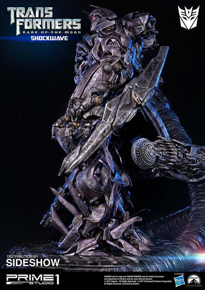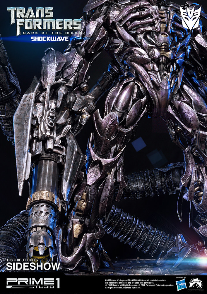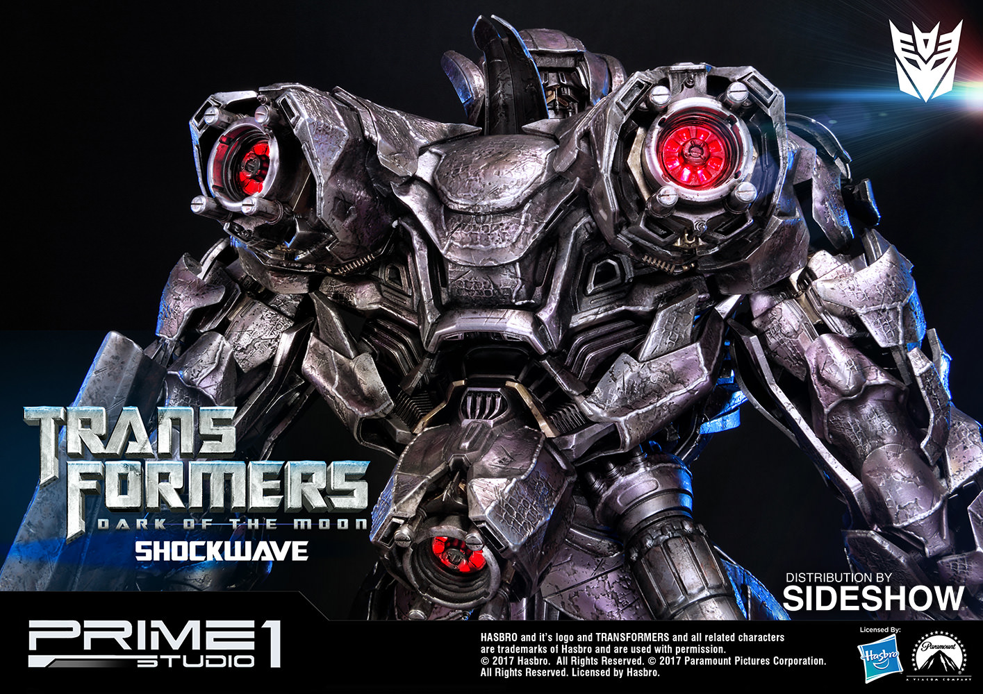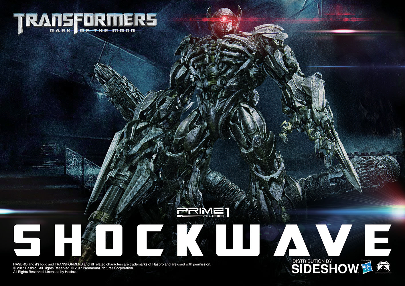 Shockwave Statue by Prime 1 StudioABOUT THIS STATUE“Emotionless, coldly logical, utterly ruthless... killing is all Shockwave lives for.”— Optimus PrimeSideshow and Prime 1 Studio are proud to present Shockwave from Transformers: Dark of the Moon. A peerless scientist with deadly efficiency and a cold devotion to logic, he is one of the very few who could rival Megatron. Shockwave is ready and willing to destroy the Autobots with his arm-mounted AstroMag Cannon.Don't miss your chance to own the most anticipated Decepticon Transformers Statue.LicenseTransformersTypeStatueManufacturerPrime 1 StudioWHAT'S IN THE BOX?The Shockwave Statue features:Stands approximately 37 inches tall LED functions in eye, cannon, and backADDITIONAL DETAILS & DIMENSIONSExpected to ShipJun 2018 - Aug 2018Item shown is a prototype. When shipped, the final production piece may differ in appearance.Product Size36.61 H (929.89mm) x 35.03 W (889.76mm) x 36.22 L (919.99mm)*Dimensional WeightTBDInt'l Dim. WeightTBD* Size and weight are approximate values.SKU902999UPC747720237209PRICE$2,699.99HASBRO and it's logo and TRANSFORMERS and all related characters are trademarks of Hasbro and are used with permission. © 2017 Hasbro. All Rights Reserved. © 2017 Paramount Pictures Corporation. All Rights Reserved. Licensed by Hasbro.