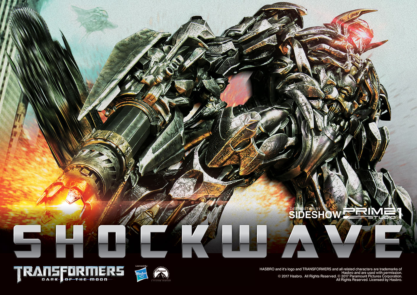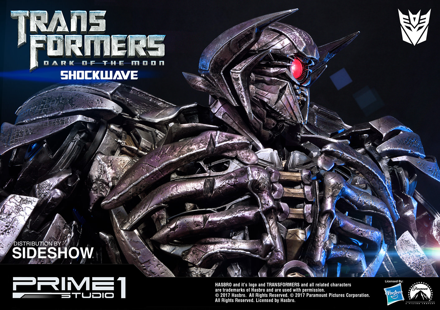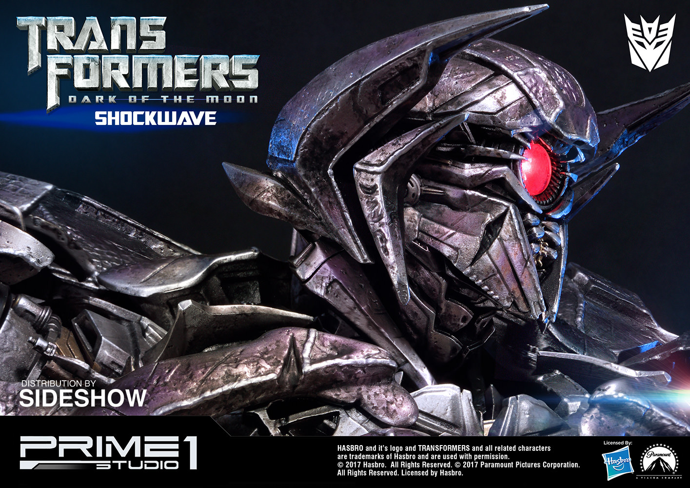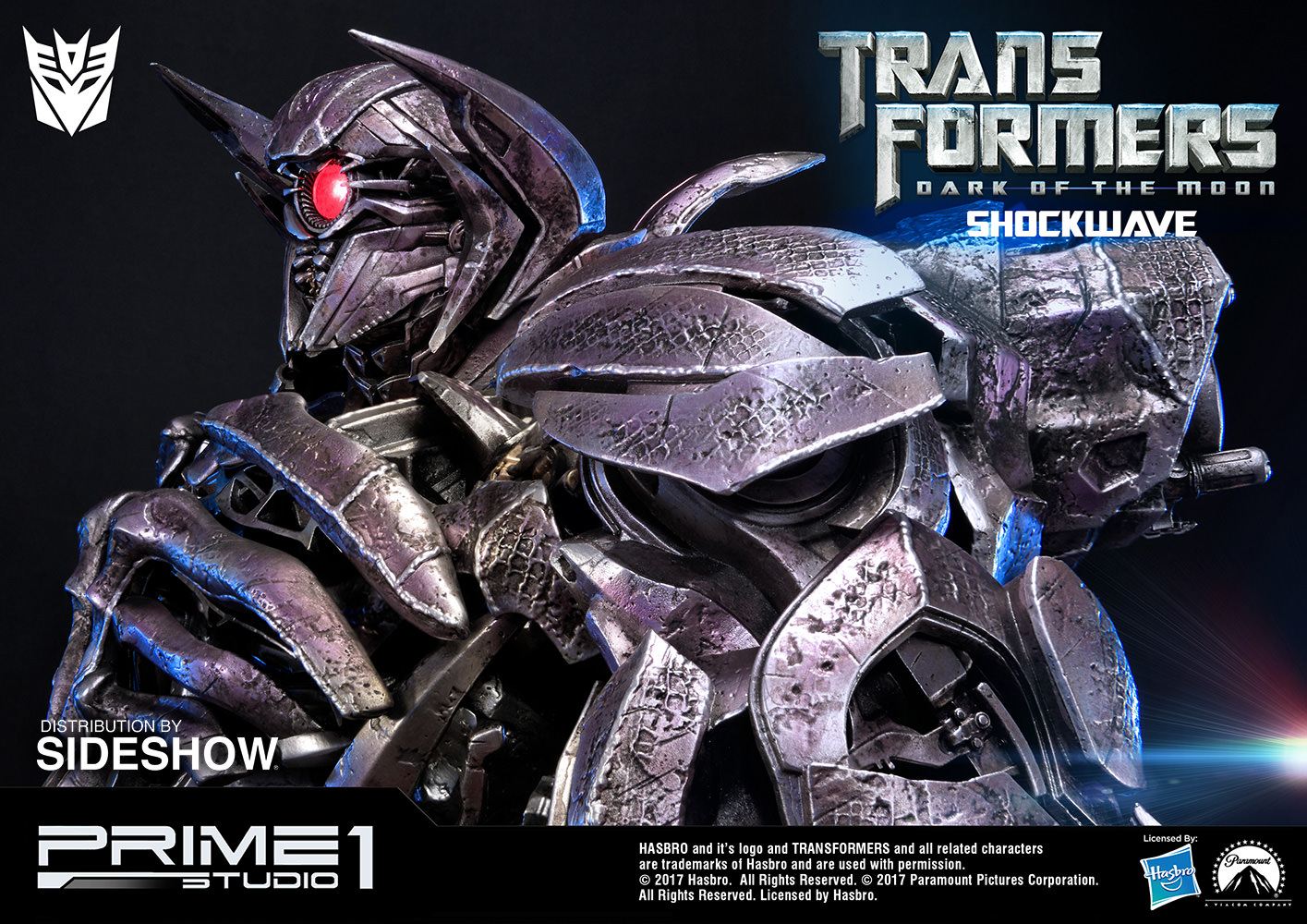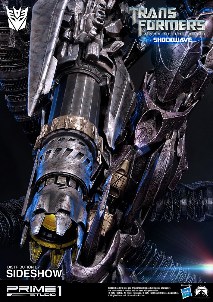 Shockwave Statue by Prime 1 StudioABOUT THIS STATUE“Emotionless, coldly logical, utterly ruthless... killing is all Shockwave lives for.”— Optimus PrimeSideshow and Prime 1 Studio are proud to present Shockwave from Transformers: Dark of the Moon. A peerless scientist with deadly efficiency and a cold devotion to logic, he is one of the very few who could rival Megatron. Shockwave is ready and willing to destroy the Autobots with his arm-mounted AstroMag Cannon.Don't miss your chance to own the most anticipated Decepticon Transformers Statue.LicenseTransformersTypeStatueManufacturerPrime 1 StudioWHAT'S IN THE BOX?The Shockwave Statue features:Stands approximately 37 inches tall LED functions in eye, cannon, and backADDITIONAL DETAILS & DIMENSIONSExpected to ShipJun 2018 - Aug 2018Item shown is a prototype. When shipped, the final production piece may differ in appearance.Product Size36.61 H (929.89mm) x 35.03 W (889.76mm) x 36.22 L (919.99mm)*Dimensional WeightTBDInt'l Dim. WeightTBD* Size and weight are approximate values.SKU902999UPC747720237209PRICE$2,699.99HASBRO and it's logo and TRANSFORMERS and all related characters are trademarks of Hasbro and are used with permission. © 2017 Hasbro. All Rights Reserved. © 2017 Paramount Pictures Corporation. All Rights Reserved. Licensed by Hasbro.