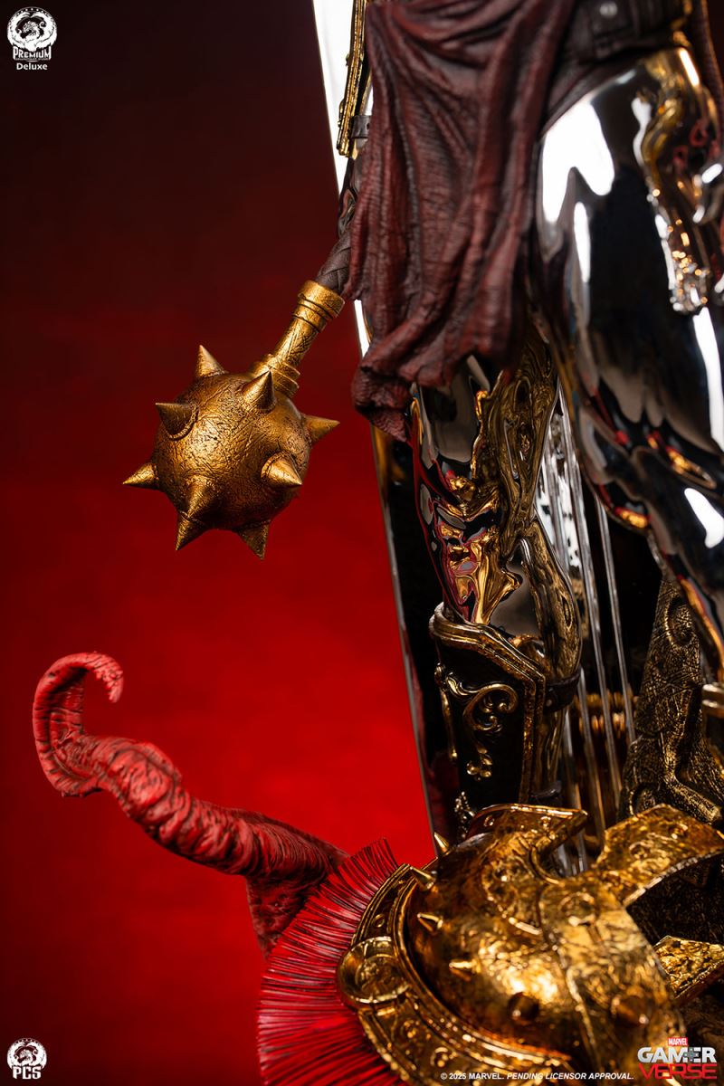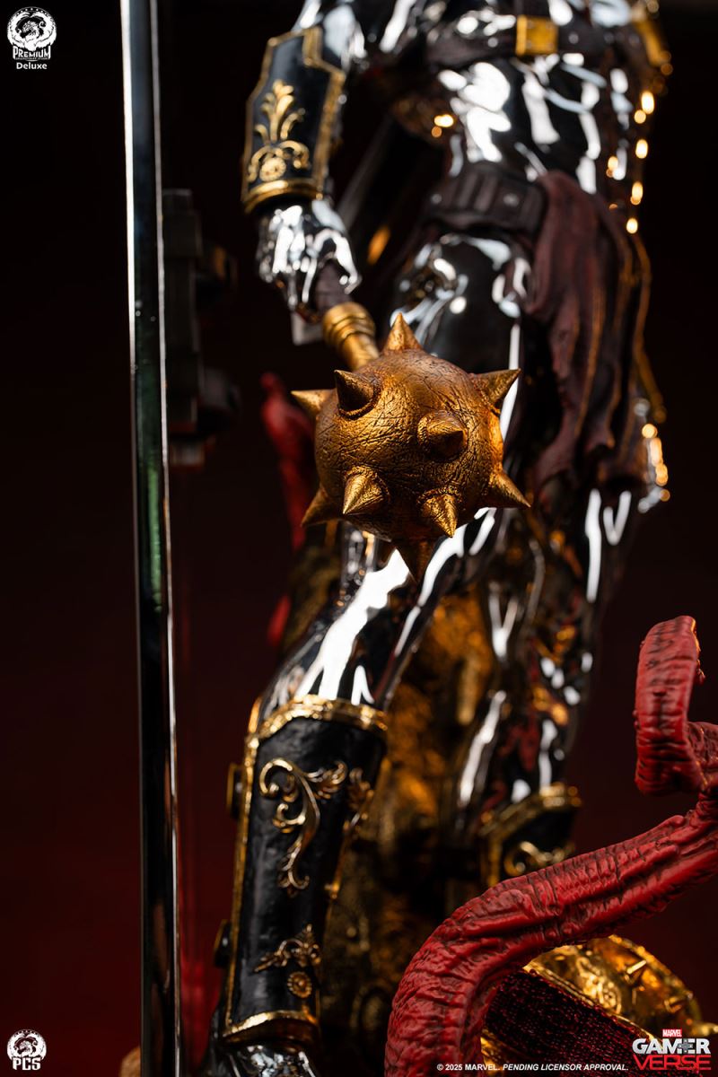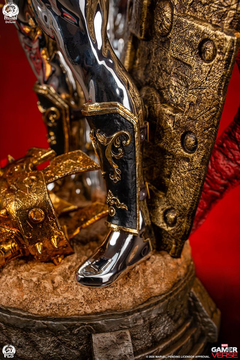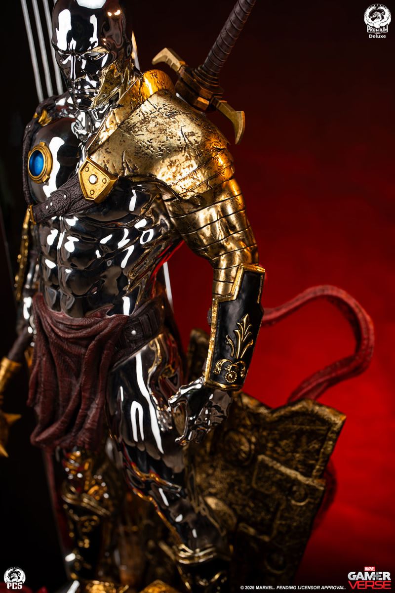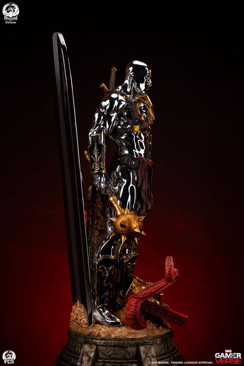 Sideshow and Premium Collectibles Studio proudly present the Silver Surfer - 1:3 Scale Statue, inspired by the interstellar herald’s gladiator variant in the smash hit mobile game, Marvel Snap! Standing an impressive 30.5“ tall, this beautiful collectible captures the stoic intensity of the Silver Surfer armed to battle against his will, (thanks to the blue control disc fixed to his chest) in the fighting pits of Sakaar. This popular rendition of the classic Marvel character is decked out in an assortment of armor and weapons cobbled together from the arena’s makeshift arsenal. The bulky bronze pauldron on his left shoulder is pitted with damage and connects to an array of straps that also acts as a sheath for the massive great sword on his back. His ornately decorated gauntlets and greaves, along with a reddish-brown loincloth give this galactic traveler a distinctly Roman look, fitting for the massive arena he’s held captive in. The Silver Surfer himself is covered in a dazzling, reflective chrome finish from head to toe. The finish appears even brighter when set against the battle worn armor and weapons he is adorned with. In his right hand he wields a spiked mace while behind him his iconic surfboard, fashioned into a makeshift shield, juts out from the base which has been sculpted with a realistic sand-like texture to recreate the feel of the harsh terrain. Set a course for adventure and add the Silver Surfer 1:3 Scale Statue by PCS to your Marvel Gamerverse collection today!Product SizeHeight: 30.5 (77 cm)Width: 15.5 (39 cm)Depth: 12.5 (32 cm) *