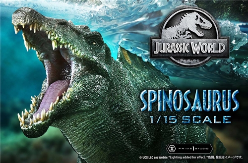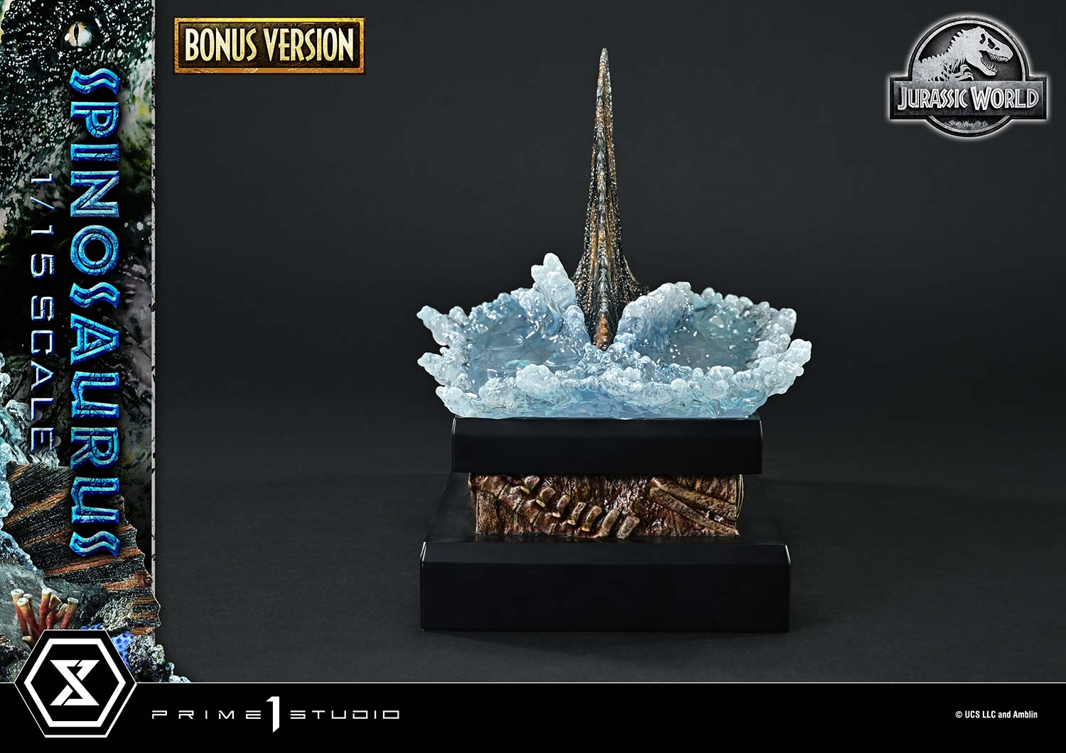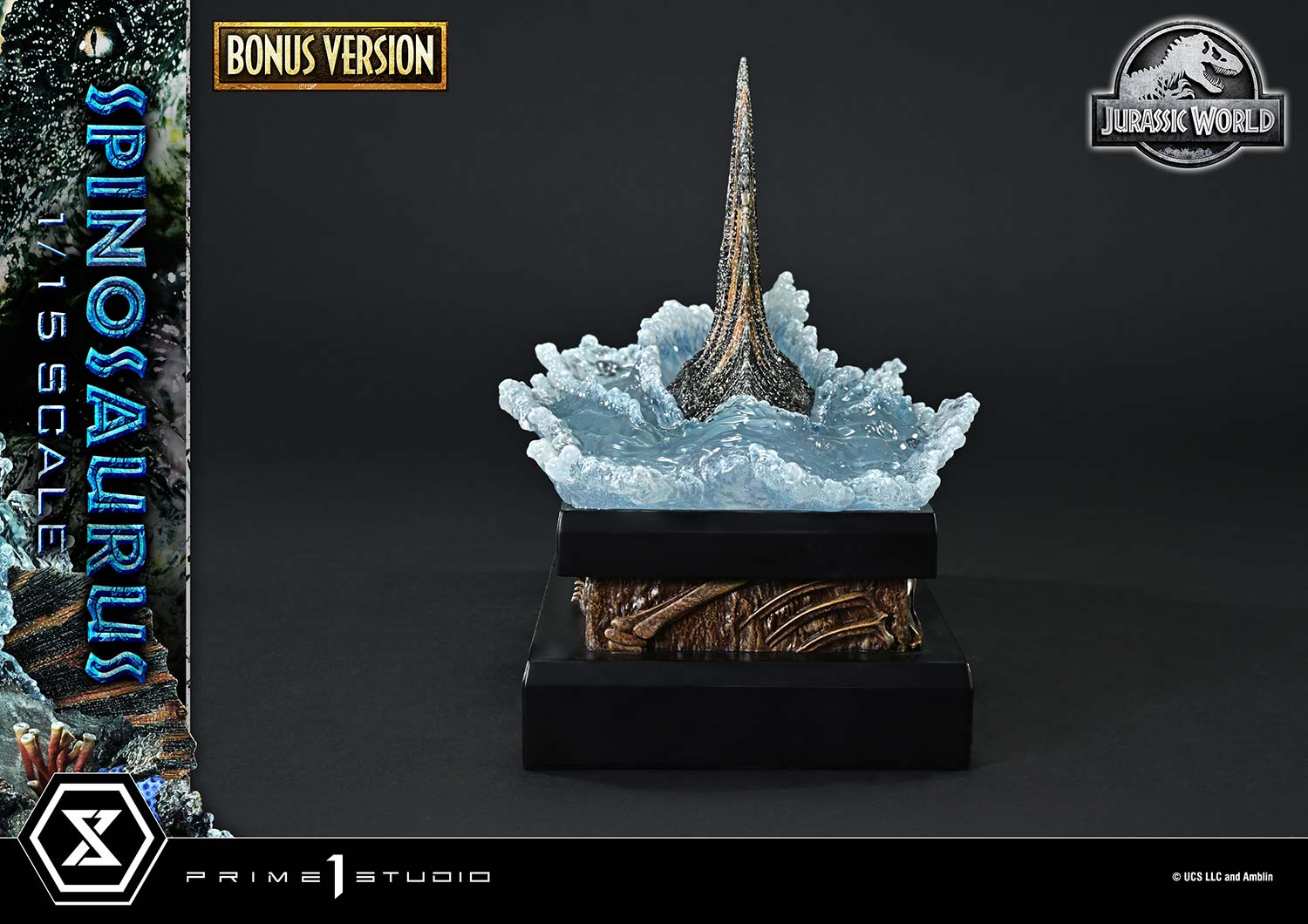 A striped sail at the surface, a massive tail below.The semi‑aquatic carnivorous dinosaur emerges in 1/15 scale.To collect DNA from the three most iconic dinosaurs, an expedition enters a forbidden island in Jurassic World: Rebirth of the Earth. From this blockbuster that ushers in a new chapter for the series, Spinosaurus joins the Legacy Museum Collection.Spinosaurus returns to the screen as a semi aquatic dinosaur. This statue presents its newly reinterpreted form alongside the seascape. Its oar-like tail and four water gripping legs were posed after a close analysis of its on screen appearances. Contact points with the water’s surface and rocky terrain also create a sense of buoyancy, capturing its powerful swim.A moist texture deep inside its wide open jaws. The iconic vertical stripes, tinted with a weathered orange. Webbing developed on the hind feet. Taking full advantage of the immense presence of 1/15 scale, every detail is finished to a high level of definition. Layered colors and textures across the skin create a rich, realistic surface, while scars carved throughout the body evoke a story beyond human understanding.The specially designed base, shimmering with sunlight, is inspired by an untouched sea. Mottled, weathered rocks, fish with a beautiful sheen, and vivid red crabs—each sculpt and color is carefully refined to create a wild scene worthy of a dinosaur’s habitat.The Bonus Version also includes a vignette that captures a chilling ocean moment. A striped sail rises with a burst of spray as it closes in around a boat—experience the fear that Zora and her team felt.Delivered in a commanding size with meticulous three dimensional craftsmanship, this Spinosaurus brings the thrill of the sea to your collection.Specifications:Jurassic World Rebirth-themed BaseOne (1) Vignette Spinosaurus Sail [BONUS PART]Region ExclusiveNotice:Prototype samples shown.Product details could be subject to change without further notice.Please note the final product specifications may differ because each product is Handmade.Since the product is still in the development stage, the Size (up to 10%) & Weight (up to 10kg) may be changed during the production stage.© UCS LLC and AmblinDETAILSBrandsPRIME 1 STATUECollectionLegacy Museum CollectionSeriesJurassic SeriesScale1/15 ScaleProduct CodeLMCJWF-06SProduct Size Approx.H:39cm W:74cm D:34cmH:20cm W:34cm D:16cm(Vignette Spinosaurus Sail)Carton(Est):1 boxProduct Weight Approx.13.18 kgCarton Size Approx.Carton A [ H 98cm × W 46cm × D 45.5cm ]MaterialsPolystone and other materialsJAN4582647124258