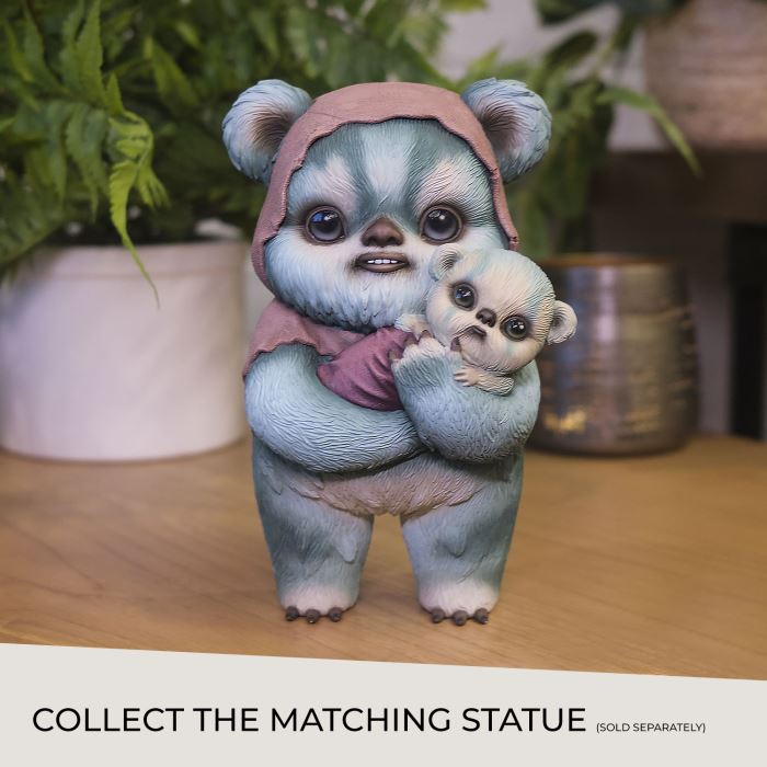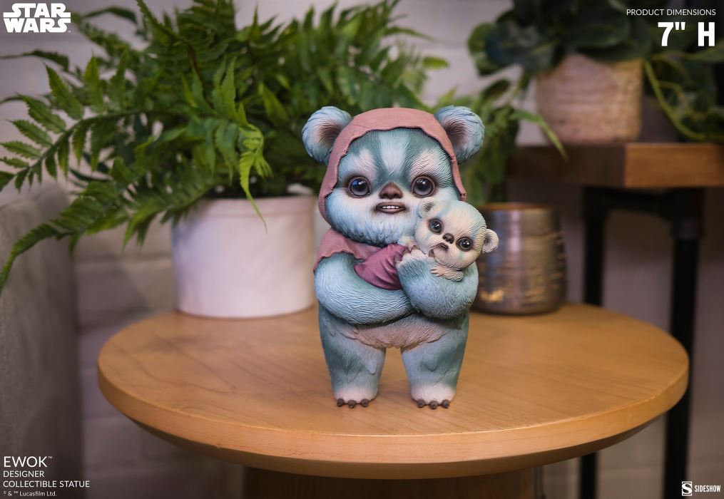 EWOKDesigner Collectible Statue by Sideshow Collectibles“Yub nub!”Sideshow presents the EwokTM Designer Collectible Statue, based on the whimsical, pop-surrealist artwork of Mab Graves.It takes a village to raise a wokling! Measuring 7” tall x 4.5” wide x 4” deep, this charming Star WarsTM collectible perfectly captures the dreamy colors and textures of Graves’ signature painting style. Here, an adult Ewok clutches its infant as the pair of forest moon dwellers look out with wide, shining eyes. Soft blue, yellow, and green fur tones contrast with the earthy colors of their cloth garments, sculpted with incredible attention to detail to give the cloak a worn and weathered appearance. The Ewok Designer Collectible Statue also includes a removable black base that attaches to the feet. From head to toe, this stunning Star Wars statue brings a new perspective to the iconic and well-beloved Ewoks that will have you smitten with their adorable appearance wherever you display them.Bring home the Ewok Designer Collectible Statue by Sideshow and Mab Graves today.Brand : Star WarsCharacter : EwokManufacturer :Sideshow CollectiblesType : StatuesDesigner Collectible StatueGenre: Sci-fi Pop Culture Action AdventureMaterials : ResinProduct SizeHeight: 7 (18 cm)Width: 4.5 (11 cm)Depth: 4 ( 10 cm)Weight: 2 lbs (0.9 kg) *SKU: 700242UPC: 747720264694