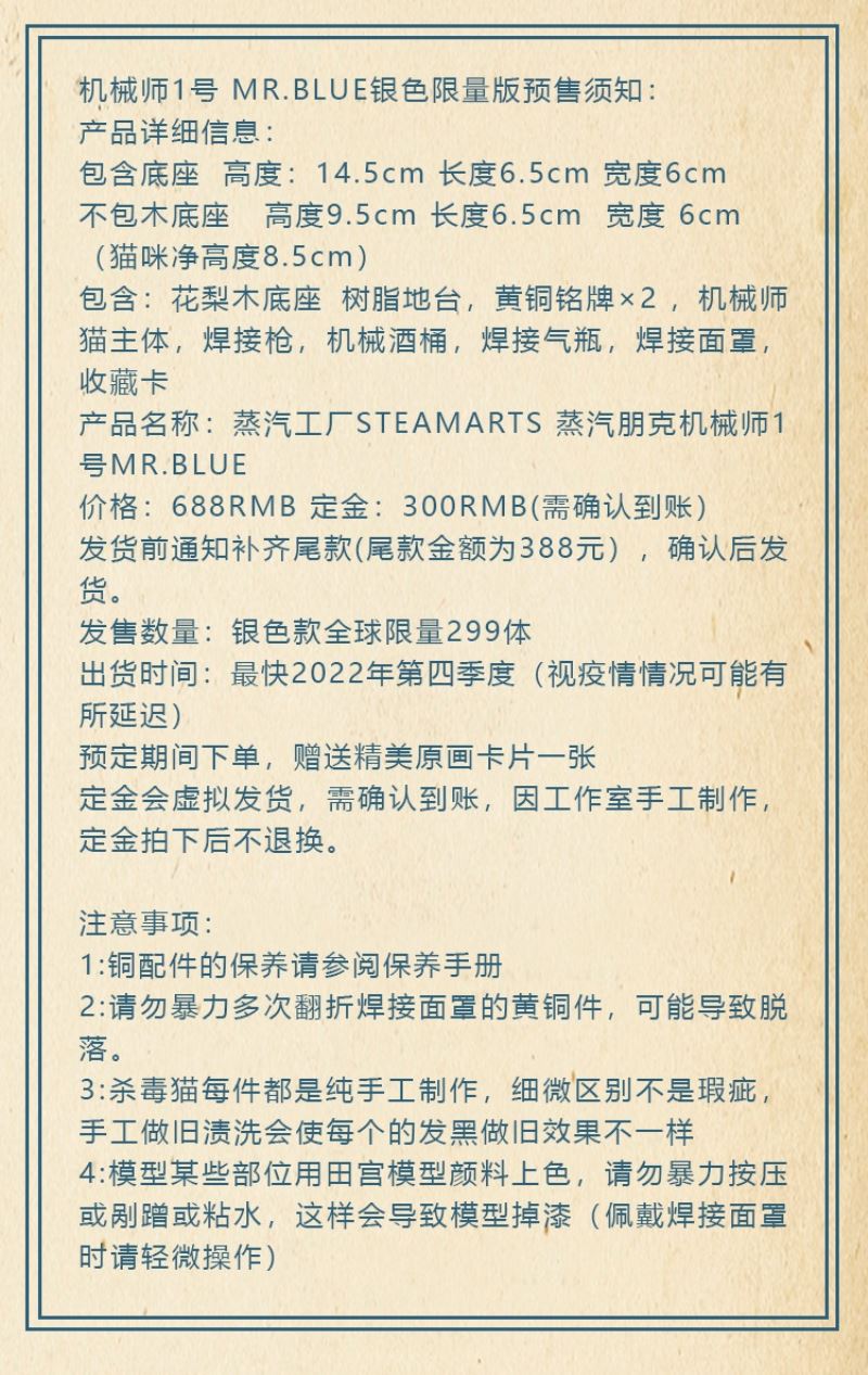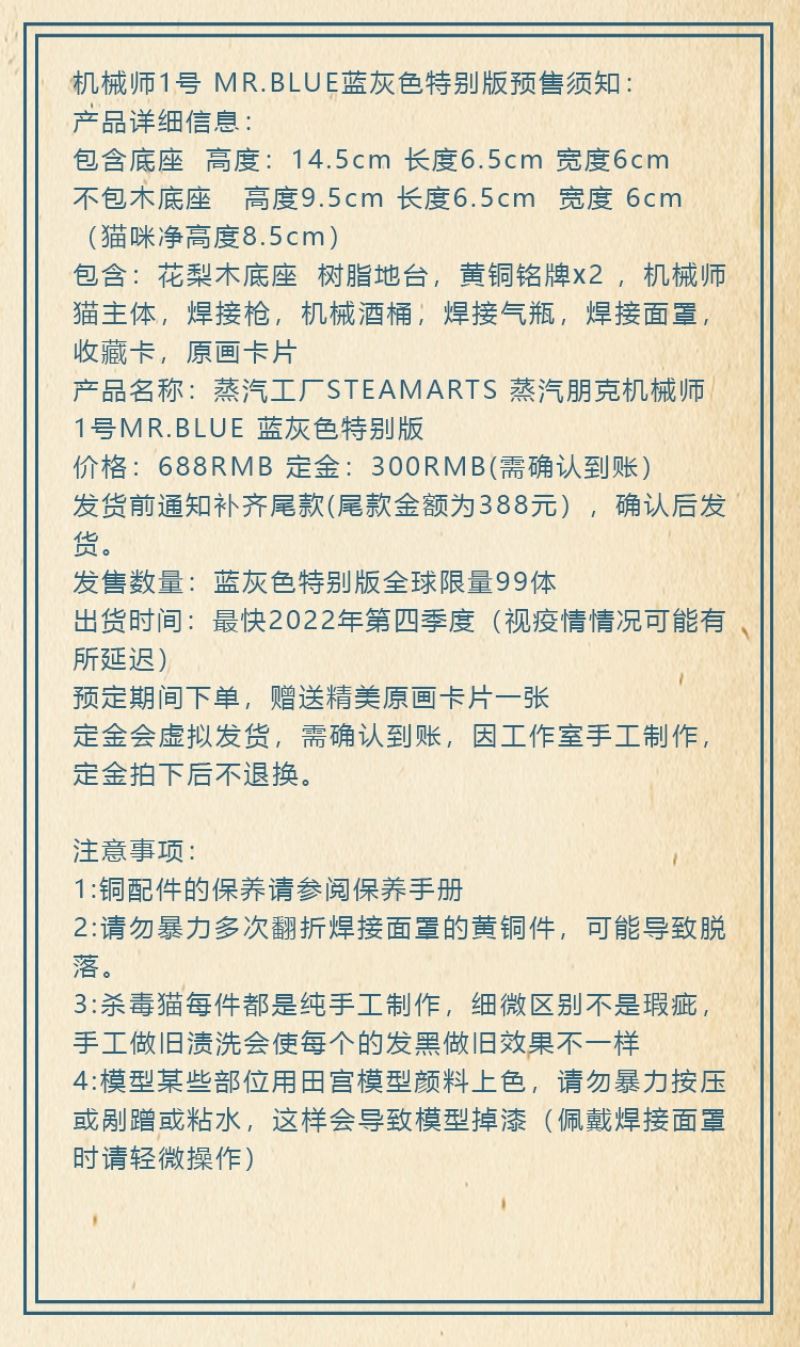 จะถูกส่งแบบเสมือนจริงและต้องยืนยันบัญชี ,งานเป็นงานทำมือ มีความแตกต่างส่วนบุคคลและร่องรอยที่ทำด้วยมือ และจะไม่มีการคืนหรือแลกเปลี่ยนหลังจากขายแล้ว