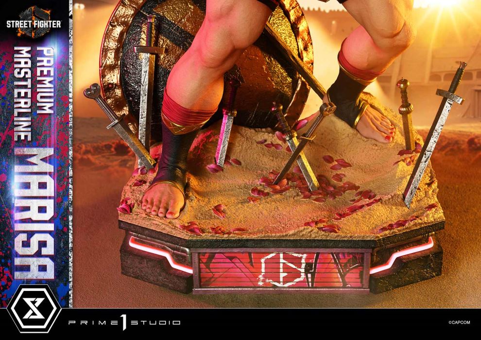 With Stunning Sculpting and Painting,The Fearless Pankratiast Strikes at the Heart!As additional characters continue to join the fray, Street Fighter 6 continues to build excitement. From this highly acclaimed title comes Marisa, brought to life in 3D by Prime 1 Studio’s Premium Masterline!Making her debut in Street Fighter 6, Marisa, the Pankratiast, swiftly captured the hearts of players. Now, her bold and daring appeal is fully embodied in this stunning statue. The hair, reminiscent of an ancient Greek helmet, has been carefully crafted to capture the perfect color and flow. Her confident expression is accurately recreated, right down to the glossy lips and the beauty mark near her left eye. The powerful muscles covering her body tell the story of her incredible strength, while the bulging veins and flushed skin add a touch of realism. Her finely detailed costume and accessories reflect her jewelry designer's touch.The base, featuring a sword and shield plunged into the ground, and flower petals drifting down, is inspired by the Colosseum stage. Pink LEDs and graffiti on the shutter add a street-style flair, drawing you into the world of the game.With the combination of artistry in painting, sculpting, and features, Prime 1 Studio’s Critical Arts will strike right at your heart with their passionate love for Marisa!Specifications:Street Fighter 6 Themed Base (with LED Illumination) LED Power Supply Method: TBA* Please prepare batteries, USB cables, or other necessary items depending on the final power supply method.Notice:Prototype samples shown.Product details could be subject to change without further notice.Please note the final product specifications may differ because each product is Handmade.Since the product is still in the development stage, the Size (up to 10%) & Weight (up to 10kg) may be changed during the production stage.©CAPCOMDETAILSBrandsPRIME 1 STATUECollectionPremium MasterlineSeriesStreet FighterScale1/4 ScaleProduct CodePMSF6-02Product Size Approx.H:70cm W:45cm D:34cmCarton(Est):2 boxProduct Weight Approx.18.5 kgMaterialsPolystone and other materialsJAN4582647120274