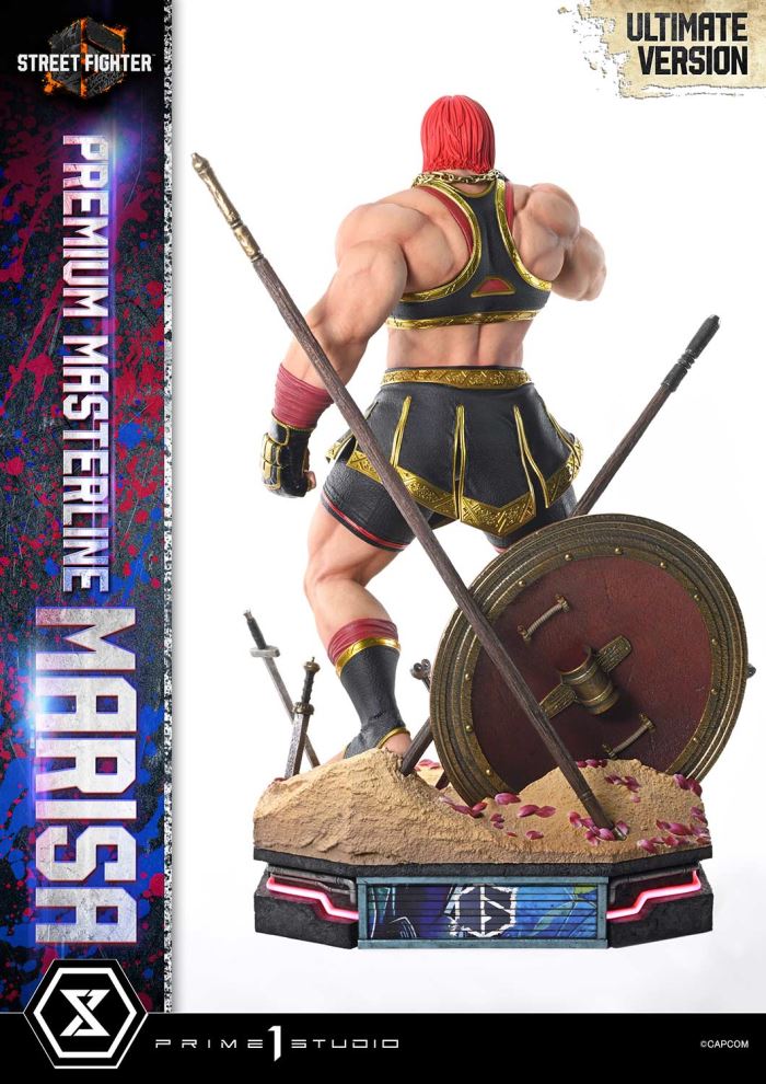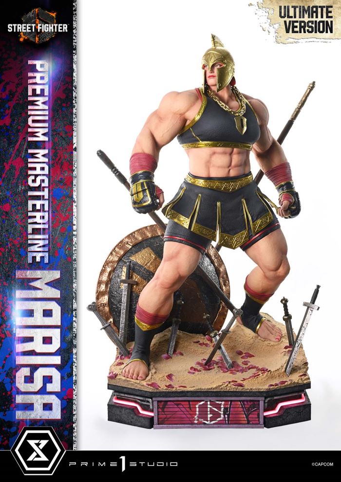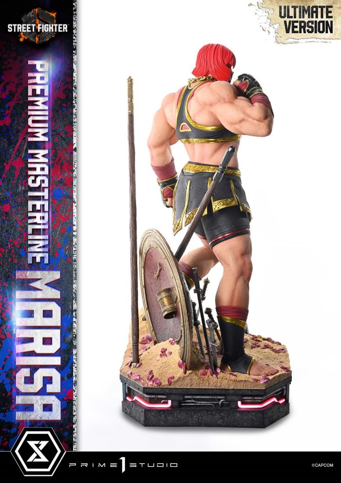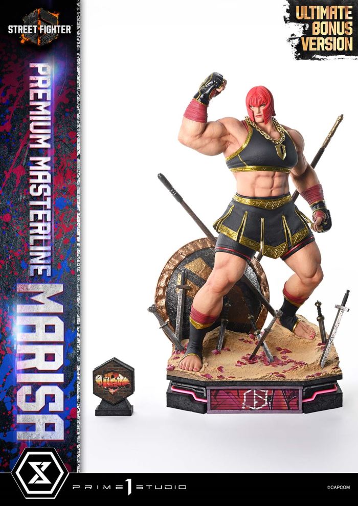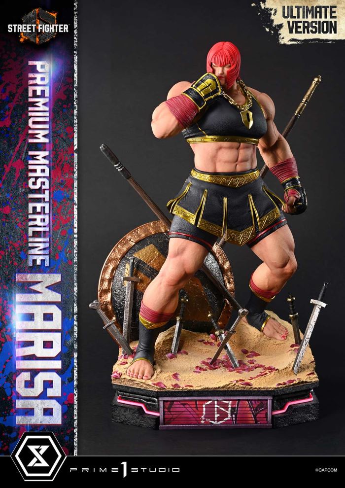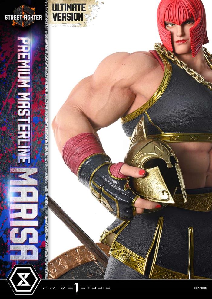 With Stunning Sculpting and Painting, the Fearless Pankratiast Strikes at the Heart!As additional characters continue to join the fray, Street Fighter 6 continues to build excitement. From this highly acclaimed title comes Marisa, brought to life in 3D by Prime 1 Studio’s Premium Masterline series!Making her debut in Street Fighter 6, Marisa, the Pankratiast, swiftly captured the hearts of players. Now, her bold and daring appeal is fully embodied in this stunning statue. The hair, reminiscent of an ancient Greek helmet, has been carefully crafted to capture the perfect color and flow. Her confident expression is accurately recreated, right down to the glossy lips and the beauty mark near her left eye. The powerful muscles covering her body tell the story of her incredible strength, while the bulging veins and flushed skin add a touch of realism. Her finely detailed costume and accessories reflect her jewelry designer's touch.The base, featuring a sword and shield plunged into the ground, and flower petals drifting down, is inspired by the Colosseum stage. Pink LEDs and graffiti on the shutter add a street-style flair, drawing you into the world of the game.The Ultimate Bonus Version comes with various head and arm parts, allowing you to recreate Marisa’s signature Goddess of the Hunt move, where she kisses her fist. You can also use the effect wall and head stands to create your own unique display combo.As a bonus for this version, a character graffiti logo stand is also included, bringing the hip-hop vibe of the game to your display.With the combination of artistry in painting, sculpting, and features, Prime 1 Studio’s Critical Arts will strike right at your heart with their passionate love for Marisa!Specifications:Street Fighter 6 Themed Base (with LED Illumination)Three (3) Swappable Heads (Serious, Kiss, Helmet)Four (4) Right Arms (Flexed, Holding Helmet, Kissing Fist, Relaxed Arm)Two (2) Head StandsOne (1) Effect WallOne (1) Marisa Graffiti Logo Stand [BONUS PART] LED Power Supply Method: TBA* Please prepare batteries, USB cables, or other necessary items depending on the final power supply method.Notice:Prototype samples shown.Product details could be subject to change without further notice.Please note the final product specifications may differ because each product is Handmade.Since the product is still in the development stage, the Size (up to 10%) & Weight (up to 10kg) may be changed during the production stage.©CAPCOMDETAILSBrandsPRIME 1 STATUECollectionPremium MasterlineSeriesStreet FighterScale1/4 ScaleProduct CodePMSF6-02UTSProduct Size Approx.H:70cm W:45cm D:34cmH:70cm W:45cm D:34cm(Helmet Head)H:70cm W:45cm D:13cm(Effect Wall)Carton(Est):2 boxProduct Weight Approx.30.2 kgMaterialsPolystone and other materialsJAN4582647120298