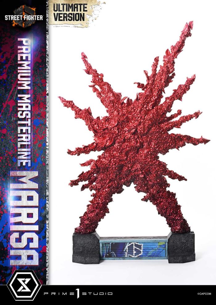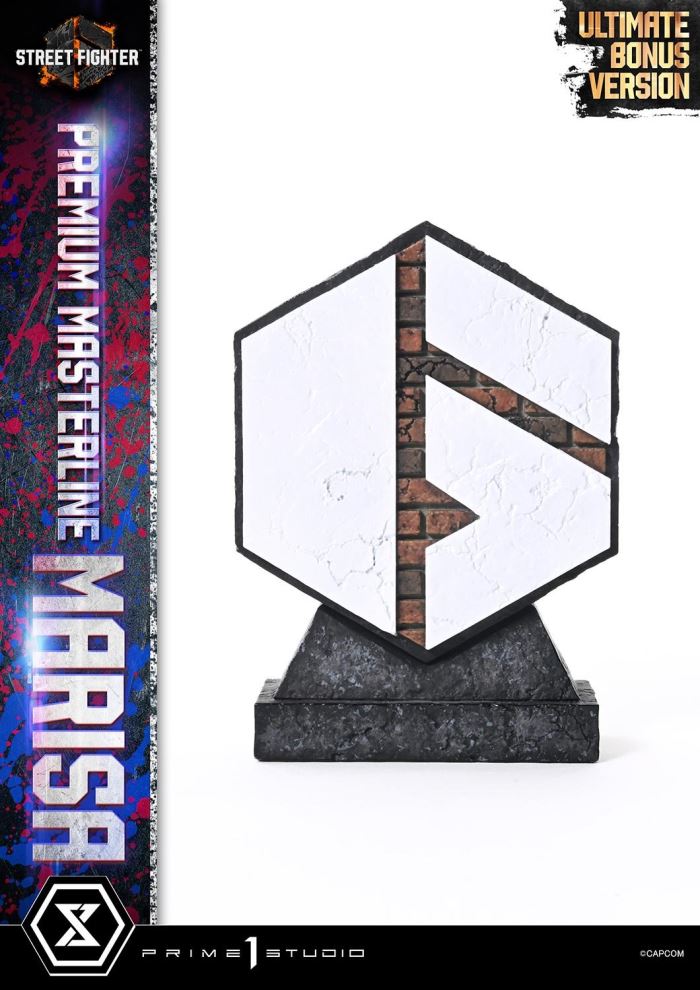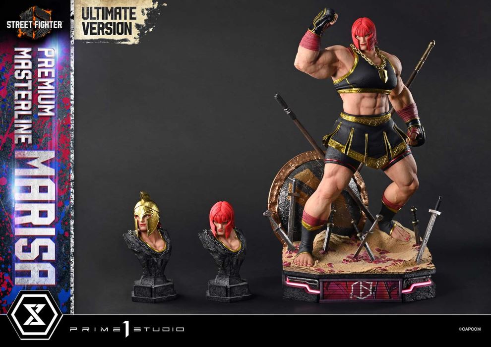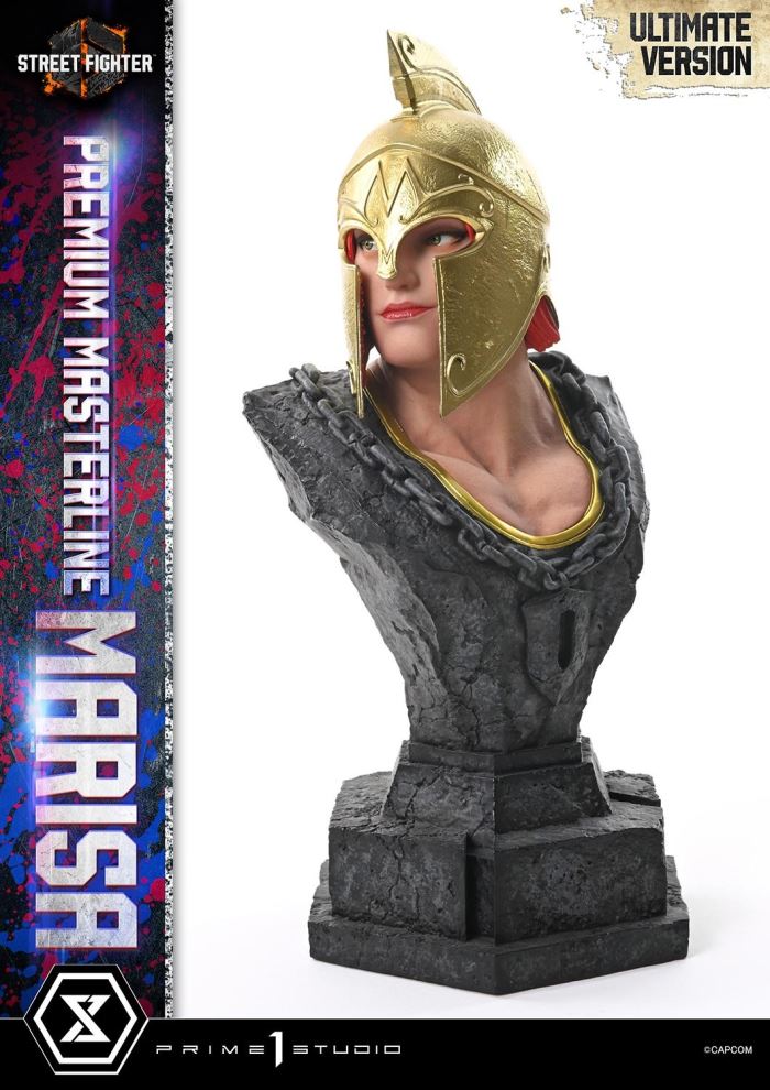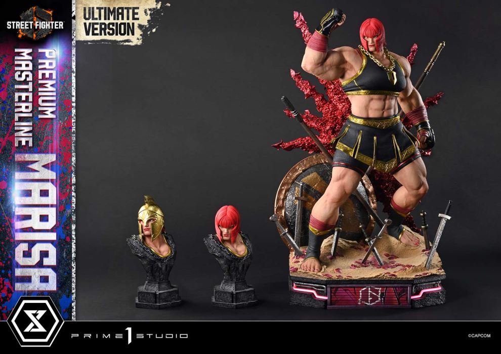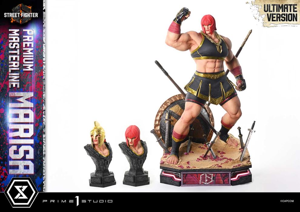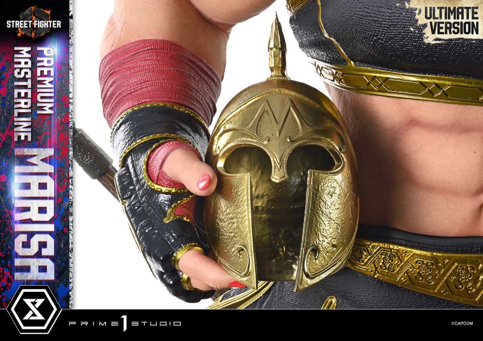 With Stunning Sculpting and Painting, the Fearless Pankratiast Strikes at the Heart!As additional characters continue to join the fray, Street Fighter 6 continues to build excitement. From this highly acclaimed title comes Marisa, brought to life in 3D by Prime 1 Studio’s Premium Masterline series!Making her debut in Street Fighter 6, Marisa, the Pankratiast, swiftly captured the hearts of players. Now, her bold and daring appeal is fully embodied in this stunning statue. The hair, reminiscent of an ancient Greek helmet, has been carefully crafted to capture the perfect color and flow. Her confident expression is accurately recreated, right down to the glossy lips and the beauty mark near her left eye. The powerful muscles covering her body tell the story of her incredible strength, while the bulging veins and flushed skin add a touch of realism. Her finely detailed costume and accessories reflect her jewelry designer's touch.The base, featuring a sword and shield plunged into the ground, and flower petals drifting down, is inspired by the Colosseum stage. Pink LEDs and graffiti on the shutter add a street-style flair, drawing you into the world of the game.The Ultimate Bonus Version comes with various head and arm parts, allowing you to recreate Marisa’s signature Goddess of the Hunt move, where she kisses her fist. You can also use the effect wall and head stands to create your own unique display combo.As a bonus for this version, a character graffiti logo stand is also included, bringing the hip-hop vibe of the game to your display.With the combination of artistry in painting, sculpting, and features, Prime 1 Studio’s Critical Arts will strike right at your heart with their passionate love for Marisa!Specifications:Street Fighter 6 Themed Base (with LED Illumination)Three (3) Swappable Heads (Serious, Kiss, Helmet)Four (4) Right Arms (Flexed, Holding Helmet, Kissing Fist, Relaxed Arm)Two (2) Head StandsOne (1) Effect WallOne (1) Marisa Graffiti Logo Stand [BONUS PART] LED Power Supply Method: TBA* Please prepare batteries, USB cables, or other necessary items depending on the final power supply method.Notice:Prototype samples shown.Product details could be subject to change without further notice.Please note the final product specifications may differ because each product is Handmade.Since the product is still in the development stage, the Size (up to 10%) & Weight (up to 10kg) may be changed during the production stage.©CAPCOMDETAILSBrandsPRIME 1 STATUECollectionPremium MasterlineSeriesStreet FighterScale1/4 ScaleProduct CodePMSF6-02UTSProduct Size Approx.H:70cm W:45cm D:34cmH:70cm W:45cm D:34cm(Helmet Head)H:70cm W:45cm D:13cm(Effect Wall)Carton(Est):2 boxProduct Weight Approx.30.2 kgMaterialsPolystone and other materialsJAN4582647120298