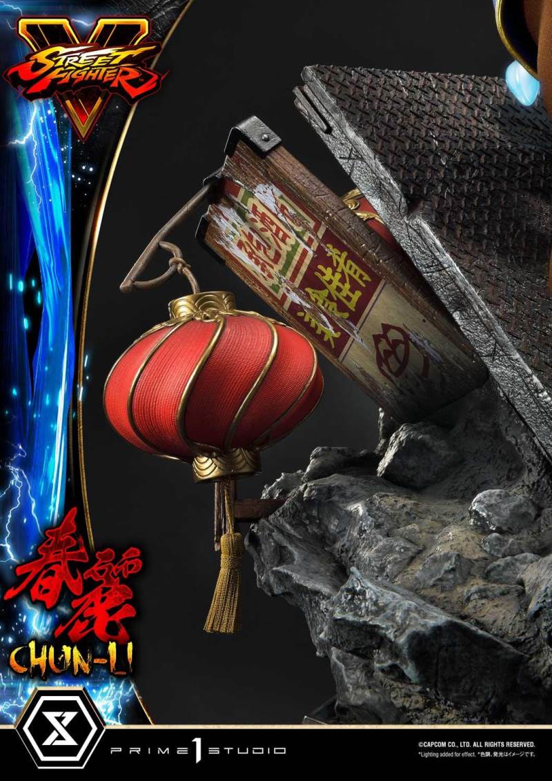 Chun-Li ซึ่งรายล้อมไปด้วยพลังแห่ง Critical Art ของเธอ พร้อมที่จะสร้างความเสียหายบางส่วนบนฐานที่มีธีมของ China Stage พร้อมด้วยป้ายไฟนีออนที่พังยับเยิน โคมไฟจีน และเศษหินที่เหมือนจริง! คุณสามารถแสดงการต่อสู้ของเธอกับ PMSFV-01 Akuma ของ Prime 1 Studio หรือ PMSFV-02 Ryu!
