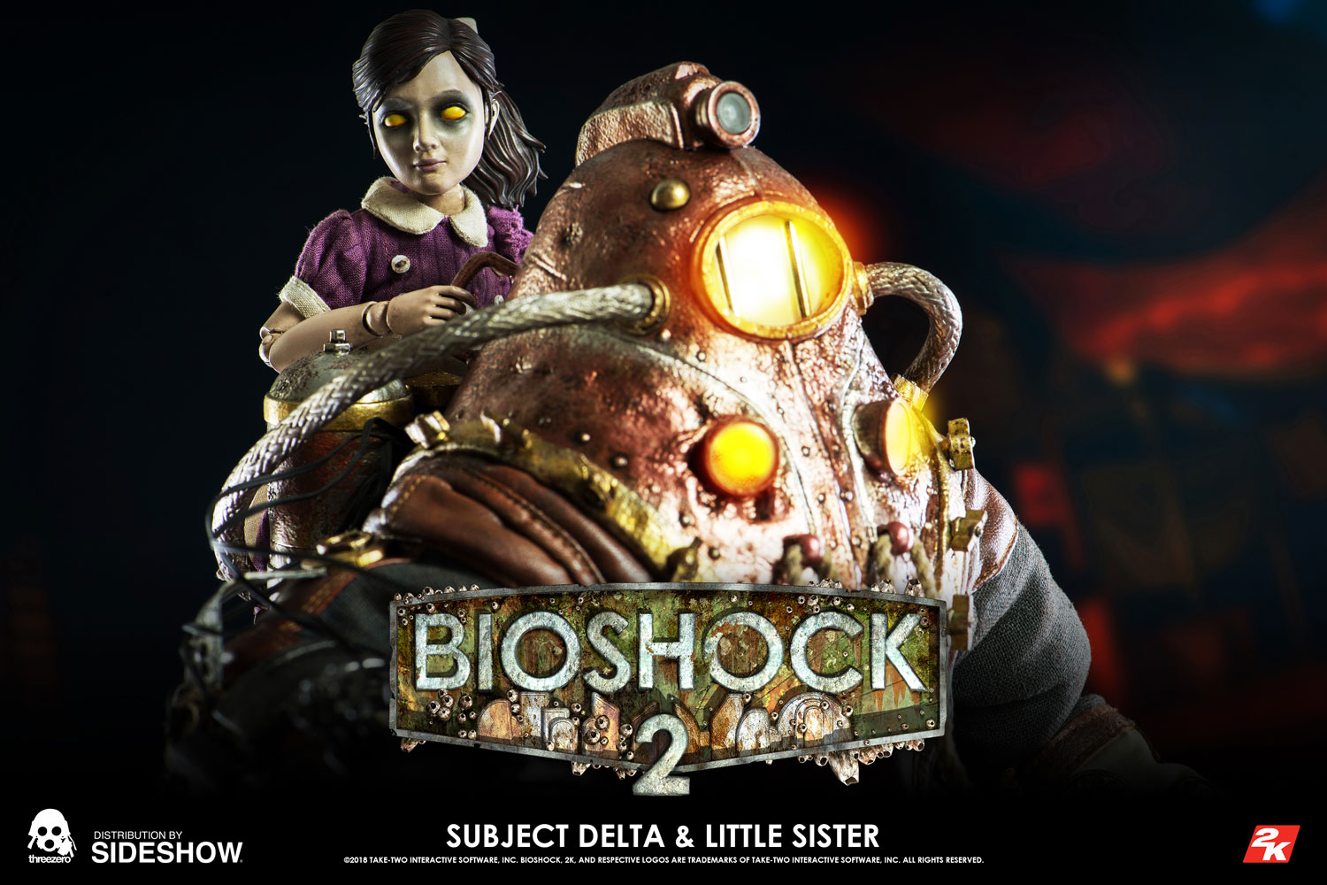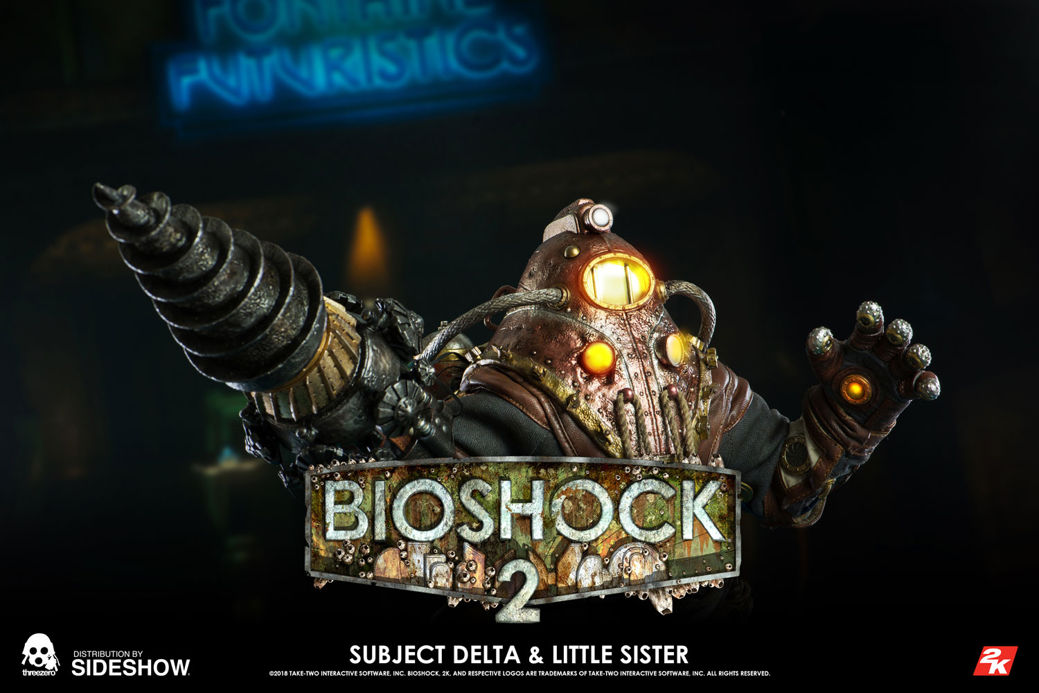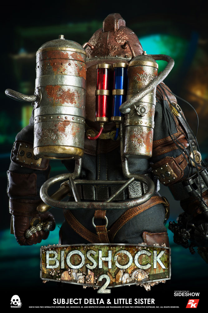 ABOUT THIS SIXTH SCALE FIGURESideshow and Threezero are excited to announce the sixth scale Subject Delta and Little Sister from BIOSHOCK 2. The Subject Delta collectible figure is fully poseable with over 35 points of articulation and features highly detailed incredible paint application to highlight all the weathering effects based on its appearance in the game. The right drill is detachable and there is a light-up feature for the head lights. The Little Sister features tailored fabric clothing, a detailed paint application, and weathering. Bioshock fans, don't miss your chance to add these highly detailed figures to your collection!LicenseBIOSHOCKTypeSixth Scale FigureManufacturerThreezeroWHAT'S IN THE BOX?The Subject Delta Sixth Scale Figure features:Collectible stands approximately 33cm / 13 inches tallFully poseable figure features over 35 points of articulationHighly detailed with incredible paint application to highlight all the details with weathering effect based on the appearance in the video gameArms and legs covered with fabric materialDetachable right DrillExchangeable hands: - One (1) pair of fists- One (1) pair of relaxed hands- One (1) left relaxed hand (with glowing light function)Light-up feature for 4 head lights(3 x AG13 Button Cell Batteries needed. Batteries not included)The Little Sister Sixth Scale Figure features:Fully-articulated 15cm / 6 inch tall Little Sister figureFigure comes with tailored fabric clothingDetailed paint application and weathering on the figureADAM Harvesting ToolExchangeable hands: - One (1) pair of relaxed hands - One (1) pair of gripping handsADDITIONAL DETAILS & DIMENSIONSExpected to ShipDec 2018 - Feb 2019Item shown is a prototype. When shipped, the final production piece may differ in appearance.Product Size13 H (330.2mm)Little Sister:6 H (152.4mm)*Dimensional WeightTBDInt'l Dim. WeightTBD* Size and weight are approximate values.SKU903370UPC4897056201323