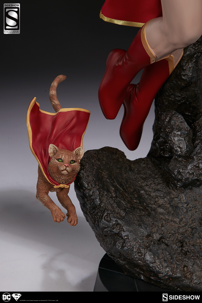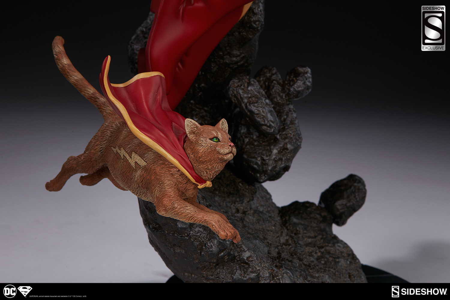 Look, up in the sky! Sideshow Collectibles is proud to present the Supergirl Premium Format™ Figure.Born Kara Zor-El on the doomed planet Krypton, Superman’s long-lost cousin Supergirl shares his iconic ‘S’ emblem and all of his phenomenal superpowers. Still searching to find her identity on our home planet, the Girl of Steel takes flight in a 24 tall gravity defying composition high above Earth’s atmosphere, with her perfectly tailored cape billowing out behind her. Simply radiating with a dazzling smile, she’s equally ready to light up the room or humanity’s most dangerous enemies, with her faithful feline companion Streaky the Supercat hot on her heels. A must-have for DC Comics or Superman fans, Sideshow’s Supergirl Premium Format™ Figure will take your collection light years above and beyond!Product SizeHeight: 24 (61 cm)Width: 9 (23 cm)Depth: 10 (25 cm)Weight: 12.00 lbs (5.4 kg) * Box SizeHeight: 12.00 (30 cm)Width: 16.00 (41 cm)Depth: 24.00 (61 cm) * Shipping Weight15.00 lbs (6.8 kg) *