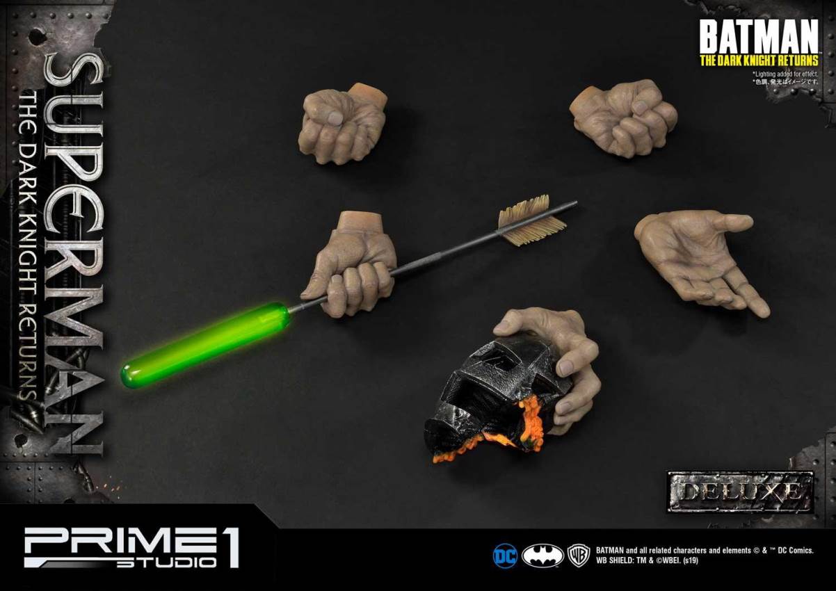 DescriptionsThe rest of us learned to cope. The rest of us recognized the danger--of the endless envy of those not like us. The normal people. The weak. Diana went back to her people. Hal went to the stars. And I have walked the razor's edge for so long... But you, Bruce--you, with your wild obsession. You never learned to let it all go.”Prime 1 Studio is excited to present the Batman: The Dark Knight Returns Comics Superman Statue!Batman: The Dark Knight Returns is a Batman comic book miniseries written and drawn by Frank Miller and published by DC Comics from February to June 1986.The Superman Statue has a sculpted blue costume with textured elements and red and yellow accents, including the beautifully crafted iconic red cape. Made with a great attention to details Superman’s facial expressions tells the history of war and hardship that he needs to confront. It also comes with a Kryptonite Arrow which was fired by Oliver Queen/Green Arrow in the story. The base is inspired by the image of the Bat-Tank that appeared in the story as well.Don’t miss out to add this stunning Superman Statue to your DC collections!Specifications:Statue Size approximately 35 inches tall [H:87.8cm W:57.6cm D:58.9cm]One (1) designed baseThree (3) Interchangeable Left Hands Set (Open Palm, Clenched Fist, Holding Batman’s Mechsuit Mask)Two (2) Interchangeable Right Hands Set (Clenched Fist, Clenched Fist Holding Kryptonite Arrow)Four (4) Portraits (Normal, Clenched Jaw, Heat Vision, Grin)Notice:Prototype samples shown.Product details could be subjected to change without further notice.BATMAN and all related characters and elements © & ™ DC Comics. (s19)