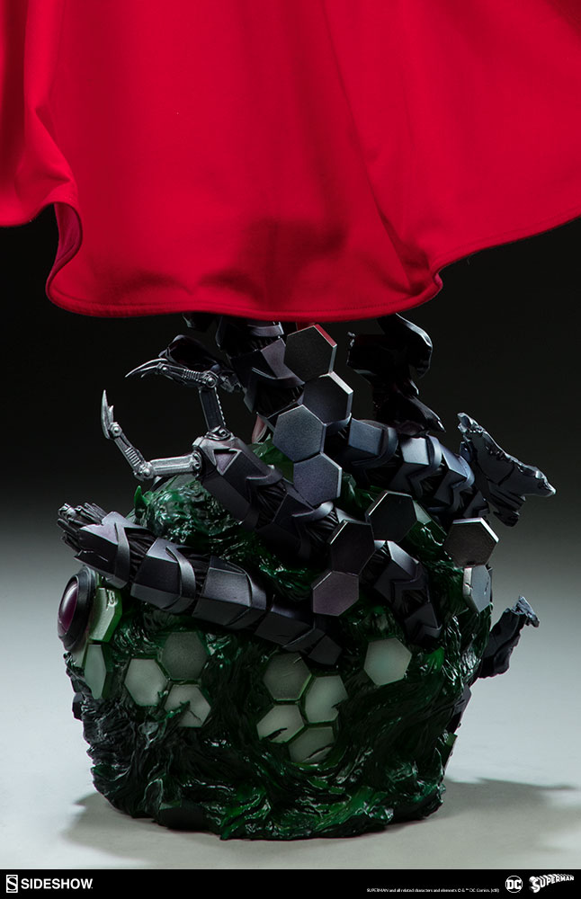 ABOUT THIS PREMIUM FORMAT™ FIGURE“Welcome to Earth, Brainiac.” Look, up in the sky! Sideshow is proud to present the Superman Premium Format Figure. Measuring 26” tall, Superman touches down from flight onto a base themed after Brainiac’s skull ship. Mechanical tendrils reach up towards the Man of Steel as he prepares to bring justice to the twelfth-level intellect. The polystone Superman Premium Format Figure has a sculpted blue costume with textured elements and red and yellow accents, including his belt and the symbol of the House of El emblazoned across his chest. Superman has a muscular physique and a detailed portrait inspired by his comic book appearance, complete with his signature black curl of hair. The Superman Premium Format Figure also includes a poseable red fabric cape marked with Superman’s symbol in yellow. The Exclusive edition of the Superman Premium Format Figure includes a swap-out right hand holding the head of the defeated Brainiac. Superman’s powerful punch is imprinted on the side of his foe’s face as vibrant green blood is splattered across his severed mechanical neck. Bring home the Last Son of Krypton and add the Superman Premium Format Figure to your collection today!LicenseDC ComicsTypePremium Format™ FigureMaterialsPolystone, FabricManufacturerSideshow CollectiblesArtistsIan MacDonald (Design)Alex Pascenko (Design)Zac Roane (Design)Alejandro Pereira Ezcurra (Design & Sculpt)Steve Lord (Sculpt)Factor 31 (Rapid Prototyping)Adam Smith (Mold & Cast)Chadwick Andersen (Mold & Cast)Bernardo Esquivel (Paint)Esther Skandunas (Costume Fabrication) Tim Hanson (Costume Fabrication)The Sideshow Design and Development TeamADDITIONAL DETAILS & DIMENSIONSExpected to ShipDec 2018 - Feb 2019Item shown is a prototype. When shipped, the final production piece may differ in appearance.Product Size26 H (660.4mm) x 14 W (355.6mm) x 15 L (381mm)*Product Weight12.00 lbs (5.44 kg)*Dimensional WeightTBDInt'l Dim. WeightTBD* Size and weight are approximate values.SKU3005371UPC747720234680SUPERMAN and all related characters and elements © & ™ DC Comics. (s18)