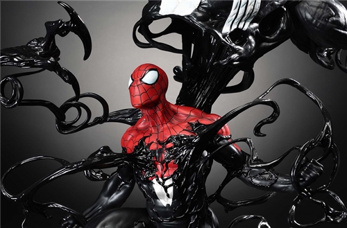 ● Highly detailed sculpt featuring Spider-Man standing atop a bell base with Venom Symbiote