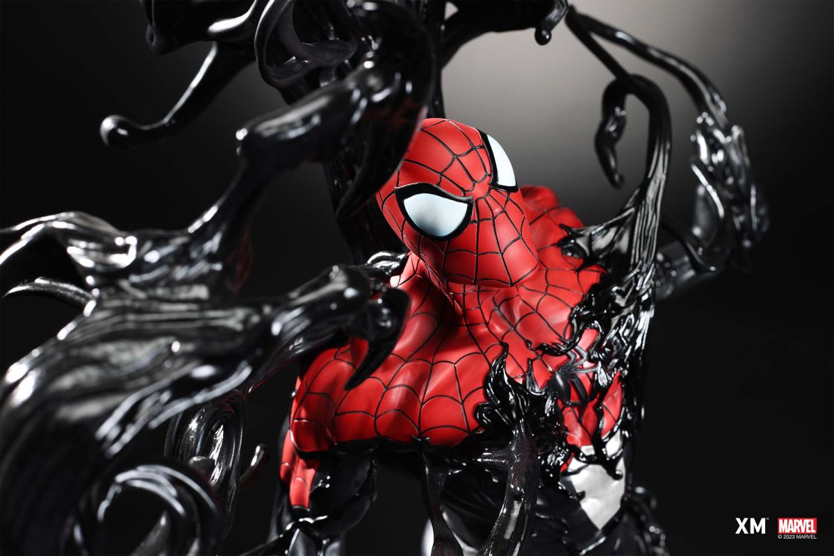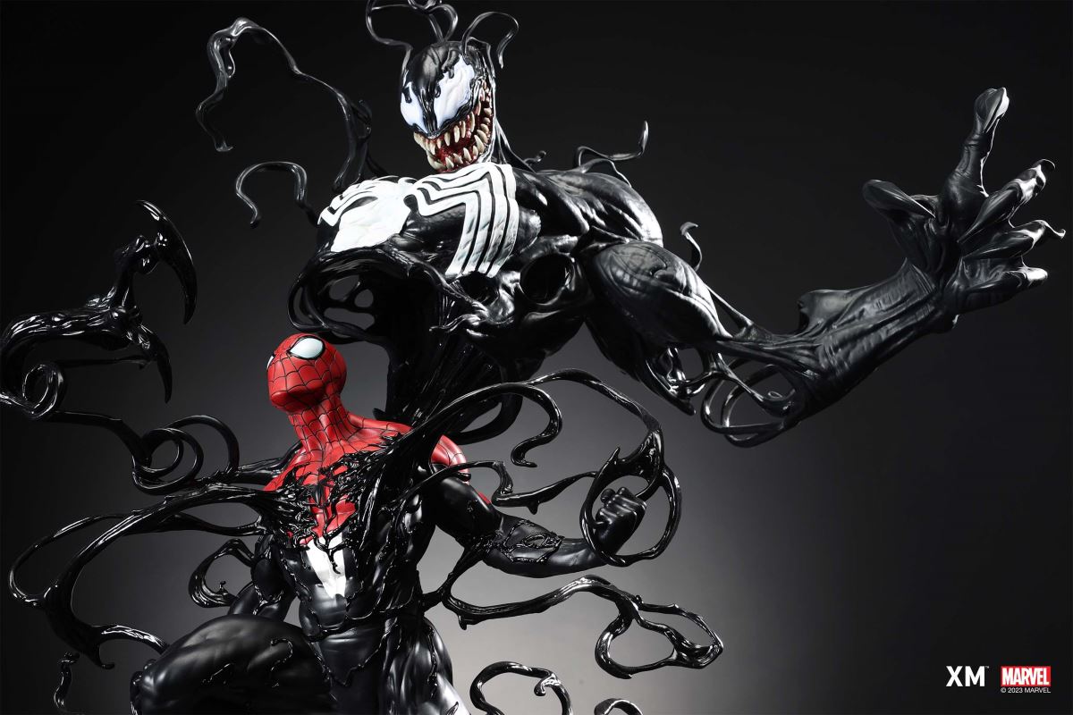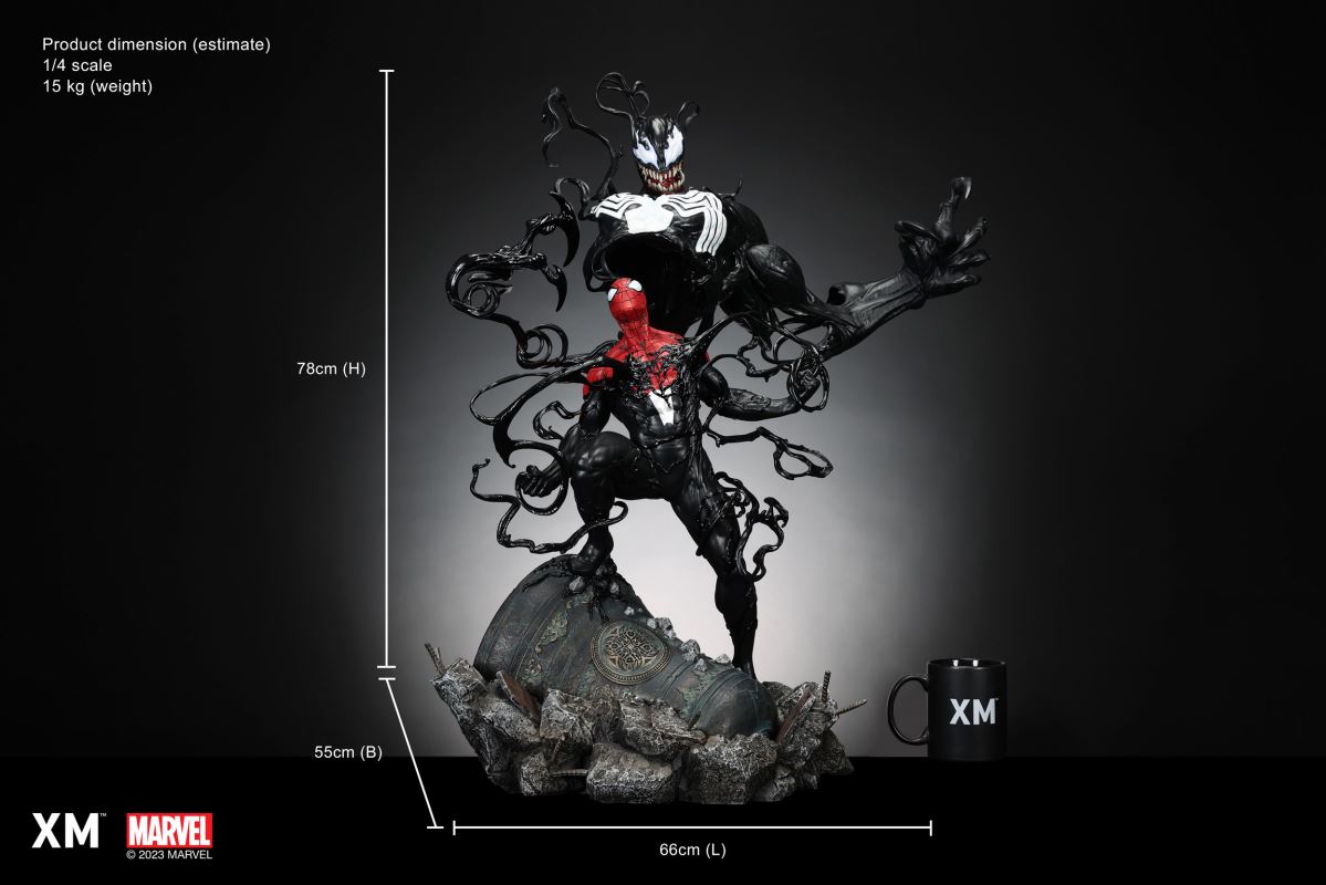XM Studios is excited to present our next 1/4 scale MARVEL Premium Collectibles series statue, Symbiote (Transformation)! Each painstakingly handcrafted statue is individually hand-painted with XM’s famous quality finish, and comes in a bold, dynamic, and story-laden style. Spider-Man is seen half bonded with Venom as the symbiote extends from him, breaking into a maniacal grin. Spider-Man stands one foot atop a weathered fallen bell as he gripped the tendrils, while Venom’s tendrils slither and manifest into a claw on the left and short blades on the right. The fluidity and amorphous state of the symbiote are artfully sculpted and exhibited in this piece. This statue collectible captures the struggle between Spider-Man and Venom symbiote. Who will emerge victorious? The Symbiote (Transformation) Premium Collectibles statue features:Highly detailed sculpt featuring Spider-Man standing atop a bell base with Venom SymbioteCrafted in PolystoneEach painstakingly handcrafted statue is individually hand-painted with the highest possible quality finishES: MTO Max 799 Artists:InHyuk Lee (2D)Tiago Rios (3D)XM Studios Design and Development Team Manufactured by:XM Studios Product and Box Dimensions:Product Size: 66 x 55 x 78cmEst. Box Size: 80 x 60 x 32cmEst. Product Weight: 15kgEst. Shipping Weight: 17kgNote: Prototype shown and pending final approval, final product may differ. Batteries will not be included for products with light up features due to customs.