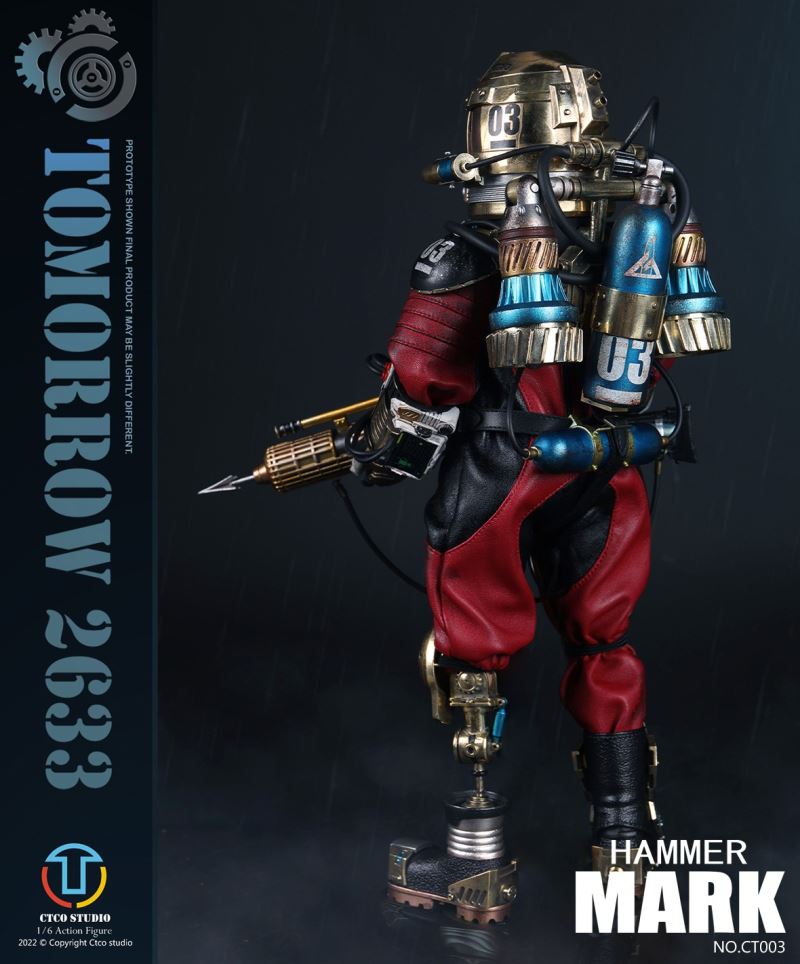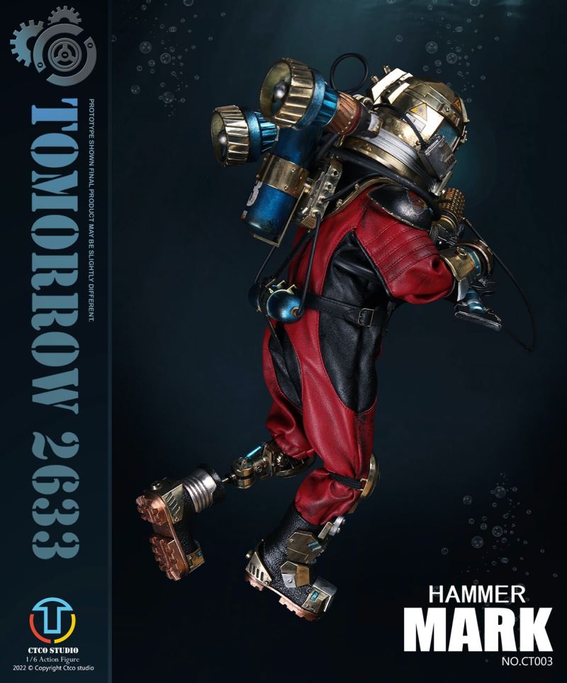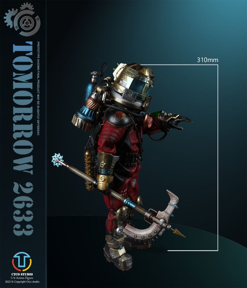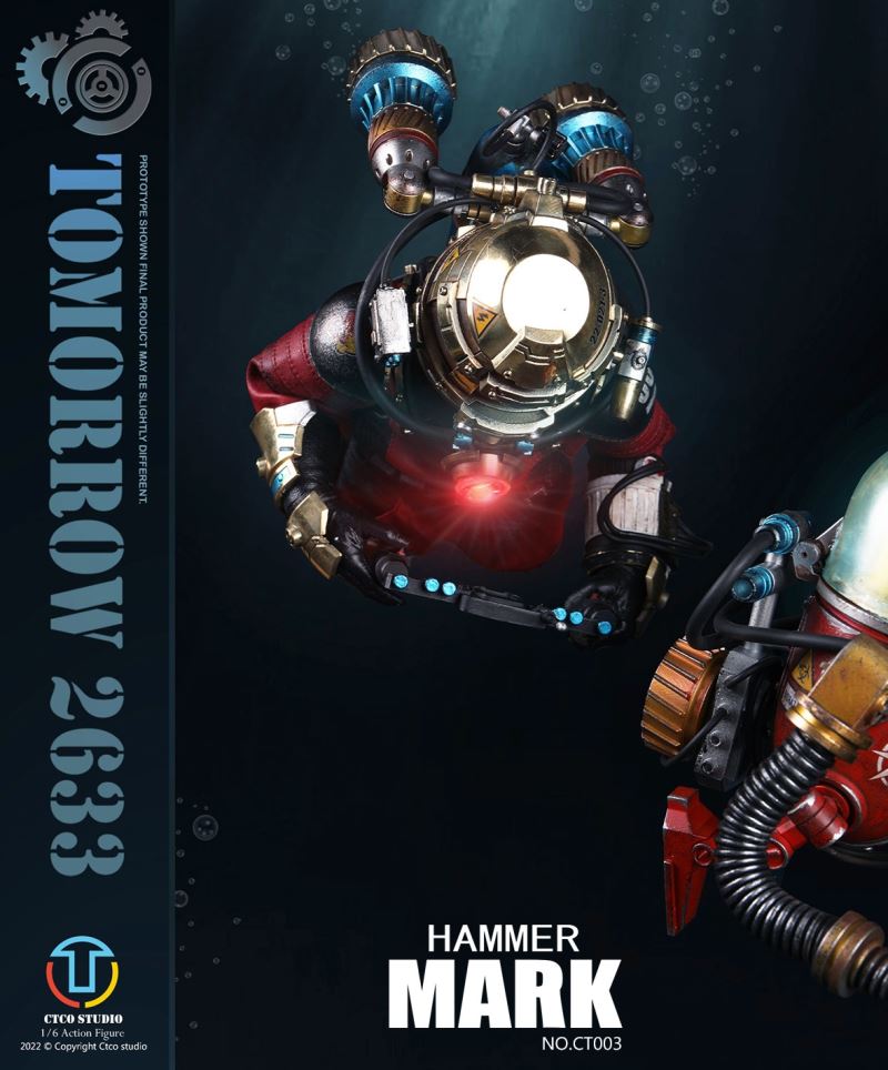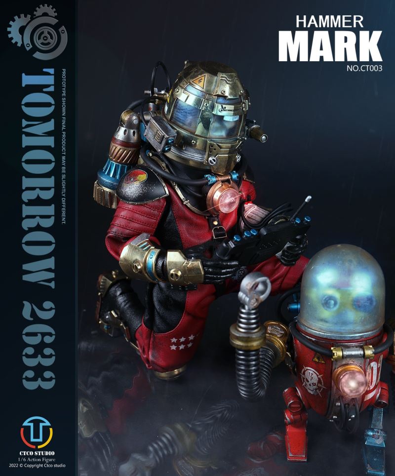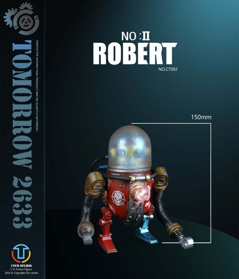 CTCO STUDIO 1/6 CT002 TOMORROW 2633 - NO.II ROBERT (METAL COMMEMORATIVE EDITION)* 70% of accessory parts are made of diecast alloy, while the other 30% are made of plasticChest lamp, head lamp can be litThe 1/6th scale No.2 Robert collectible figure specially features:- One (1) brain of Robert- One (1) gold robot head- One (1) transparent diving helmet- One (1) red robot body- One (1) propeller- One (1) pair of coil armers- Two (2) robot legs (each is red and blue)- One (1) remote control