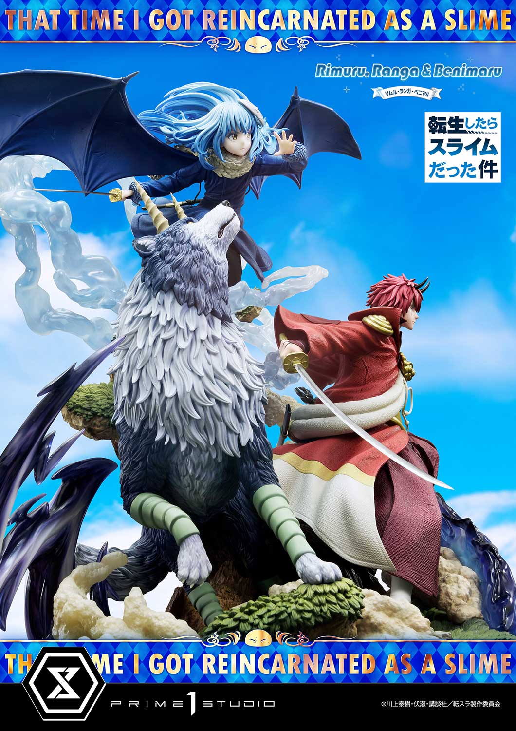 I want to make this world where everyone can live in peace, too” – Rimuru TempestPrime 1 Studio is proud to present the next entry to our Concept Masterline Series, introducing the 1:6 scale CMTSR-01DXS Rimumu, Ranga and Benimaru Deluxe Bonus Version from the popular series “That Time I Got Reincarnated As A Slime”!Also known as “Tensei Shitara Suraimu Datta Ken” in Japan, the series follows the story of one Satoru Mikami, a 37-year-old salaryman who is stabbed and reincarnated into a fantasy world as a simple, blue slime. He is renamed as Rimuru Tempest and embarks on a journey to create a utopia in this world, forging new alliances and friendships along the way.Prime 1 Studio is more than thrilled to be bringing you yet another riveting diorama of Rimuru alongside two of his best companions, Ranga the direwolf and Benimaru the Hobgoblin. Our artisans have once again pushed themselves above and beyond to portray the trio’s synergy and comradery in this dynamic and action-packed statue. Rimuru graciously slashes through weightless slime as he spreads out his draconic wings. Ranga, leader of the Star Wolf Clan, is ready to unleash powerful storms at any moment. Finally, the powerful Benimaru, in his Kijin form, brandishes his katana that leaves bright, scorching blue and black flames in its wake. Our artisans have once again outdone themselves through masterful texturizing and painting of this stunning piece of art; from Ranga’s thick coat of fur to Rimuru’s gracious hair strands and Benimaru’s blood-red kimono, everything is carefully finished with the utmost attention to detail!The Deluxe Version includes a total of four additional head parts; this includes one Rimuru, two for Benimaru, and one for Ranga! With these, you are sure to find the perfect combination to display for the perfect storytelling!And when you order from our official store or any authorized distributor, you will receive a third swappable head part for Rimuru, displaying a confident smile!Whether you are a fan of the series or Japanese manga and anime, this beautiful diorama is sure to make a powerful statement in any collection, a definitive breath-taker! Pre-order the CMTSR-01DXS Rimuru, Ranga and Benimaru Deluxe Bonus Version and bring home three of the Twelve Guardian Lords!Specifications:Statue Size approximately 21 inches tall [H:59cm W:52cm D:38cm]That Time I Got Reincarnated As A Slime-themed baseTwo (2) Swappable head parts for Rimuru (Normal and Fighting)Two (2) Swappable head parts for Ranga (Normal and Fighting)Three (3) Swappable head parts for Benimaru (Normal, Smile and Fighting)One (1) Swappable bonus head part for Rimuru (Smile) [BONUS PART]Notice:Prototype samples shown.Product details could be subject to change without further notice.Please note the final product specifications may differ because each product is Handmade.Since the product is still in the development stage, the Size (up to 10%) & Weight (up to 10kg) may be changed during the production stage.©川上泰樹・伏瀬・講談社/転スラ製作委員会DETAILSBrandsPRIME 1 STATUECollectionConcept MasterlineSeriesThat Time I Got Reincarnated as a SlimeScale1/6 ScaleProduct CodeCMTSR-01DXSProduct Size Approx.H:59cm W:52cm D:38cmCarton(Est.): 2 boxProduct Weight Approx.About 14.2 kgMaterialsPolystone and other materialsJAN4580708048819