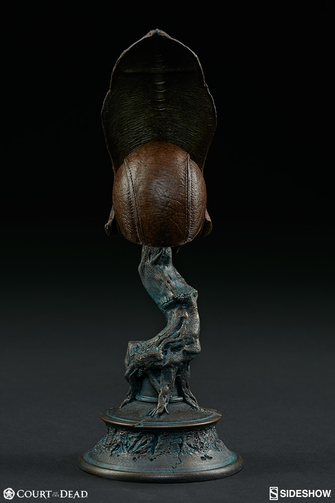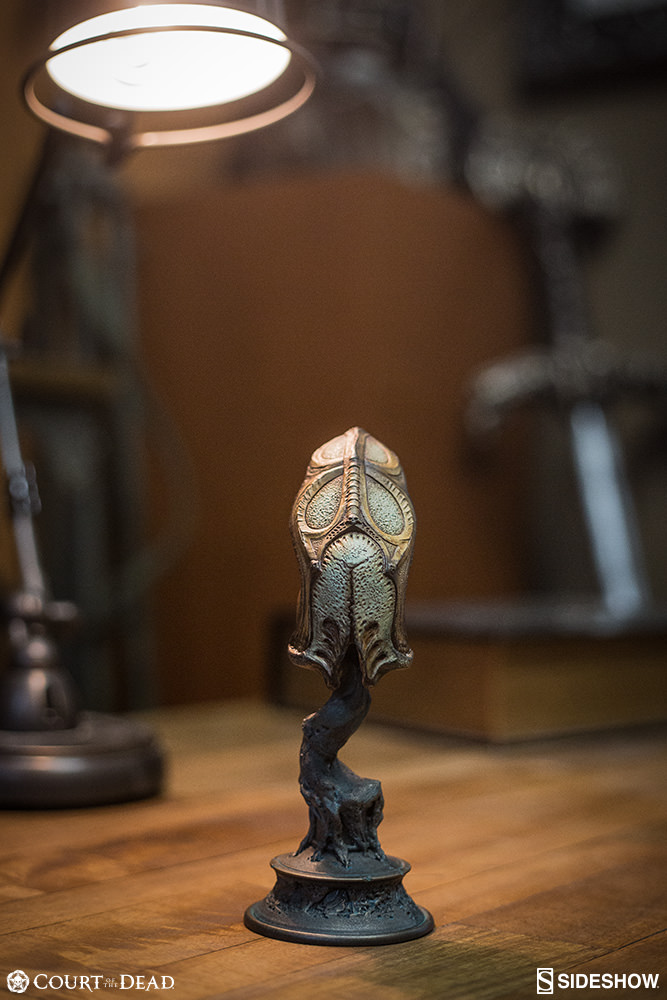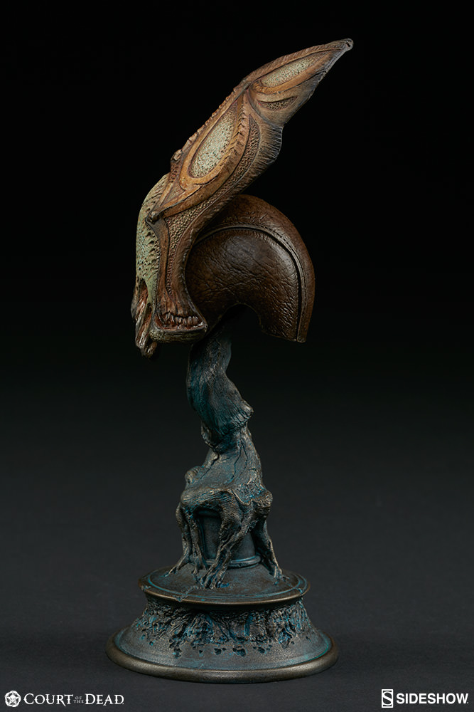 ABOUT THIS SCALED REPLICASideshow is proud to introduce a new line of 1:4-scale replica masks and helmets from our original Court of the Dead collection. Death’s “Ossein Unity” mask is the first of three products in this on-going collection. The line between order and dominion is thinner than a burial shroud – and just as transparent.” - Death Death is the grandfather of all the factions, having created the beings that founded them. When the Alltaker created Xiall and Tsingvath - the creators of the Bone Faction - he sought to explore the harmony achieved through logic, reason, and order. Death knows the way of Bone is a delicate balance: Heavy is the crown upon the head in such a system, to walk the knife’s edge between accord and empire. LicenseCourt of the DeadTypeScaled ReplicaManufacturerSideshow CollectiblesArtistsTom Gilliland (Design)Mat Molen (Design)Nathan Mansfield (Sculpt)Alfred Paredes (Sculpt)Anthony Mestas (Paint)The Sideshow Design and Development TeamWHAT'S IN THE BOX?The Aspects of Death Ossein Unity Mask Quarter Scale Replica features:The beautifully fluted and stately biomorphic tower of bone in this sculpted mask pays tribute to one the three foundational philosophies of the UnderworldDelicately painted in hues of warm bronze with cool green undertones to highlight the macabre, organic clefts and cleavages in this scale replicaUnique stand features spire of twisty blue etherea and a distressed leather helm to display Death’s maskADDITIONAL DETAILS & DIMENSIONSExpected to ShipSep 2017 - Nov 2017Item shown is a prototype. When shipped, the final production piece may differ in appearance.Product Size7.75 H (196.85mm) x 2.75 W (69.85mm) x 2.75 L (69.85mm)*Dimensional WeightTBDInt'l Dim. WeightTBD* Size and weight are approximate values.SKU500505UPC747720237230PRICE$50© 2017 Sideshow Inc.