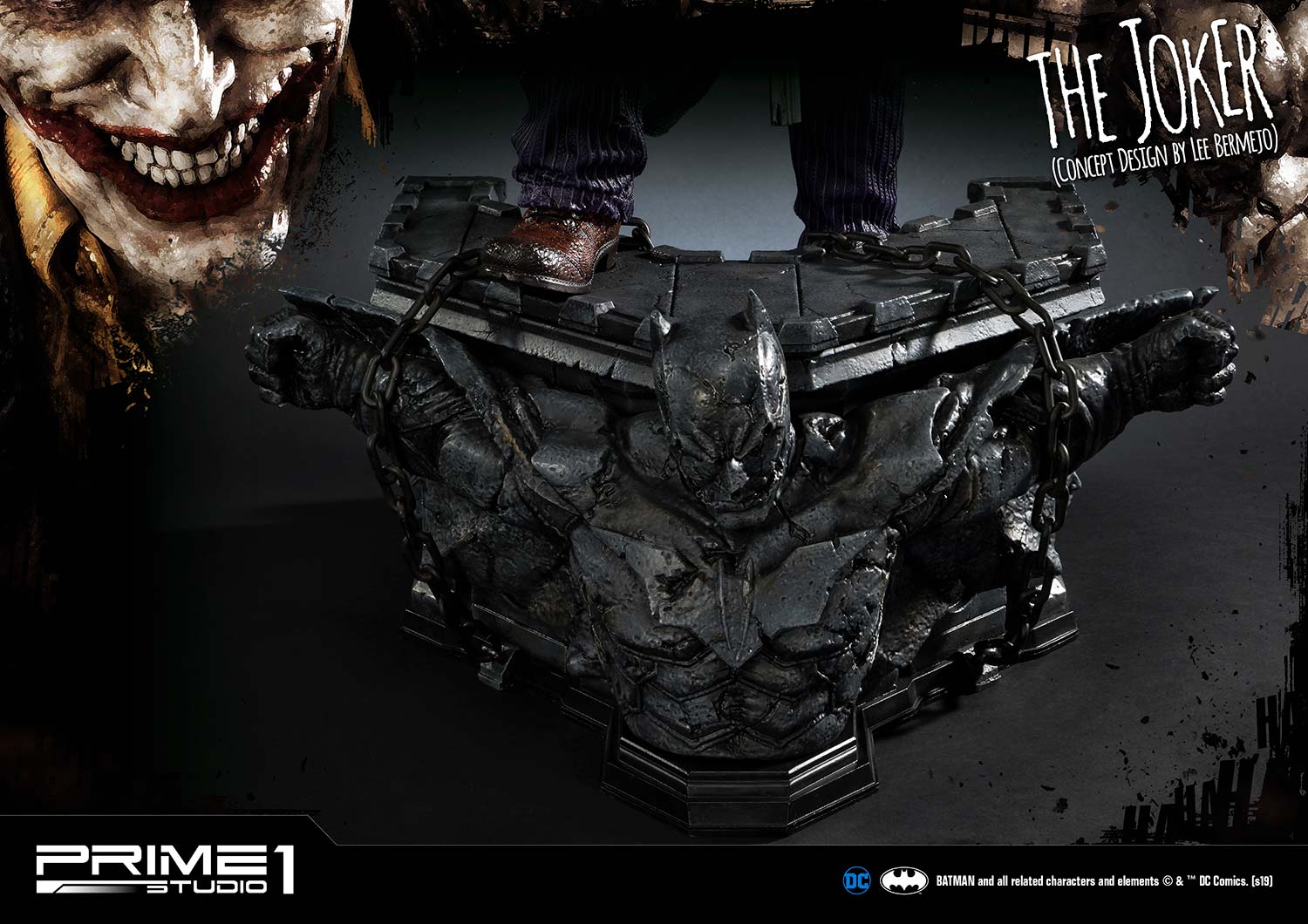 DescriptionsDon't ever apologize to no one for the way you look.Prime 1 Studio is excited to present the Joker Statue designed by no one else, but incredibly talented Lee Bermejo, an American comics artist best known for his collaborations with writer Brian Azzarello including the Joker graphic novel. Lee Bermejo’s Joker design is very dark with stunningly realistic features. Even the base is specially designed by Mr. Bermejo featuring Batman (from Batman: Noel graphic novel) chained to a stone which gives the whole statue even darker look. The Joker Statue includes in total of two alternate Portraits and one Head Stand. The Joker statue, Concept design by Lee Bermejo, stands approximately 28 inches tall and it is a must have for all Joker fans. This will be the best statue to add in your collection with your MMDC-04: Batman Noel and the upcoming MMDC-38: Batman Damned statue coming soon for pre-order! Specifications:Statue Size approximately 27.8 inches tall [H:70.6cm W:47.2cm D:44.2cm]Head Stand Size approximately 6.46 inches tall [H:16.4cm W:10cm D:15.6cm]One (1) designed theme baseTwo (2) alternate Portraits (Regular & Damaged Expression)One (1) Head StandBATMAN and all related characters and elements © & ™ DC Comics. (s19)