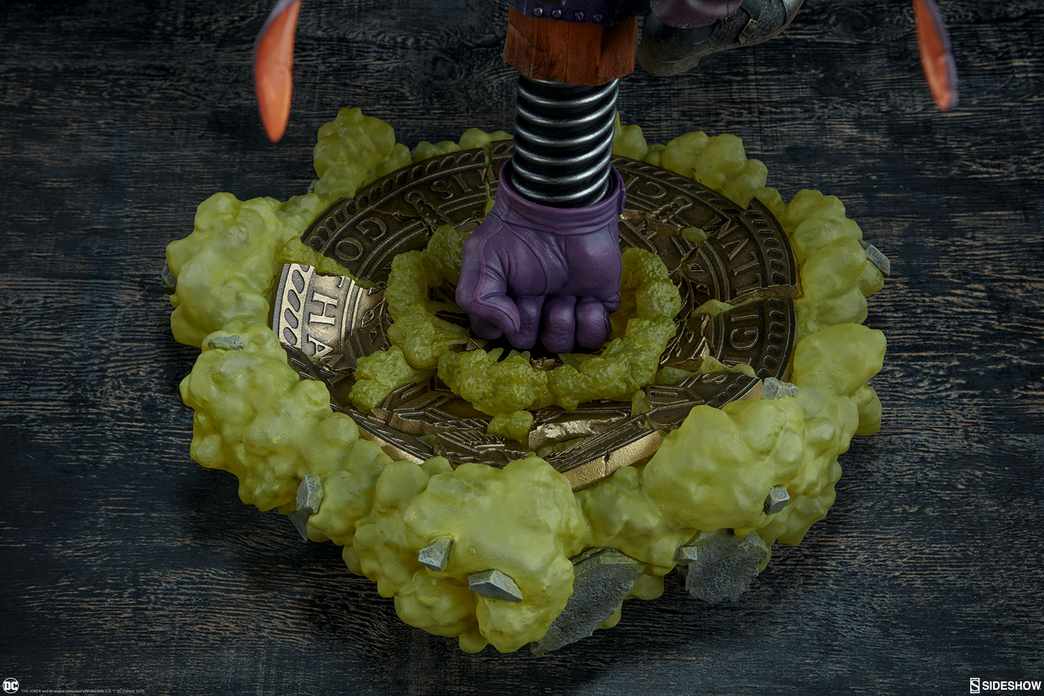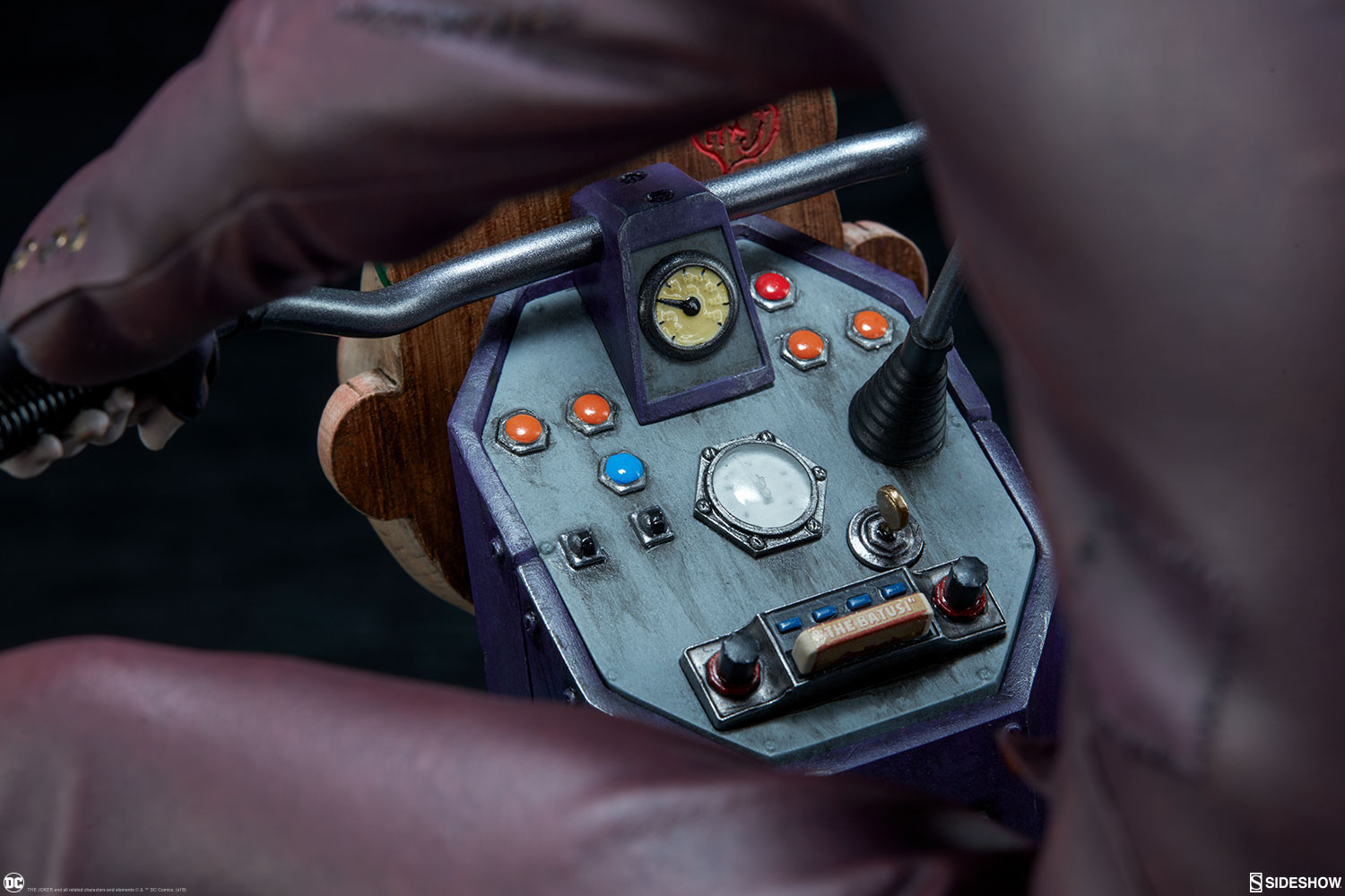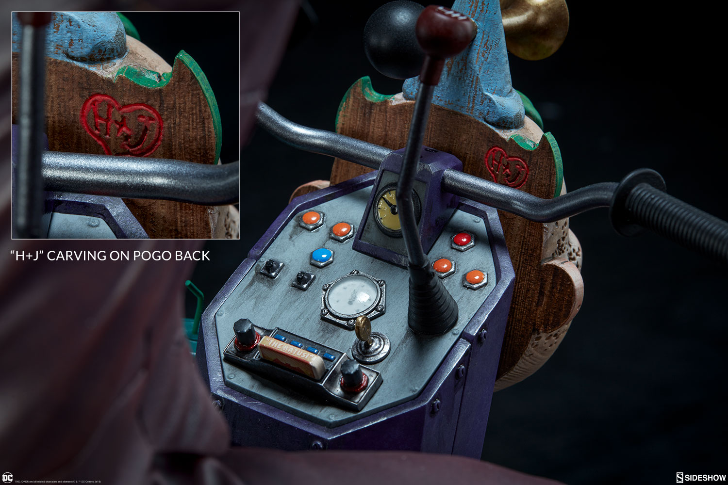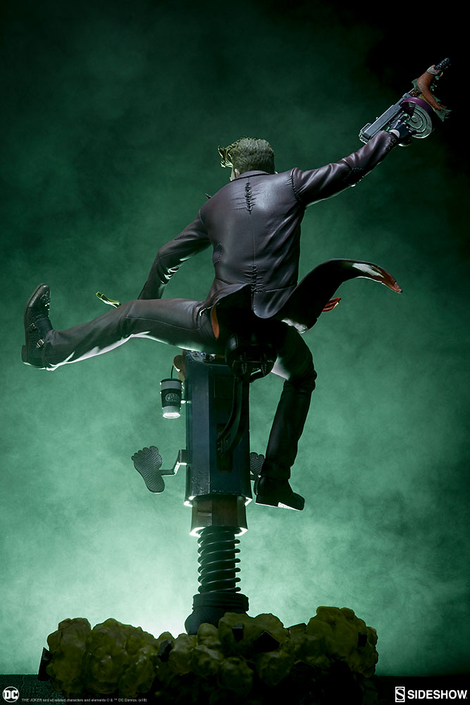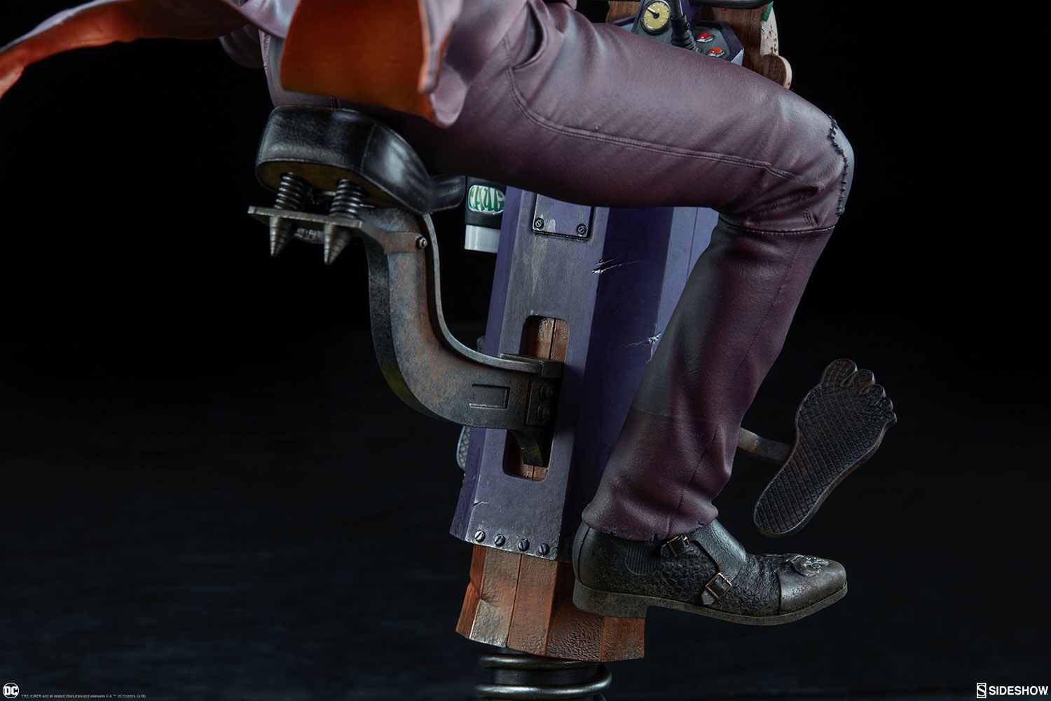 ABOUT THIS PREMIUM FORMAT™ FIGURE“All I’ve ever wanted is to have a good time…and to annoy Batman whenever possible, of course.” Sideshow is proud to present The Joker Premium Format™ Figure, making mayhem for Gotham wherever he goes. The key to humor is a good punch line- The Joker measures 25” tall atop a pogo-fist base inspired by his own suit sleeve, fitted with a dilapidated carnival game head. A giant purple glove is breaking the Gotham courthouse Seal of Justice, while his patented toxic laughing gas leaks from the wreckage. A Batusi 8-track hides on the control panel of The Joker's crazy contraption along with a carved heart with H+J as a symbol of their mad love. Bouncing into battle, the Clown Prince of Crime comes equipped with a Joker Fish tommy gun to put the fin-ishing touches on his elaborate scheme. The Joker has a maniacal, scarred portrait with his iconic face makeup and coiffed green hair, and a sculpted purple two-piece suit, green vest, and orange shirt. His suit is outfitted with intricate stitching details as well as a grinning Batgirl plush pinned to his lapel. Always playing the heel to Batman’s heroic antics, The Joker has a custom pair of shoes with ‘Ha!’ treads and a “Your Face Here” on the soles. Give Batman the ol’ one-two punch when you pair The Joker with his best girl, the Harley Quinn Premium Format™ Figure. Gotham will never know what hit them! The Exclusive edition of The Joker Premium Format™ Figure includes an alternate classic portrait of the Clown Prince of Crime, as well as a swap-out right hand holding a special cake for Batman. These accessories can be swapped out independently of one another, giving you additional display options. Joke’s on you! Start clowning around and add The Joker Premium Format™Figure to your DC collection today.LicenseDC ComicsTypePremium Format™ FigureMaterialsPolyresin, Plastic, MetalManufacturerSideshow CollectiblesArtistsIan MacDonald (Design)Alex Pascenko (Design)Zac Roane (Design)Matt Black (Sculpt)Alejandro Pereira (Sculpt)Martin Canale (Sculpt)Adam Smith (Mold & Cast)Kat Sapene (Paint)The Sideshow Design and Development TeamADDITIONAL DETAILS & DIMENSIONSExpected to ShipJan 2019 - Mar 2019Item shown is a prototype. When shipped, the final production piece may differ in appearance.Product Size25 H (635mm) x 17 W (431.8mm) x 12 L (304.8mm)*Product Weight14.00 lbs (6.35 kg)*Dimensional WeightTBDInt'l Dim. WeightTBD* Size and weight are approximate values.SKU3004731UPC747720232266THE JOKER and all related characters and elements © & ™ DC Comics. (s18)