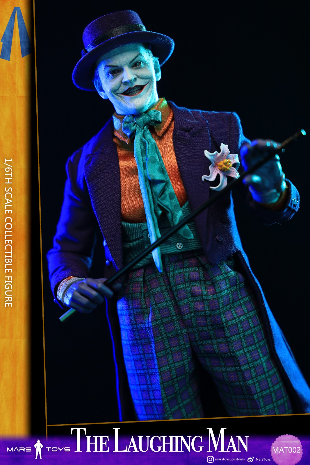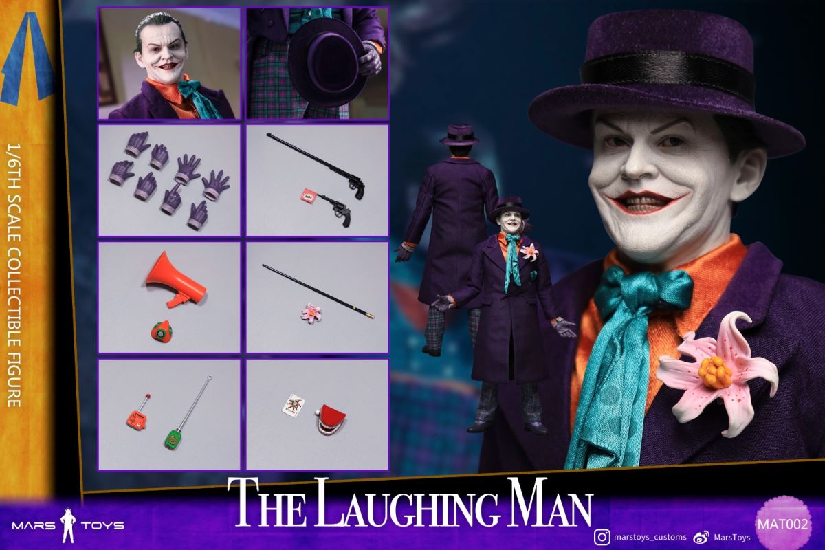 Detail:1. Head sculpt * 1pcs2. Body * 1pcs3. Hand type * 8pcs4. Purple hat * 1pcs5. Purple tuxedo * 1pcs6. Purple coat with poisonous orchid * 1pcs6. Turquoise scarf * 1pcs7. Orange shirt * 1pcs8. Turquoise vest * 1pcs9. Turquoise tie with dot pattern * 1pcs10. Purple and turquoise plaid pants with suspenders * 1pcs11. Purple shoes * 1 pair12. Short pistol * 1pcs13. Long pistol * 1pcs14. Remote control * 1pcs15. Magic wand * 1pcs16. Intercom * 1pcs17. Speaker * 1pcs18. Flutter tooth * 1pcs19. Masks * 1pcs20. Joker card * 1pcs