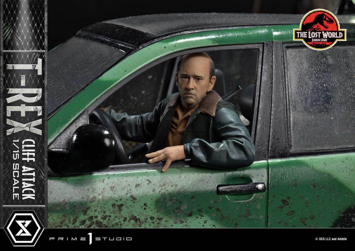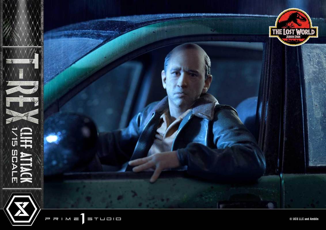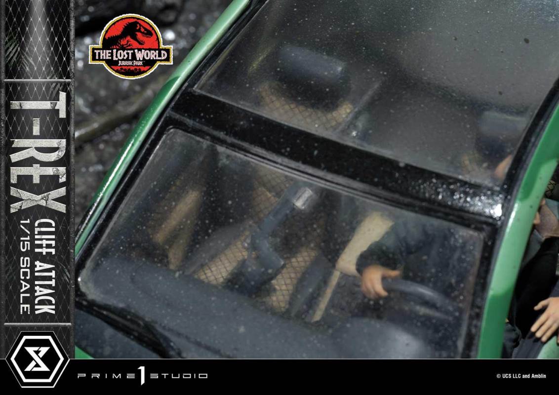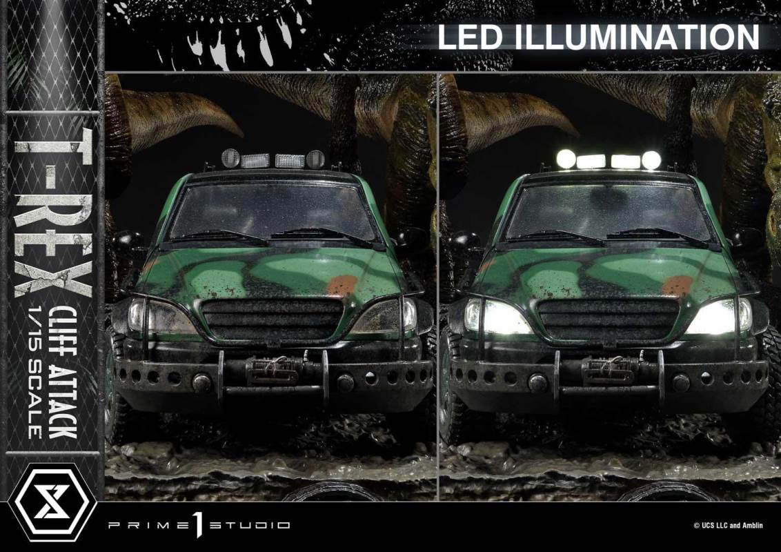 Descriptions“The T-Rex exists on this planet for the first time in tens of millions of years and the only way you can express yourself is to kill it?” – Nick Van OwenPrime 1 Studio is proud to present an amazing addition to our Legacy Museum Collection Jurassic Park Series of statues: the 1:15 Scale LMCJP-09S: T-REX CLIFF ATTACK BONUS VERSION from THE LOST WORLD: JURASSIC PARK!This breathtaking 21-inch-tall T-Rex Cliff Attack Bonus Version diorama statue portrays a pivotal moment in the film where Eddie Carr is trying to save Dr. Ian Malcolm and Dr. Sarah Harding, from plummeting to their deaths into the cold, dark seas of Isla Sorna! But fate has another plan for Eddie for the T-Rexes have arrived!Prime 1 Studio has chosen this tense, life-or-death situation as the moment to immortalize in T-Rex Attack! Prime 1 Studio’s sculptors have composed an elaborate diorama scene which finds two adult T-Rexes at the moment they realize that there’s a delicious snack to be had inside this curious, metal container. Prepare to be fully immersed in this pulse-pounding scene, as you take in all the textures, colors, and environmental details of this breathtaking diorama.Each T-Rex was sculpted by a master studio sculptor, and imbued with powerful theropod life, to illicit the exact emotions a 15,000 pound, 40 foot dinosaur would illicit. In this diorama, they have been stalking, and have walked up to a miniscule contraption, attracted by the noise and movements inside.The T-Rex couple and the Jurassic Park SUV with LED-Powered Lights inhabit a lush, wet portion of Isla Sorna, situated dangerously close to a cliff. Observe the quality of the trees, the plants, mud, and water puddles. The way the glossy finish of the rain makes the scales and muscles of the T-Rexes look. The careful, exacting painting style of the Studio is clearly evident in how well this moment is rendered. This fantastic diorama is finished off with a wonderful platform depicting fossilized dinosaur skeletons, encased within the Earth...where they were less dangerous!And when you pre-order this Bonus Version from our official online store or any authorized distributor will you receive a cool, extra Bonus Part: an adorable T-Rex Baby Dinosaur on her own base! She’s the very thing her parents were looking for!Add to your family of Jurassic Park statues now by Pre-ordering this fantastic LMCJP-09S: T-Rex Cliff Attack Bonus Version from The Lost World: Jurassic Park!Specifications:LED illumination on Jurassic Park Sport Utility VehicleIsla Sorna Cliffside-inspired Environmental BaseOne (1) Freestanding T-Rex baby on her own Base [BONUS PART] Notice:Prototype samples shown.Product details could be subject to change without further notice.Please note the final product specifications may differ because each product is Handmade.Since the product is still in the development stage, the Size (up to 10%) & Weight (up to 10kg) may be changed during the production stage.*Region Exclusive© UCS LLC and Amblin