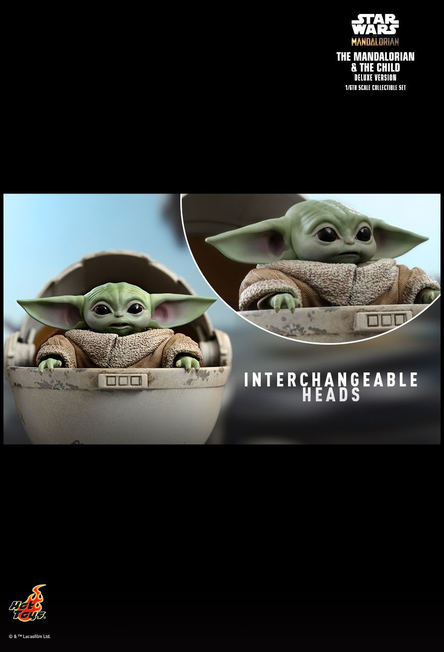 The Deluxe Version เพิ่ม The Child ที่นั่งอยู่ในเรือท้องแบน, beskar steel และ Camtono container พร้อมฟังก์ชั่น LED light-up, เอฟเฟกต์การยิงนกผิวปากที่ติดอยู่กับฝ่ามือซ้ายของ Mandalorian และโฮโลแกรมขนาดเล็ก