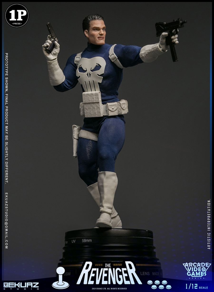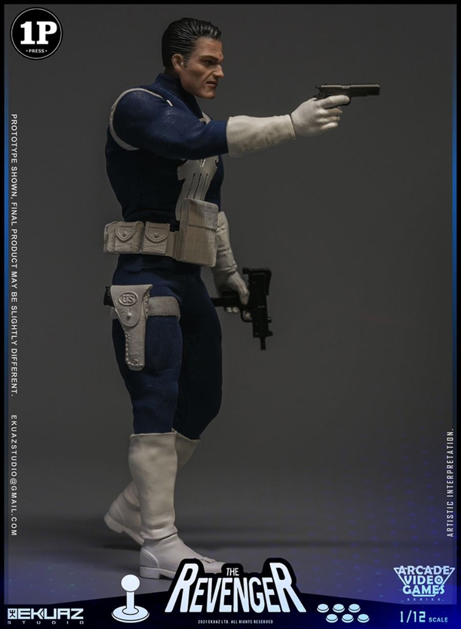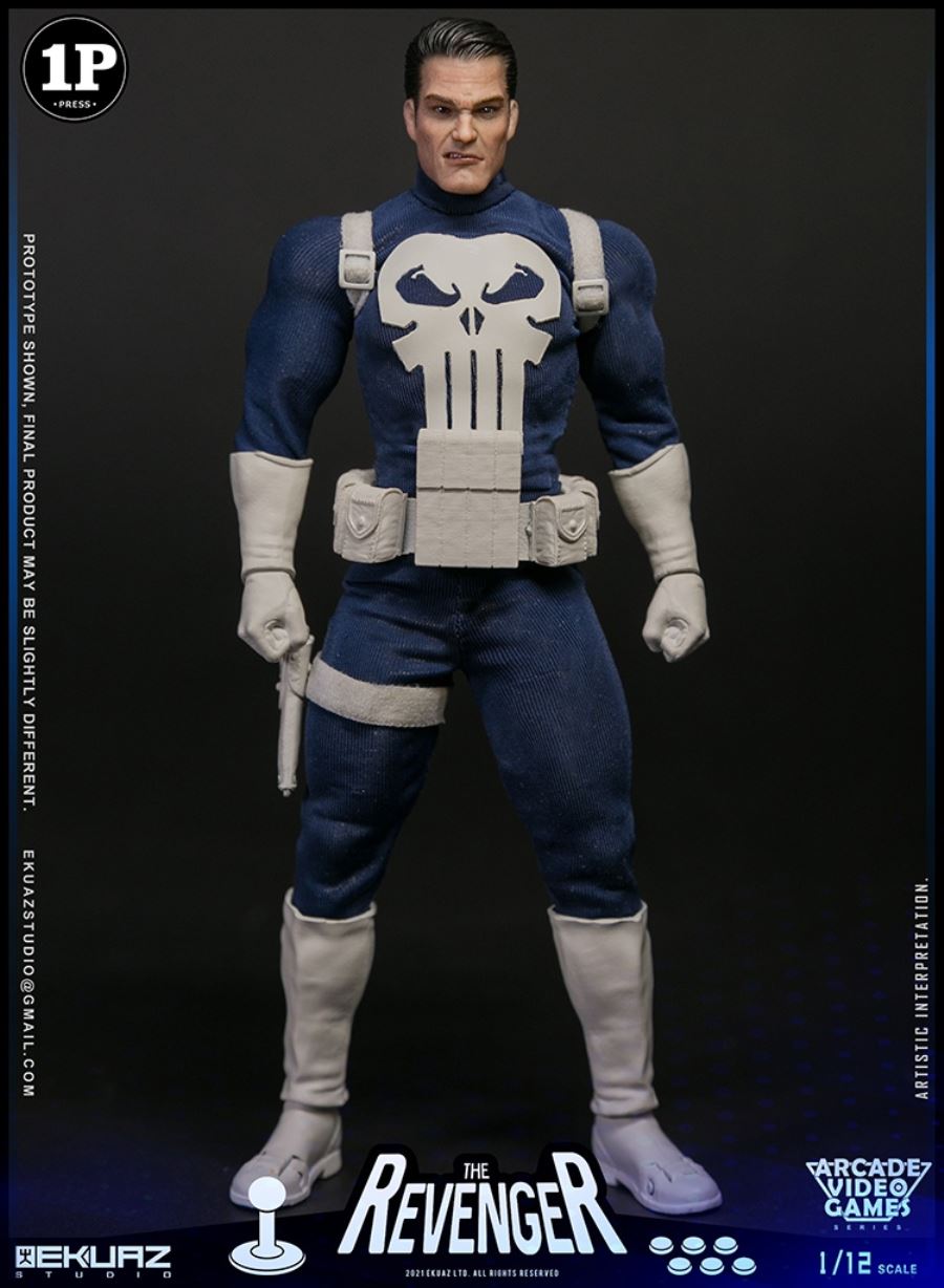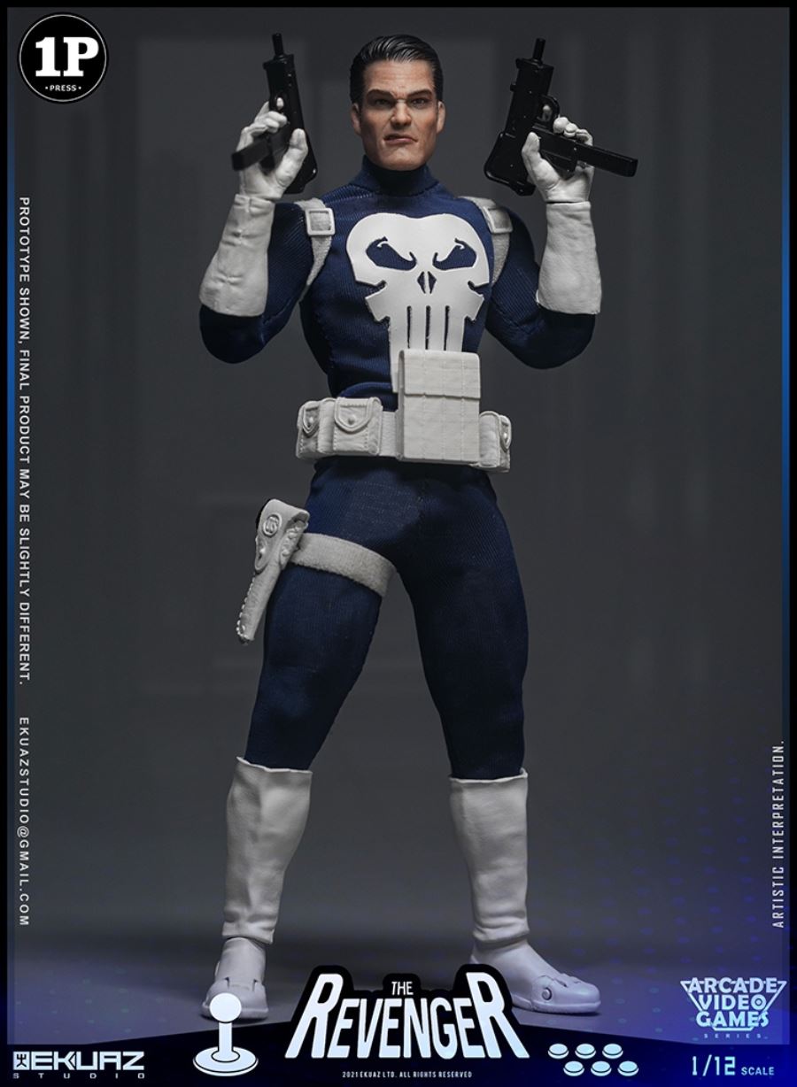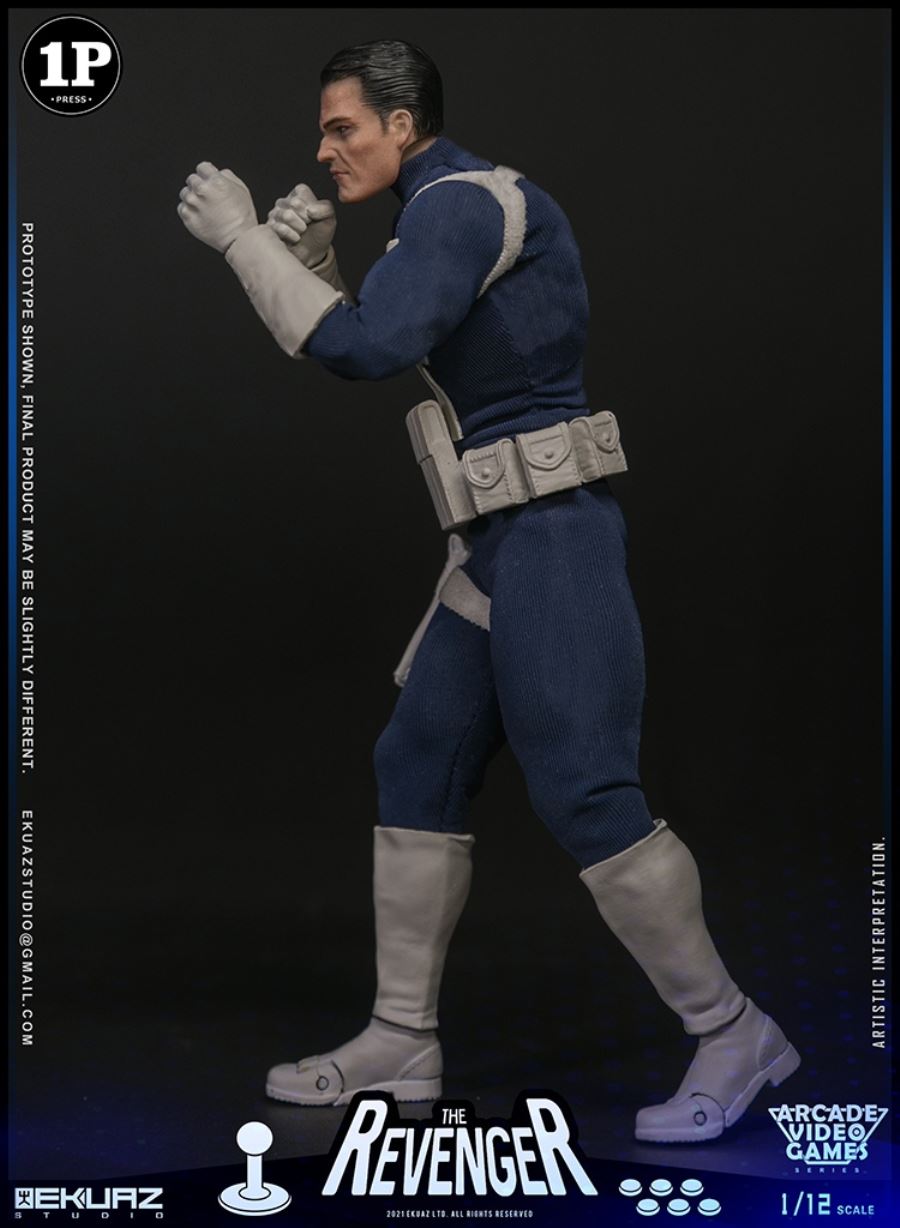 EKUAZ STUDIOEKS061/12 Scale THE REVENGER ARCADE VIDEO GAMES SERIESPARTS LIST:BODY:HEADSCULPTURE1/12 MUSCULAR ACTION BODYINTERCHANGEABLE HANDS X8EQUIPMENT:COATPANTSCOMBAT BELTDROP LEG HOLSTERSHOULDER STRAPA PAIR OF BRACERSBOOTSWEAPON:ASSAULT RIFLEMAGSUBMACHINE GUN X2PISTOL x2CARTOON STYLE FOR PISTOL x2GRENADE x3COMBAT KNIFEMACHETEOTHER:FIGURE STAND