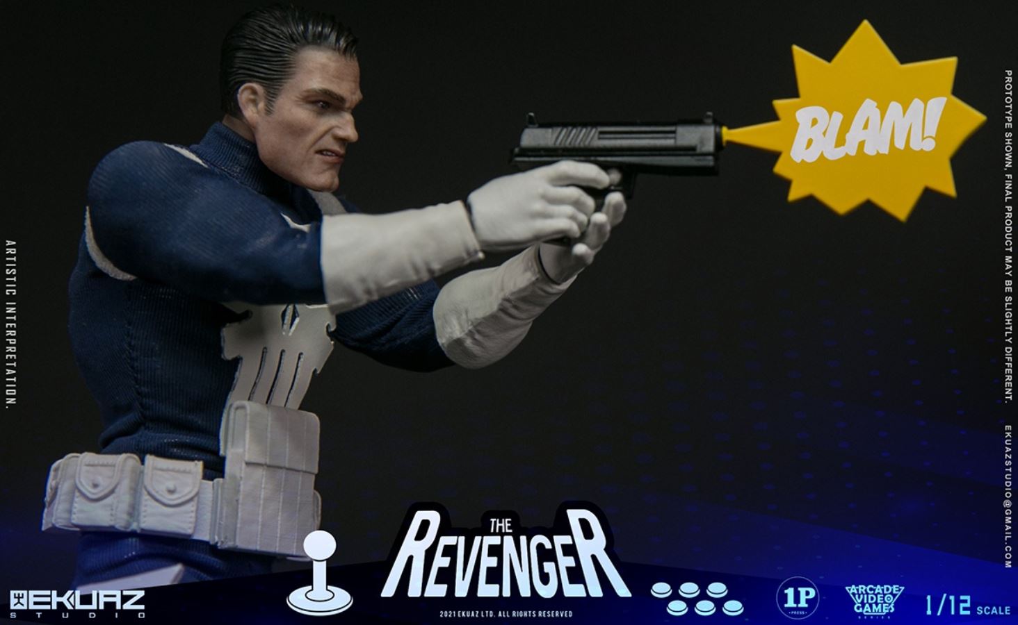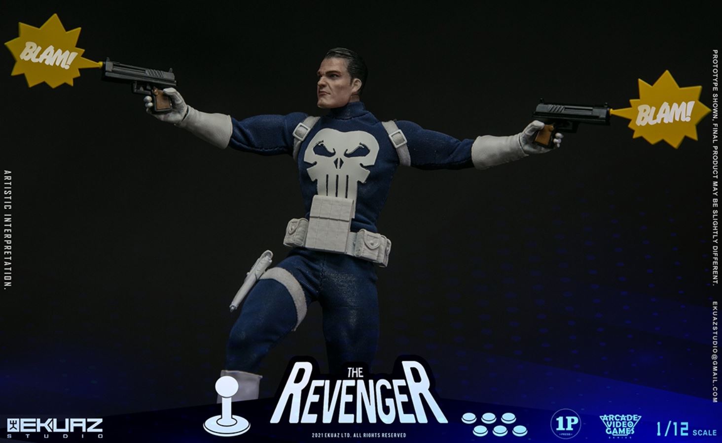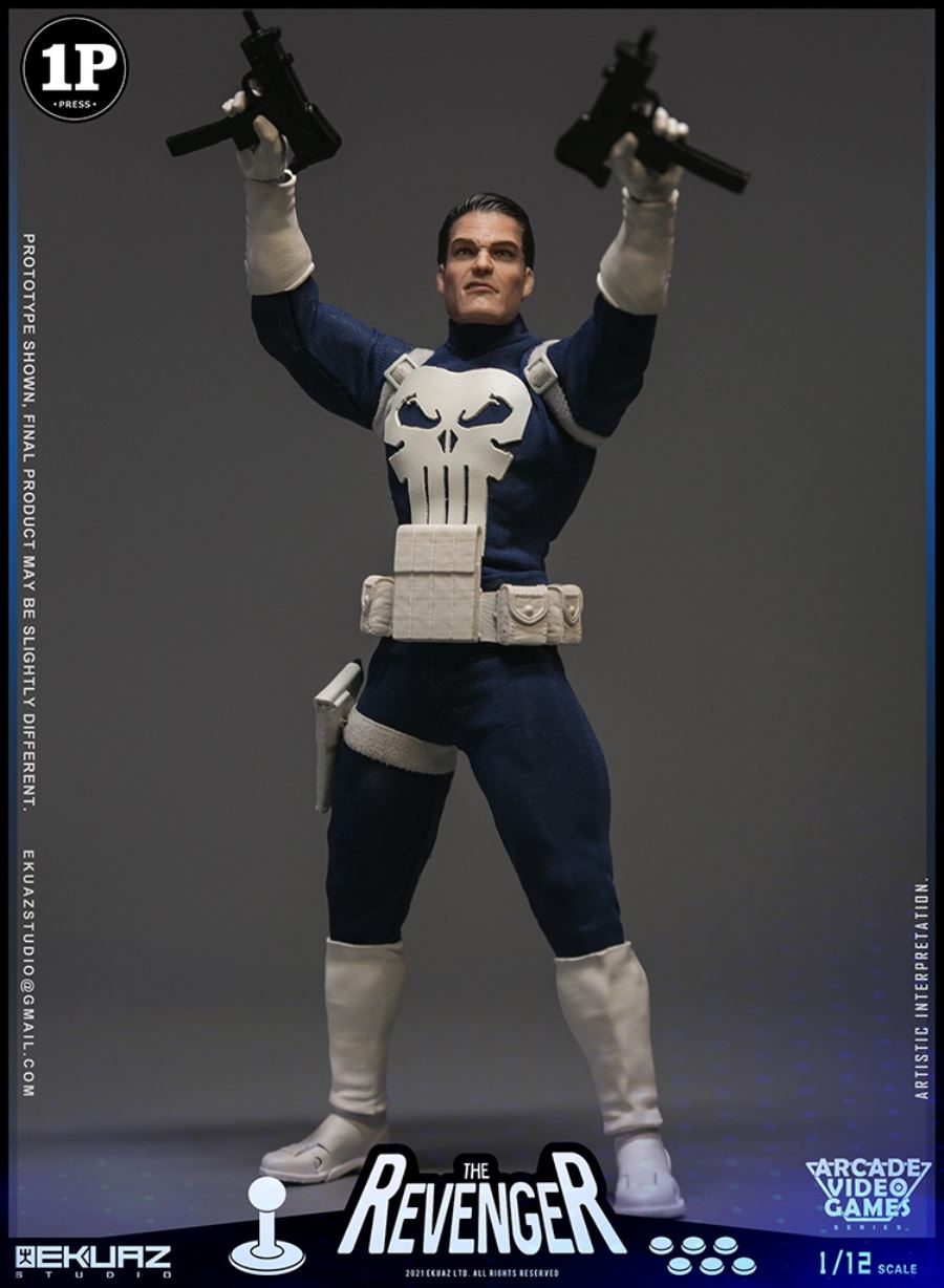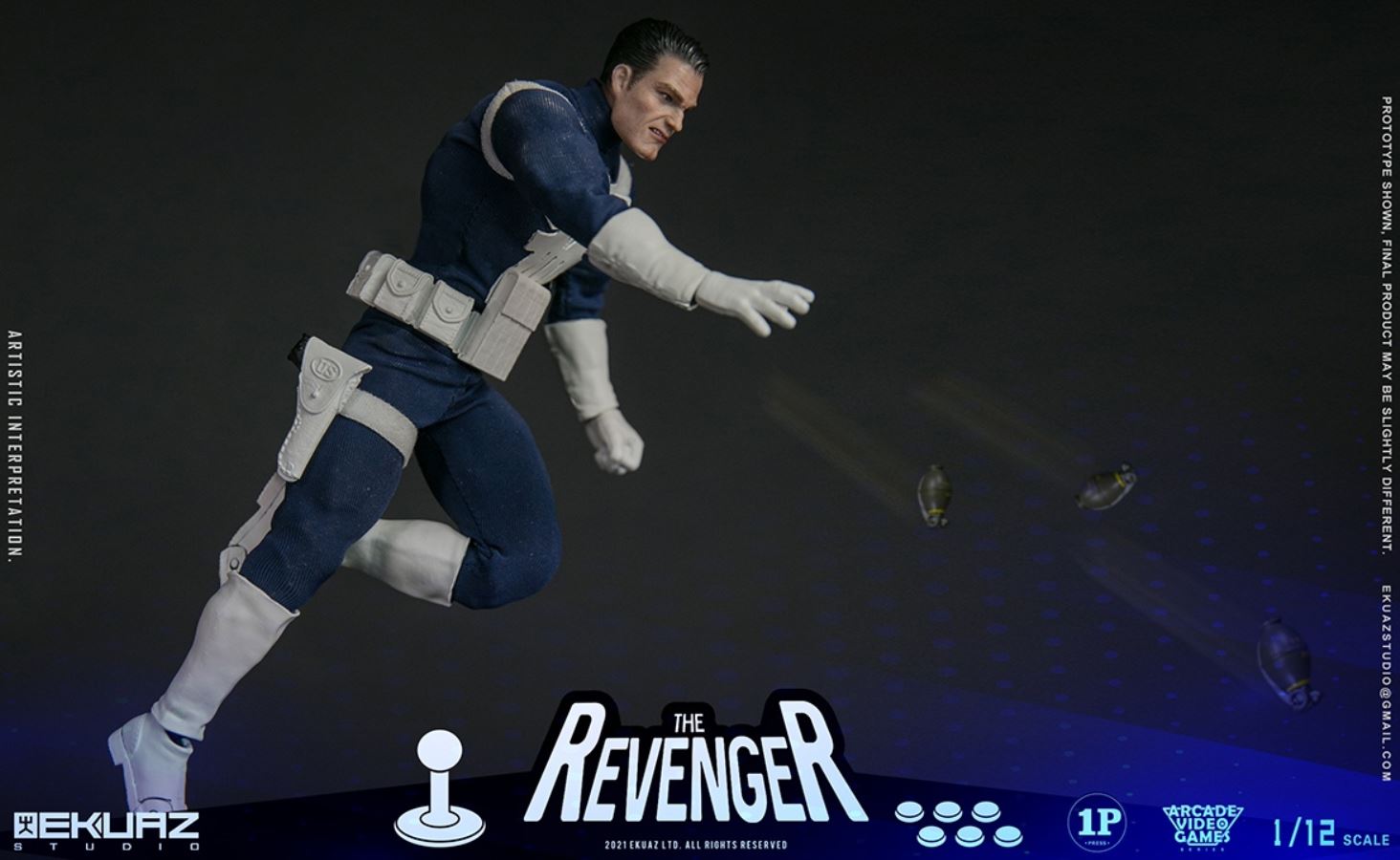 EKUAZ STUDIOEKS061/12 Scale THE REVENGER ARCADE VIDEO GAMES SERIESPARTS LIST:BODY:HEADSCULPTURE1/12 MUSCULAR ACTION BODYINTERCHANGEABLE HANDS X8EQUIPMENT:COATPANTSCOMBAT BELTDROP LEG HOLSTERSHOULDER STRAPA PAIR OF BRACERSBOOTSWEAPON:ASSAULT RIFLEMAGSUBMACHINE GUN X2PISTOL x2CARTOON STYLE FOR PISTOL x2GRENADE x3COMBAT KNIFEMACHETEOTHER:FIGURE STAND