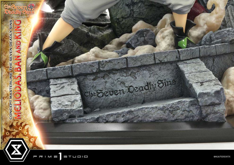 Everyone has to die someday. But what they believed in will never fade away as long as someone protects it” - MeliodasPrime 1 Studio is absolutely thrilled to present the next addition to the acclaimed Concept Masterline Series, introducing the action-packed 1:6 scale CMNTZ-01: Meliodas, Ban, and King from The Seven Deadly Sins.Set in the fantasy Kingdom of Liones, where the Holy Knights, who were once the most powerful order have staged a coup to overthrow the ruler. The Seven Deadly Sins is a band of powerful knights who were disbanded after being accused of plotting against the kingdom. Each of their members is named after one of the sins. They’ve become Princess Elizabeth’s only hope to defeat the corrupt Holy Knights and deliver the kingdom from their grasp.Prime 1 Studio’s artists and sculptors bring you a 21 inches-tall diorama portraying an intense and epic battle scene, featuring Meliodas the Dragon’s Sin of Wrath, Ban the Fox’s Sin of Green, and King the Grizzly’s Sin of Sloth, masterfully capturing the comradery and fierce fighting spirit of the trio. King, graceful and weightless in his movements, is equipped with his spirit spear Chastiefold. Ban the carefree and nonchalant character of the band pounces forward, his open jacket revealing the lean and shredded physique of an absolutely skilled fighter. Finally, Meliodas, equipped with his Sacred Treasure Lostvayne stands ready to take on any enemy that may cross their paths. Our artisans have done an outstanding job once again at texturizing every piece of garment and component of the statue to further elevate its presence. The base features stone carvings and angelic statues, broken stone pillars and rising dust, the world of “Seven Deadly Sins” can be felt no matter the angle you look at!The Seven Deadly Sins is an expansive and rich world – Dragon’s Judgement, the fourth and final season, brings the epic conclusion of the much-beloved series, and we truly believe this piece deserves a place in any anime-fan’s collection! Now’s your chance to bring home a part of that universe right into the warmth of your home. Pre-order the CMNTZ-01: Meliodas, Ban, and King while quantities last! Specifications: Statue Size approximately 21 inches tall [H:55cm W:41cm D:39cm]Seven Deadly Sins-themed base Notice: Prototype samples shown.Product details could be subject to change without further notice.Please note the final product specifications may differ because each product is Handmade.Since the product is still in the development stage, the Size (up to 10%) & Weight (up to 10kg) may be changed during the production stage. © Naka Suzuki/Kodansha/“The Seven Deadly Sins: Judgment of Wrath” Production Committee/TV TokyoDETAILSBrandsPRIME 1 STATUECollectionConcept MasterlineSeriesThe Seven Deadly SinsScale1/6 ScaleProduct CodeCMNTZ-01Product Size Approx.H:55cm W:41cm D:39cmCarton(Est.): 1 boxProduct Weight Approx.About 10.8 kgMaterialsPolystone and other materialsJAN4580708048482