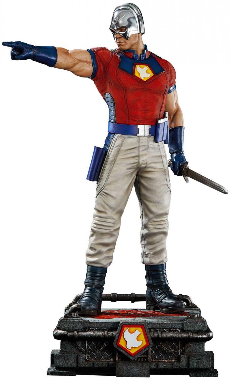 Descriptions“I cherish Peace with all my heart. I don’t care how many men, women, and children I need to kill to get it.”Prime 1 Studio is absolutely pumped to present a fine addition to the 1:3 Scale Museum Masterline Series: MMTSS-02S PEACEMAKER BONUS VERSION from THE SUICIDE SQUAD!Bask in the glory of this 31-inch-tall Peacemaker statue. Chris Smith is a paragon of Peace in this newest release from Prime 1 Studio. In collaboration with Blitzway, Prime 1 Studio is proud to reveal our version of Peacemaker from last year’s highly successful The Suicide Squad film.Blitzway’s artists have brought this statue to life with a marvelous likeness, crisp sculpting, and screen-accurate color! Peacemaker’s costume is true-to-form with all of its faithful interpretations of the textures of his uniform, the sleek, metallic gleam of his helmet, and the vivid coloring of everything he wears. Finally, John Cena’s portrait is picture-perfect, as only he can appreciate! Peacemaker stands on a base excitingly reminiscent of the Jotunheim tower laboratory that he fought Rick Flagg in!Peacemaker comes with two (2) swappable left arms: one holding his Dove of Peace Tomahawk, and the other, his Dove of Peace Sword. And it also comes with two (2) swappable right hands: one pointing direction, and the other, his long-barreled pistol. That’s not all; when you pre-order this Bonus Version from our official online store or any authorized distributor, you will receive a cool, extra Bonus Part: Peacemaker’s own Starro on it’s own base.Make sure you Pre-Order in time, so you have a bona fide Peacemaker statue to celebrate his hilarious, new show on HBO Max!Specifications:The Suicide Squad-themed baseTwo (2) Swappable Right Hands (Pointing direction, long-barreled pistol)Two (2) Swappable Left Hands (holding Dove of Peace Sword & Tomahawk)One (1) Mini Starro on Base [BONUS PART]Notice:Prototype samples shown.Product details could be subjected to change without further notice.Please note the final product specifications may differ because each product is Handmade.Since the product is still in the development stage, the Size (up to 10%) & Weight (up to 10kg) may be changed during the production stage.<div = style=box-sizing: border-box; margin: 0px; padding: 0px; text-align: center;>THE SUICIDE SQUAD and all related characters and elements © & ™ DC Comics and Warner Bros. Entertainment Inc. (s22)
