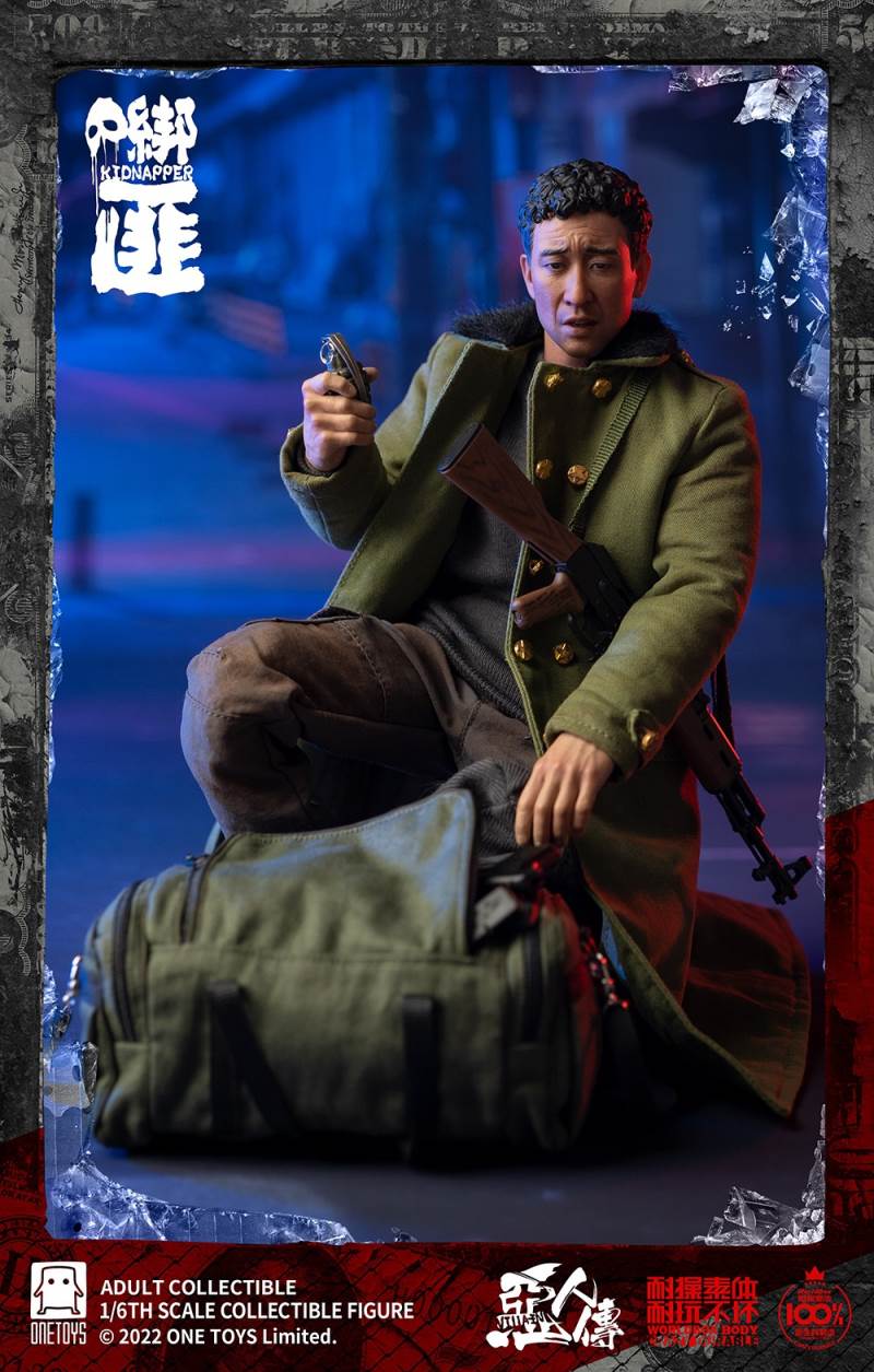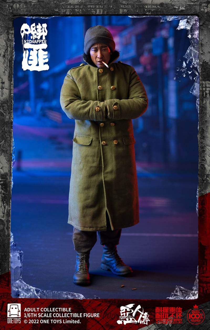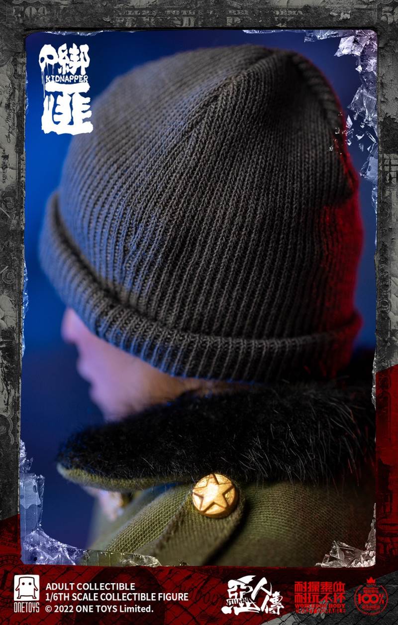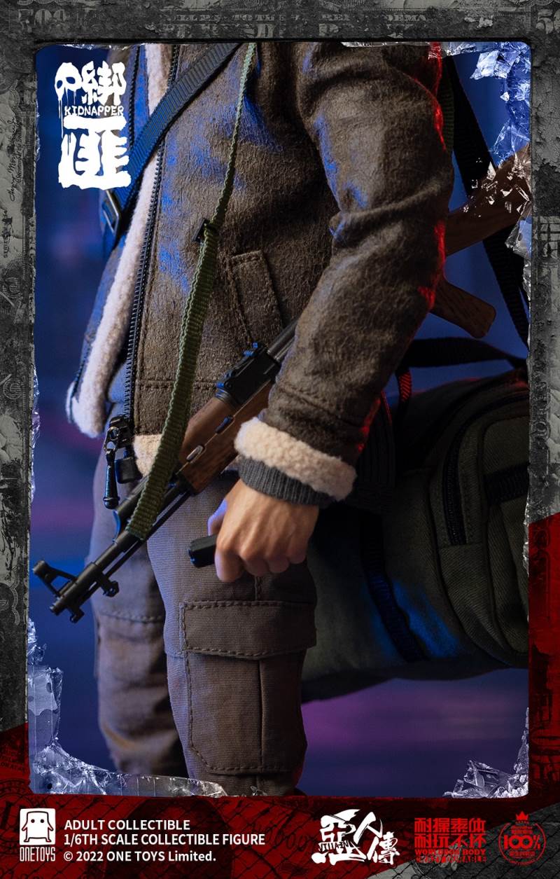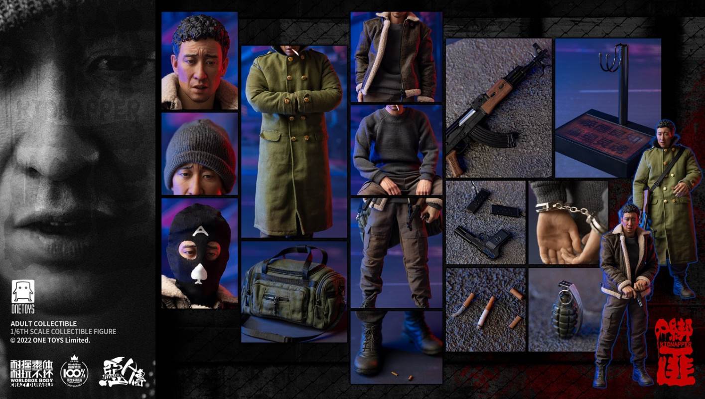 Onetoys: 1/6 The wicked Kidnapper action figureNo. OT014List:- Head carving x1- worldbox body x1- four pairs of handsClothing style:- military coat x1- brown fur collar jacket x1- gray sweater x1- gray pants x1- black hood x1- gray hood x1- black shoes a pairAccessories:- large Capacity Travel Bag x1- Rifle x1, contains two magazines- Pistol x1, contains two magazines- Grenades x1- Cigarette Butts x3- Cigarettes x1- Handcuffs x1- Stand x1, with the words Awaken the Conscience, Rebuild the Soul on the frontonetoys: 1/6 The wicked ”kidnapper ” action figure- 1/6th scale Collectible Figure SpecificationsNo. OT014- One (1) head- One (1) worldbox body- Four (4) pair of hands,naturally drooping hand, open hand, object-holding hand, gun-holding handCostume:- One (1) coat- One (1) brown fur collar jacket- One (1) grey sweater- One (1) grey pants- One (1) black headgear- One (1) grey knitted hat- One (1) pair of black shoesAccessories:- One (1) Large capacity travel bag- One (1) rifle , contains two magazines- One (1) pistol , contains two magazines- One (1) grenade- Three (3) cigarette butt - One (1) smoke- One (1) handcuffs- One (1) new type of bracket drawer, with figures corresponding to the environment patterns on the frontRelease date: Q3, 2022