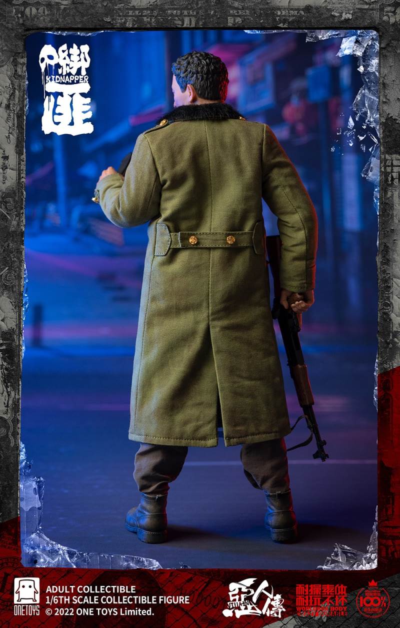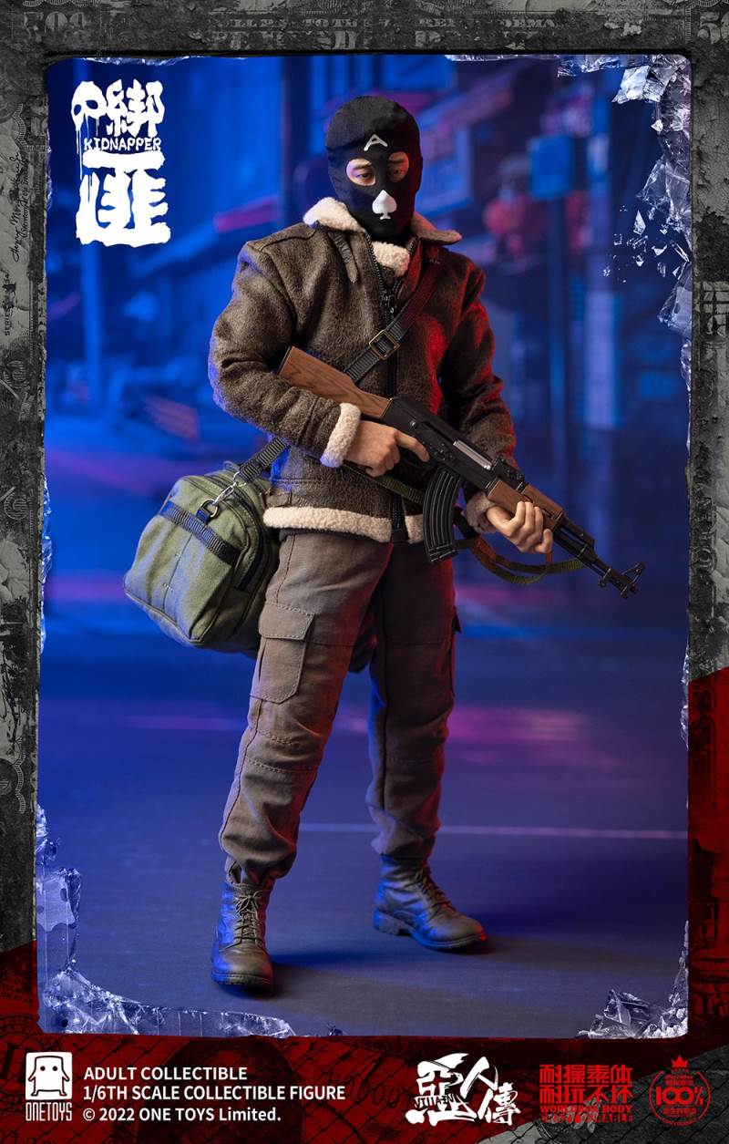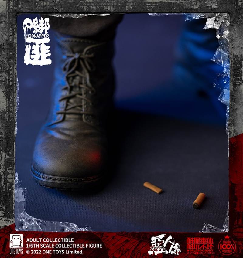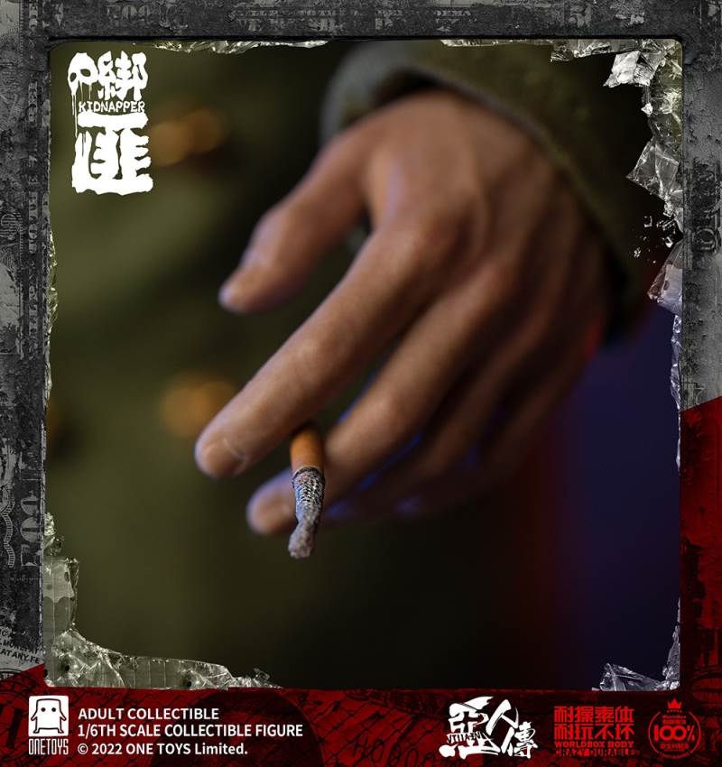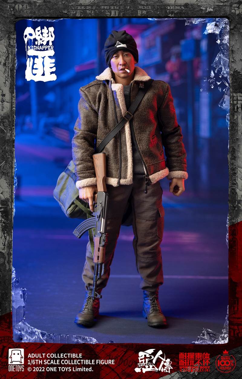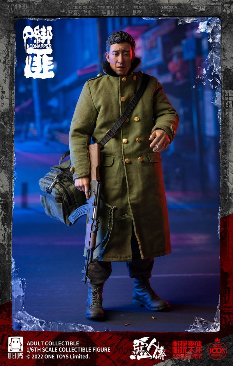 Onetoys: 1/6 The wicked Kidnapper action figureNo. OT014List:- Head carving x1- worldbox body x1- four pairs of handsClothing style:- military coat x1- brown fur collar jacket x1- gray sweater x1- gray pants x1- black hood x1- gray hood x1- black shoes a pairAccessories:- large Capacity Travel Bag x1- Rifle x1, contains two magazines- Pistol x1, contains two magazines- Grenades x1- Cigarette Butts x3- Cigarettes x1- Handcuffs x1- Stand x1, with the words Awaken the Conscience, Rebuild the Soul on the frontonetoys: 1/6 The wicked ”kidnapper ” action figure- 1/6th scale Collectible Figure SpecificationsNo. OT014- One (1) head- One (1) worldbox body- Four (4) pair of hands,naturally drooping hand, open hand, object-holding hand, gun-holding handCostume:- One (1) coat- One (1) brown fur collar jacket- One (1) grey sweater- One (1) grey pants- One (1) black headgear- One (1) grey knitted hat- One (1) pair of black shoesAccessories:- One (1) Large capacity travel bag- One (1) rifle , contains two magazines- One (1) pistol , contains two magazines- One (1) grenade- Three (3) cigarette butt - One (1) smoke- One (1) handcuffs- One (1) new type of bracket drawer, with figures corresponding to the environment patterns on the frontRelease date: Q3, 2022