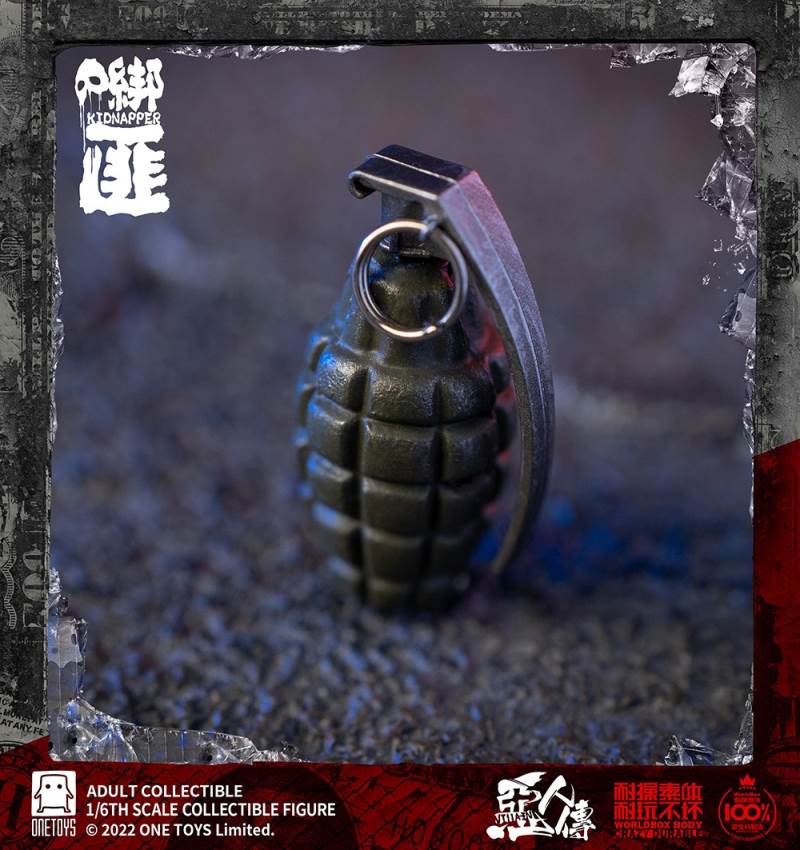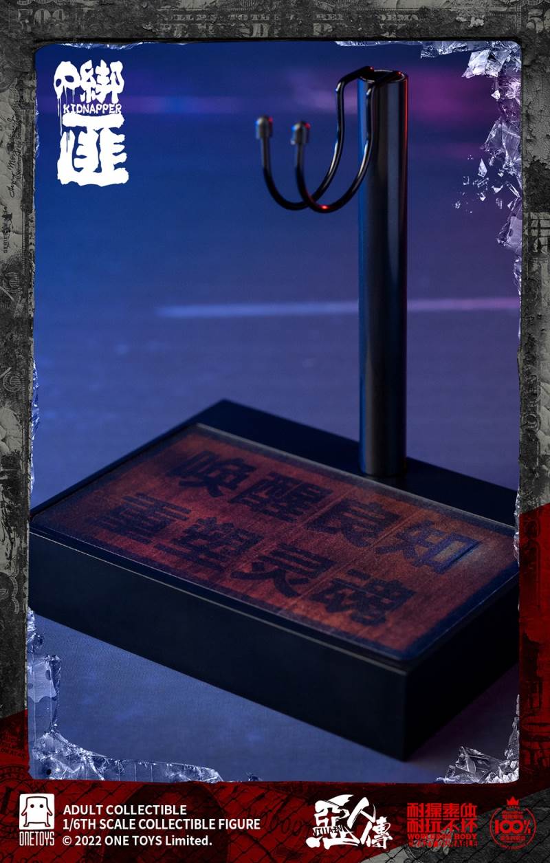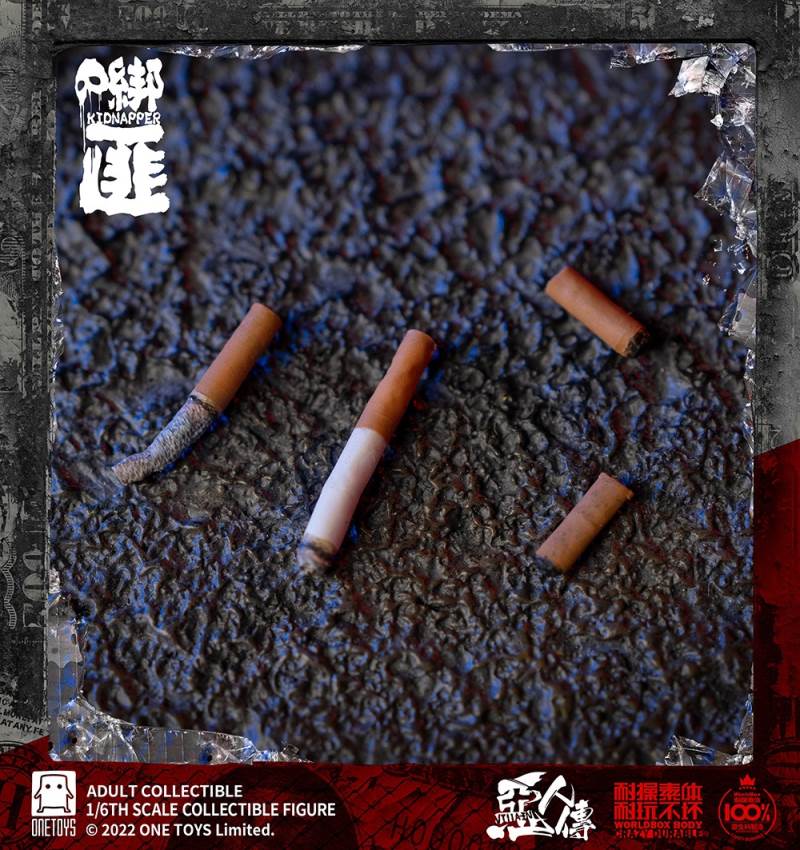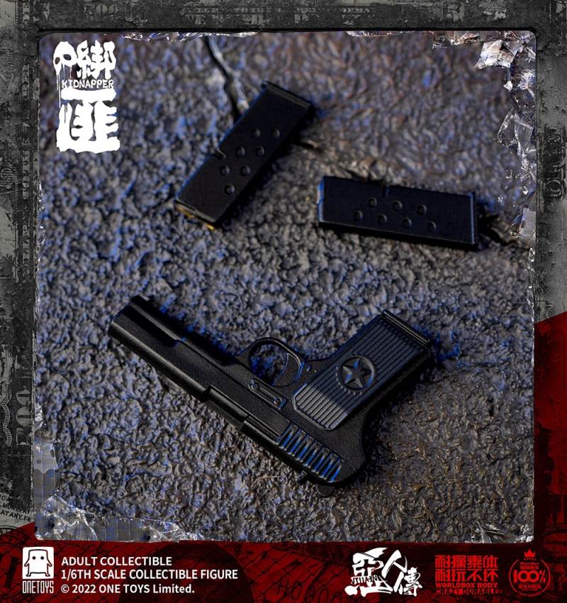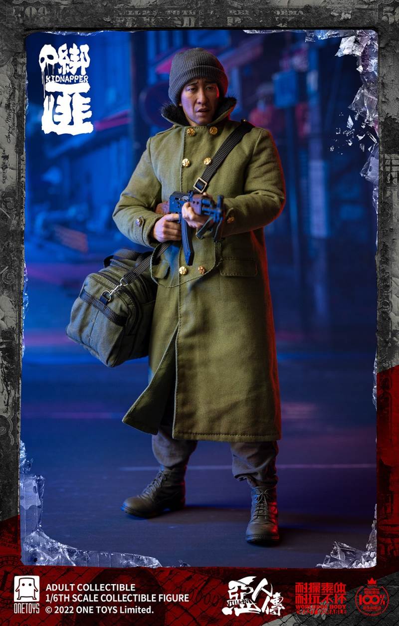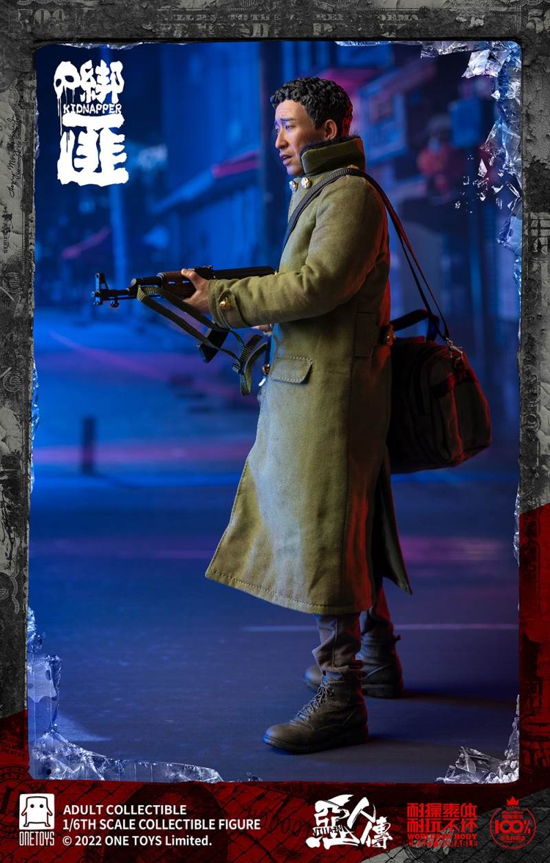 Onetoys: 1/6 The wicked Kidnapper action figureNo. OT014List:- Head carving x1- worldbox body x1- four pairs of handsClothing style:- military coat x1- brown fur collar jacket x1- gray sweater x1- gray pants x1- black hood x1- gray hood x1- black shoes a pairAccessories:- large Capacity Travel Bag x1- Rifle x1, contains two magazines- Pistol x1, contains two magazines- Grenades x1- Cigarette Butts x3- Cigarettes x1- Handcuffs x1- Stand x1, with the words Awaken the Conscience, Rebuild the Soul on the frontonetoys: 1/6 The wicked ”kidnapper ” action figure- 1/6th scale Collectible Figure SpecificationsNo. OT014- One (1) head- One (1) worldbox body- Four (4) pair of hands,naturally drooping hand, open hand, object-holding hand, gun-holding handCostume:- One (1) coat- One (1) brown fur collar jacket- One (1) grey sweater- One (1) grey pants- One (1) black headgear- One (1) grey knitted hat- One (1) pair of black shoesAccessories:- One (1) Large capacity travel bag- One (1) rifle , contains two magazines- One (1) pistol , contains two magazines- One (1) grenade- Three (3) cigarette butt - One (1) smoke- One (1) handcuffs- One (1) new type of bracket drawer, with figures corresponding to the environment patterns on the frontRelease date: Q3, 2022