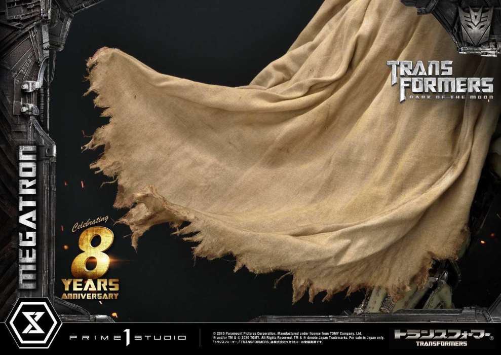 เราได้ถ่ายภาพ Megatron ที่ยิ่งใหญ่ในท่าทางที่โดดเด่นที่สุดในภาพยนตร์ Transformers ทุกเรื่องซึ่งได้รับแรงบันดาลใจโดยตรงจากฉากแอฟริกา ไม่นานหลังจากการเปลี่ยนแปลงที่ยอดเยี่ยมและทำให้สัตว์ป่าหวาดกลัว Megatron ก็ลุกขึ้นสวมเสื้อคลุมของเขาด้วยความยิ่งใหญ่ที่ขากรรไกรของเรากระแทกพื้น ผลงานชิ้นเอกนี้มีท่วงท่าอันยิ่งใหญ่และเสื้อคลุมสุดอลังการพร้อมรอยแผลเป็นจากการต่อสู้และคุณสมบัติไฟ LED ส่องสว่างบนดวงตาของ Megatron