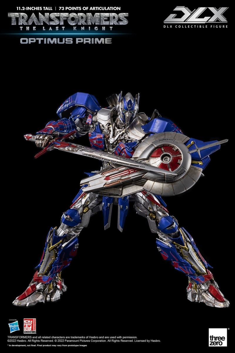 Transformers: The Last Knight – DLX Optimus Prime มีความสูงประมาณ 11.2 นิ้ว (28.5 ซม.) และมีจุดเชื่อมต่อประมาณ 73 จุด พร้อมโครงโลหะหล่อและดวงตาที่มีไฟ LED