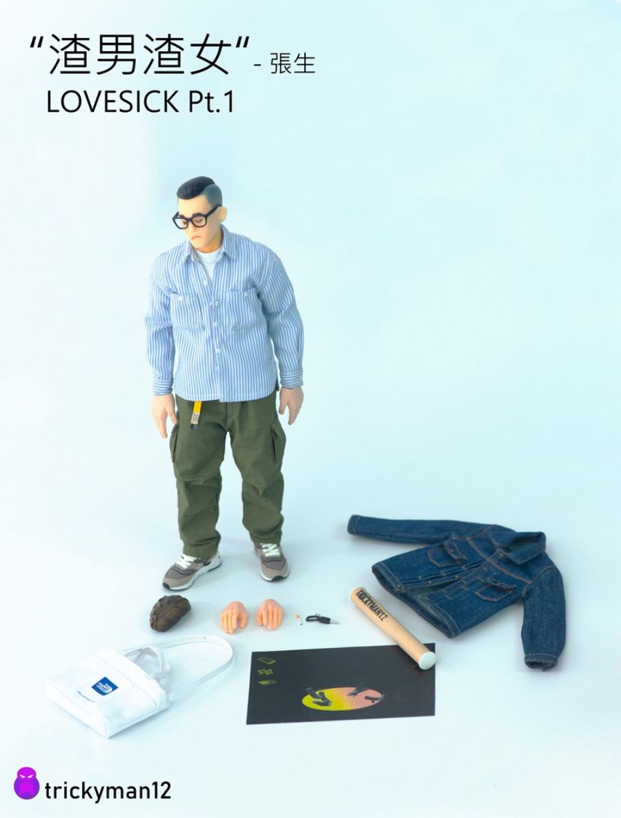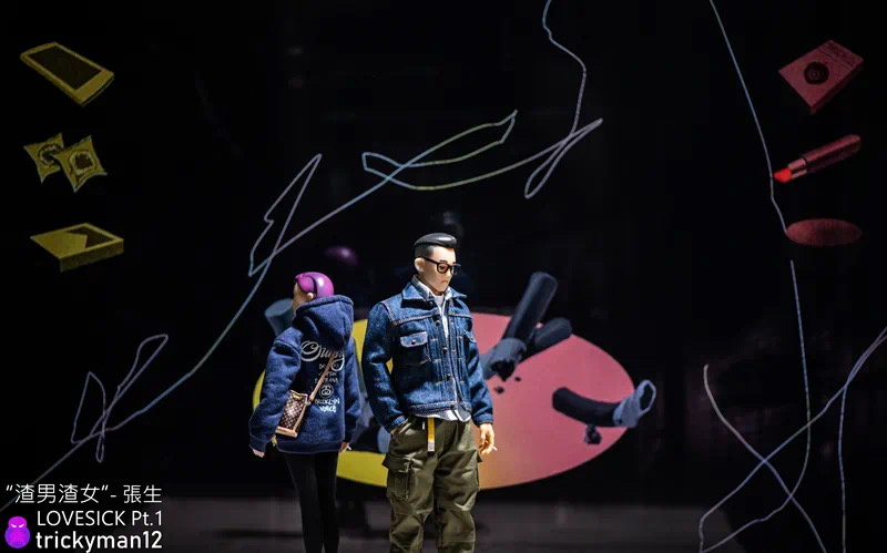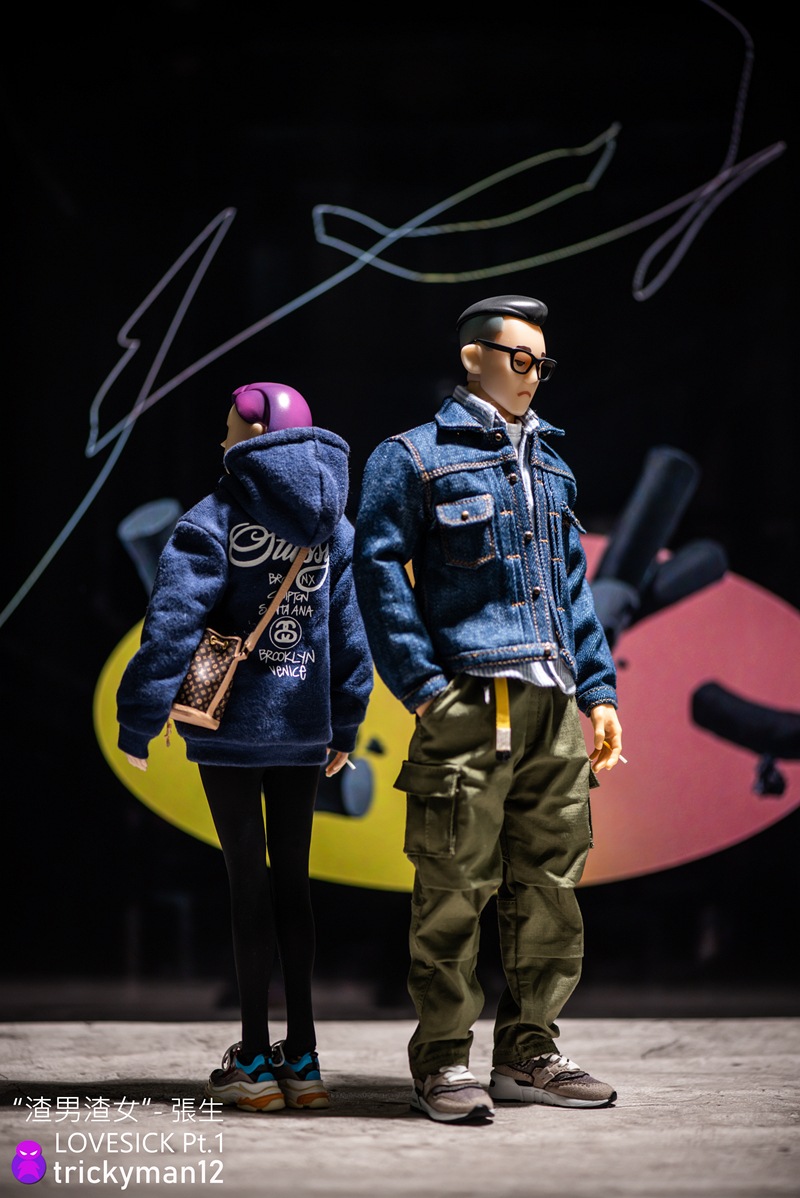 Trickyman12-1/6 Slacks Men and Women series of trendy action figuresAccessories list:*1 body body*denim jacket*striped shirt*white T-shirt*overalls*belt*socks*997 sports shoes*canvas bag*glasses*Earrings*Guardian car keys*Drawing barrels*Drawing*cigarettes*Replacement hands (a pair)*Replacement hairstyles*A set of fun accessories that you can’t even ask