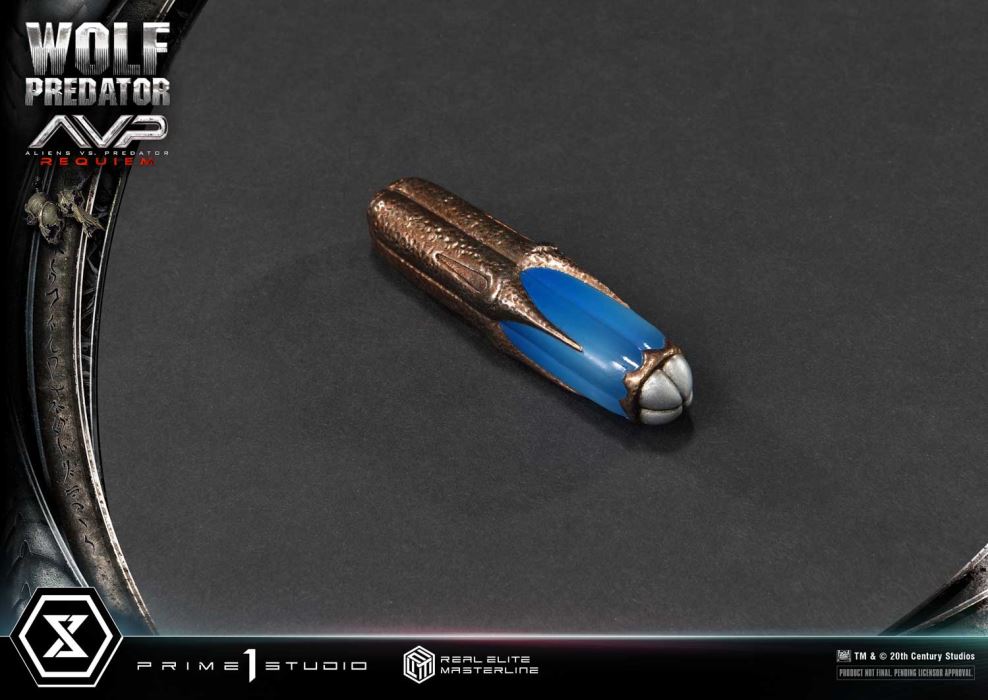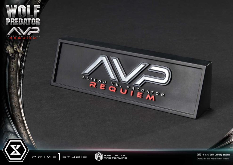 Patron Bonus PartReceive the Damaged Bio Mask as a Special Gift*For details, please refer to the Patron Bonus section.Eradicate the Xenomorphs. Leave no Yautja trace.The Cleaner brought to life in 1/3 scaleFrom Aliens vs. Predator: Requiem, Wolf Predator joins the Real Elite Masterline.The relentless hunter known as The Cleaner—is tasked with exterminating Xenomorphs and erasing all traces of Yautja presence. Prime 1 Studio proudly presents its eighth 1/3 scale Predator statue, capturing this cold-blooded professional in all his glory. Every aspect of his stance has been meticulously studied to recreate the tension and battle-hardened presence of a veteran warrior.His bio mask, engraved with the language of his kind. His unmasked face, scarred from countless battles, with a single remaining eye. Both head sculpts have been crafted with the latest sculpting and painting techniques. The intricate patterns of his muscular frame, the meticulously designed Cleaner Case, a vial of dissolving liquid and his vast array of weaponry have all been brought to life with exceptional detail, even down to the weathering, scars, and aged textures that tell the story of his long hunts. Enjoy this masterpiece with LED-illuminated features and flexible silicone dreadlocks for dynamic display.The highly detailed base features a writhing Warrior Alien, captured in stunning realism. Its dark metallic gray exoskeleton, combined with the translucent acid blood effects, enhances the grotesque beauty of this deadly species, further emphasizing Wolf’s dominant presence.The Deluxe Bonus Version includes an extensive arsenal of weapons: the traditional Yautja Combistick and Shuriken, along with signature weaponry such as the Plasma Pistol and deadly whip. Display his roaring unmasked head separately on the included head stand to fully customize your showcase.This version also includes an exclusive Plasma Pistol with a stand. And for customers who purchase this product along with the eligible item, a Patron Bonus awaits: a battle-damaged Bio-Mask reminiscent of the fight against the Predalien. Both are must-have special items for dedicated fans.Wolf Predator is a warrior who embodies the pinnacle of Yautja combat prowess. Now, he descends upon your collection in stunning 1/3 scale.Specifications:Aliens vs. Predator: Requiem Themed BaseThree (3) Swappable Heads (Bio Mask, Unmasked [Serious / Roaring])Four (4) Swappable Right Hands (Fist, Combistick, Shuriken, Whip)Three (3) Swappable Left Arms (Downward, Pointing, Plasma Pistol)Three (3) Swappable Left Hands for the Downward Arm (Fist, Open Palm, Shuriken)Two (2) Sets of Swappable Combistick Segments (Extended, Retracted)Two (2) Swappable Wrist Blades (Extended, Retracted)Two (2) Swappable Plasma Cannons (Extended, Retracted)Two (2) Swappable Backpacks (Heavy-Equipped, Light-Equipped)Two (2) Dissolving Liquid Vials (Unused, Used)Three (3) Title Logo Plates (Silver, Black, AVP)Two (2) Head StandsLED Light-Up Feature (Bio Mask, Gauntlet, Plasma Cannon, Plasma Pistol)One (1) Plasma Pistol with Stand [BONUS PART]One (1) Damaged Bio Mask [PATRON BONUS PART]LED Power Supply Method: TBD * Please prepare batteries, USB cables, or other necessary items depending on the final power supply method.Patron BonusCustomers who purchase this product along with one of the eligible products from the official online store will receive the Patron Bonus Part as a free gift.Eligible Store: Prime 1 Studio Official Online StorePatron Bonus Part: Damaged Bio MaskEligible Products:- Museum Masterline XL Alien 3 (Film) Dog Alien(MMXLAL-01/DX/DXS)- Museum Masterline Prey (Film) Feral Predator(DX/DXS Feral Predator)*Please note: If your order for an eligible product is canceled, you will no longer be entitled to receive the Patron Bonus.Notice:Prototype samples shown.Product details could be subject to change without further notice.Please note the final product specifications may differ because each product is Handmade.Since the product is still in the development stage, the Size (up to 10%) & Weight (up to 10kg) may be changed during the production stage.TM & © 20th Century StudiosDETAILSBrandsPRIME 1 STATUECollectionReal Elite MasterlineSeriesAlien , PredatorScale1/3 ScaleProduct CodeREMAVP-01DXSProduct Size Approx.H:95cm W:85cm D:65cmH:95cm W:85cm D:67cm(Pointing Hand)H:95cm W:85cm D:78cm(Plasma Pistol)Carton(Est):4 boxProduct Weight Approx.81.5 kg81.9 kg(with Damaged Bio Mask)MaterialsPolystone and other materialsJAN4582647121646