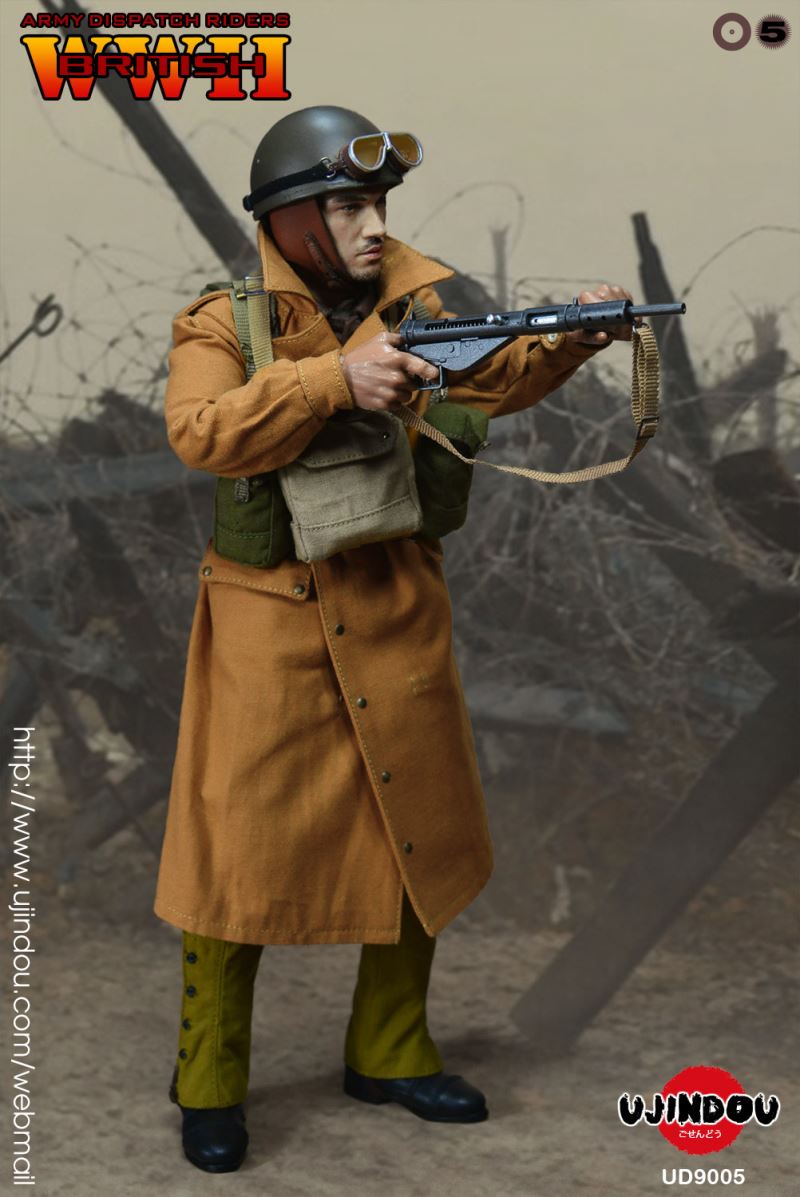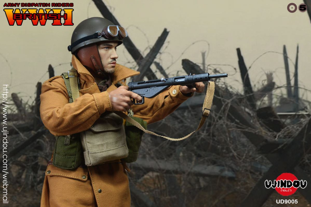PRODUCT NAME: World War II-British Army Locomotive Courier WWII British Army Dispatch RidersPRODUCT ITEM NO.: UD9005SET INCLUDES:Clothing COSTUME:1. 1X Desert Combat Shirt AERTEX TROPICAL DESERT SHIRT2. 1X Army Green Collar TIE3 . 1X Khaki Dispatch Riders Battle Dress Trousers4. 1X Brown Battle Dress MILITARY TUNIC JACKET5. 1X Khaki Rider Jacket British Dispatch rider jacket6.2X Rider Armband Dispatch Despatch Rider Armband7.1PAIR Khaki Rider Armband Gloves Dispatch Riders Gauntlets Lined8. 1X Army Green Backpack P37 Backpack9. 1X Army Green Ammunition Bag WWII UK ARMY BRITISH P37 AMMO POUCH10. 1X 10. 1X Army Green Armed Back Belt P37 WEBBING BELT11. 1X Army Green Equipment Belt 1937 WEBBING BELT12. 1X Khaki Gas Mask Bag MKVII Gas Mask Bag13. 1X Machine Gun with CANVAS RIFLE SLING14. 1 PAIR Black Knight Boots Dispatch Riders DR BootsSimulation Head Sculpture NEW BOND HEAD SCULPTURE Body with palm/foot BODY W/ RELAXED HANDSPALMS:1.1 PAIR GUN HOLDING HANDSequipment ACCESSORIES:1. Goggles BRITISH DUST GOGGLES2. Knight helmet WW2 British Army Dispatch Rider's Helmet3. Gas Mask with BAGWEAPONS:1. Machine gun SILENCED STEN MK II SUB-MACHINE GUN W/ SILENCER SLEEVE