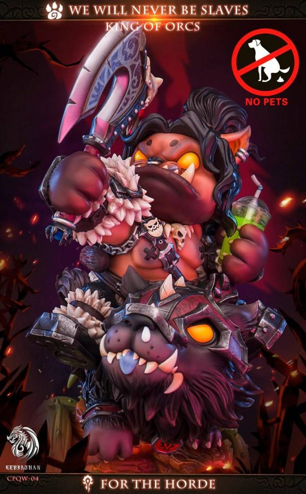 Work : Leviathan Roaring Meow Statue in World of Warcraft Size : about 46CM high Proportion : product limit: 300, cut orders at any time Product number: CPQW-04 Product material: high-grade polystone +pu Remarks : This model has a replacement hand, which can take an axe and chicken drumsticks. The fifth model is Warimiao Estimated shipping time: the fourth quarter of 2021