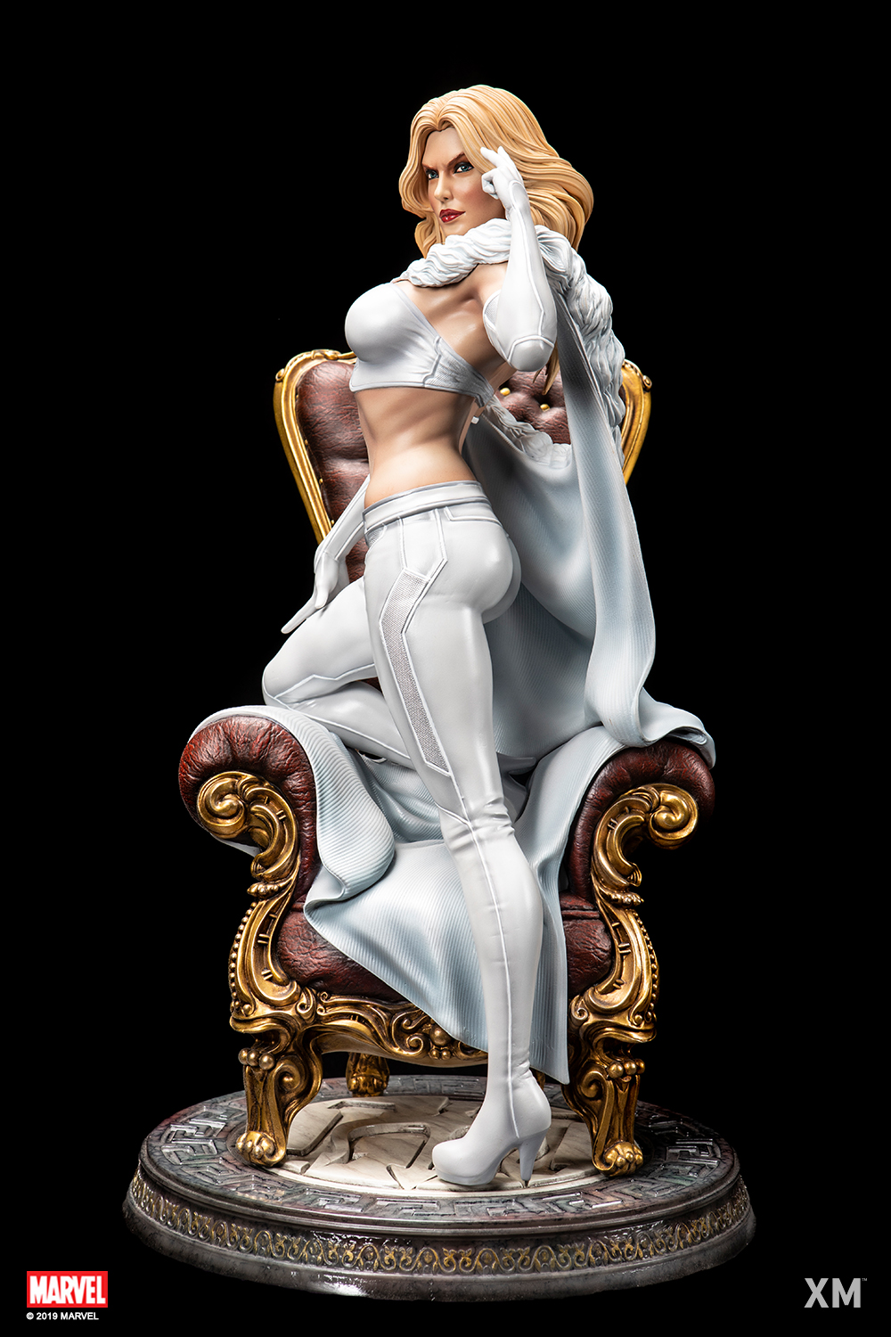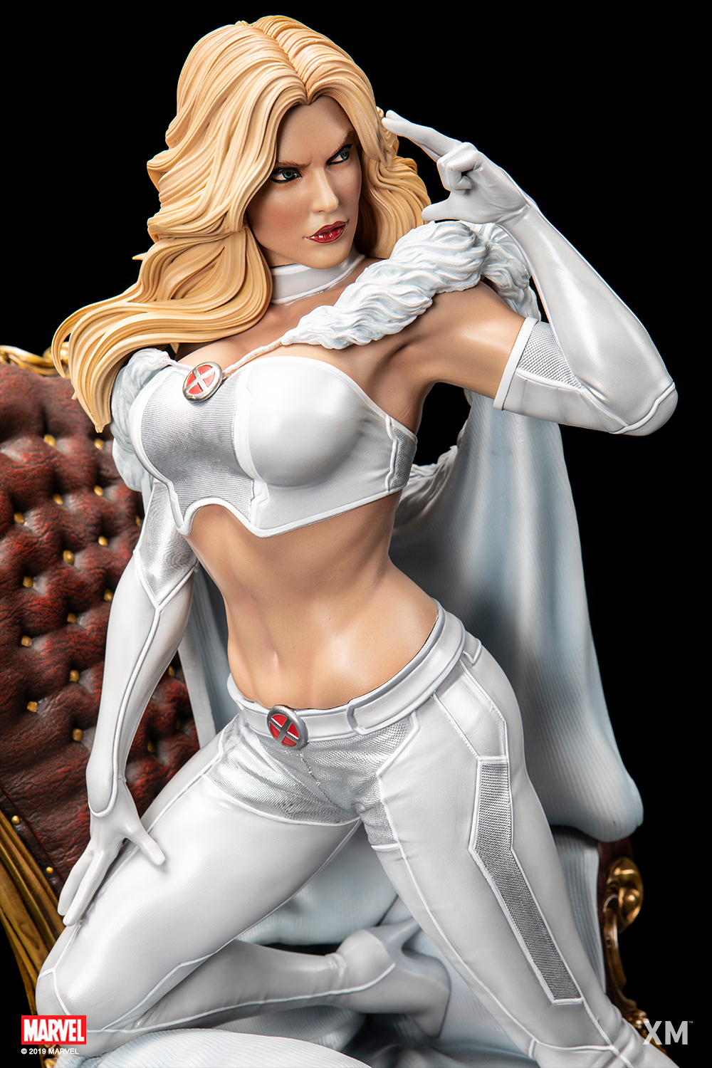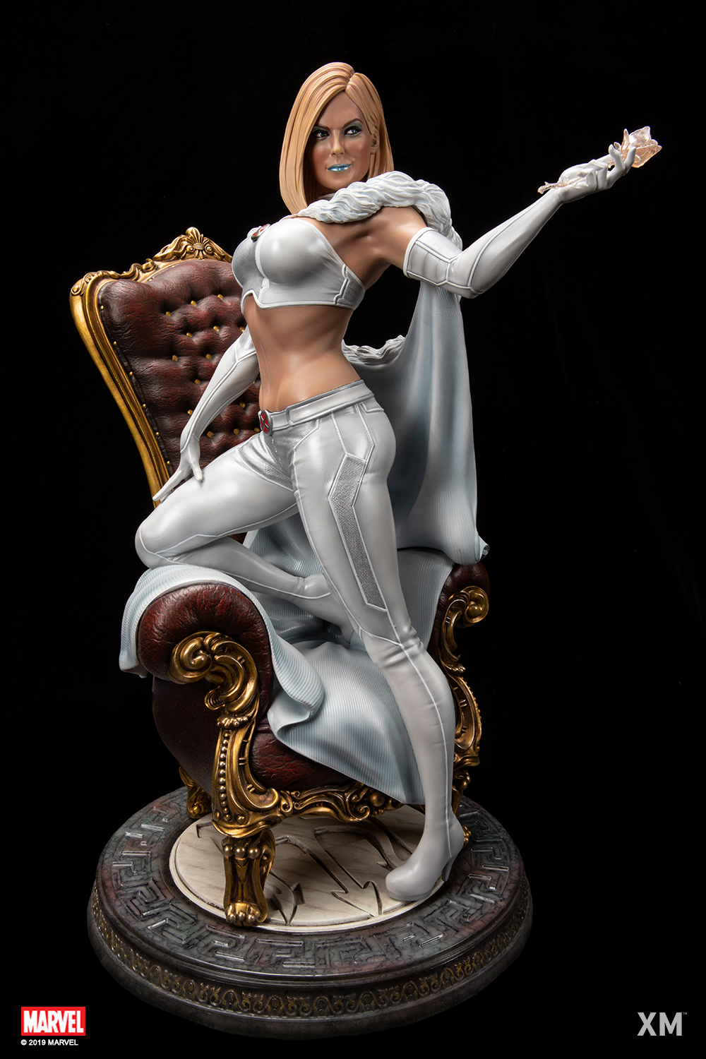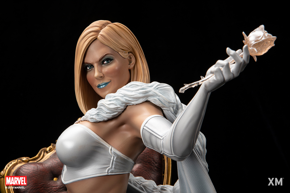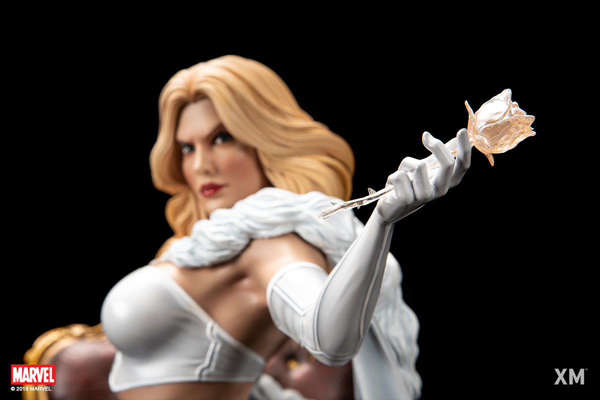 XM Studios is excited to present our next Marvel Premium Collectibles series statue, Emma Frost! One of the most powerful telepaths in the Marvel Universe, the White Queen is immortalized in amazingly detailed 1:4 scale cold-cast porcelain. Each painstakingly handcrafted statue is individually hand-painted with the highest possible quality finish. A must have to any X-Men fan, add this amazing new piece to your collection today!Background:Emma Frost - Emma Frost was born into a wealthy old Boston mercantile family that arrived from England in the 1600s... Unknown to their family or themselves, the three Frost sisters were mutants whose telepathic abilities matured upon reaching puberty...… read more at https://www.marvel.com/characters/emma-frostThe Emma Frost Premium Collectibles statue features:Two (2) Headsculpt - 1 long haired portrait and 1 short haired portrait with ice-blue make-upTwo (2) Right Arm - 1 right arm holding a white rose and 1 right arm features her fingers poised near her temple as she concentrates on her psionic powersCrafted from cold-cast porcelain Limited edition : MTOArt print by Carlos Dattoli Artists:Studio HIVE (Illustrator, Design and Concept Collaboration with XM Studios)Jon Troy Nickel, Philip Herman (Sculpt)XM Studios Design and Development TeamManufactured by: XM Studios Note: Prototype shown and pending final approval, final product may differ. Batteries will not be included for any XM products with lighting features due to shipping and customs restrictions. Product size : 28 cm L X 36 cm B X 50 cm H Est. Box Size : 61 cm L X 53 cm B X 40 cm HEst. Product Weight : 10 KgEst. shipping weight : 19 kg