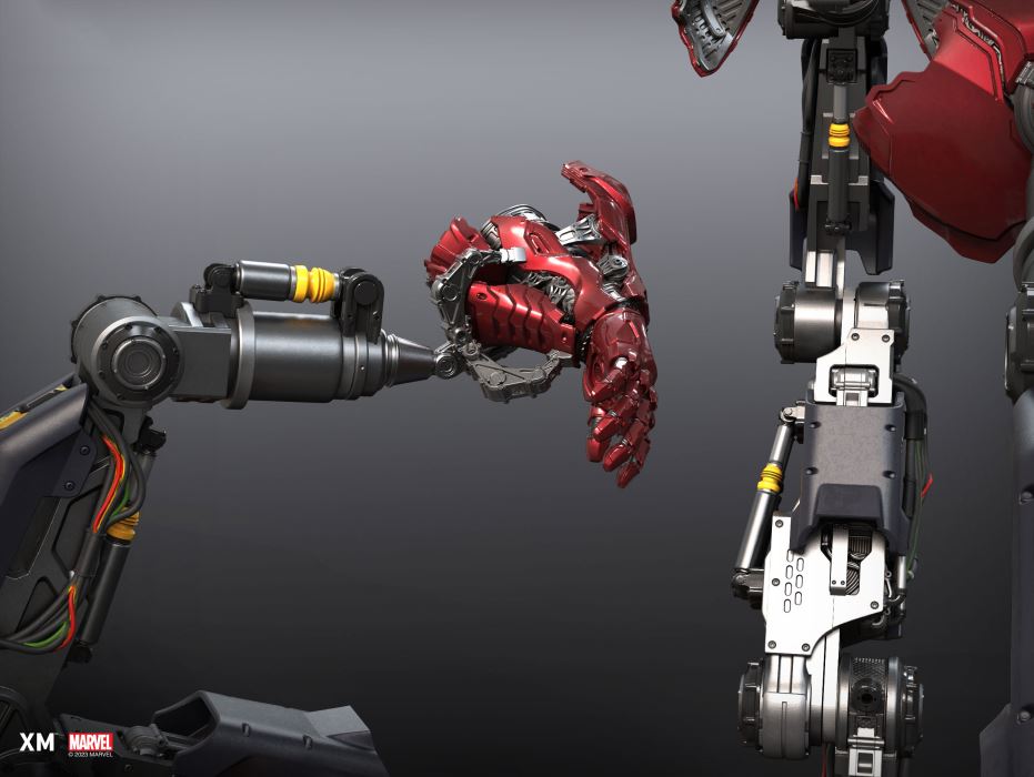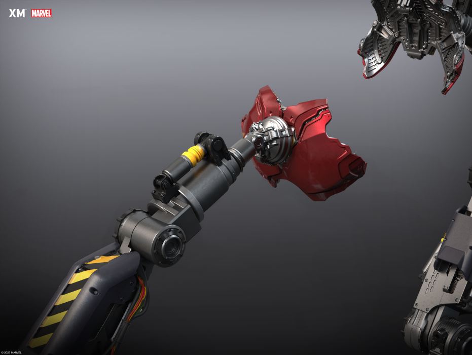 XM Studios is excited to present our next 1/4 scale MARVEL Premium Collectibles series statue, Iron Man (Suit Up)!Tony Stark activates his suit-up protocol as he gets ready for his next mission! This design showcases Tony Stark’s process of suiting up prior to utilizing nanotechnology. The platform features an assembly of robotic mechanical arms, each equipped with various components of the Iron Man suit.As Tony Stark stands in the middle of the platform, each robotic arm is shown attaching a component to him, completing the suit assembly. The platform is a 3-sided armor storage display, exhibiting how the different parts of the Stealth suit and Silver Centurion suit components are kept.Comes in Version A and Version BVersion A features a completely suited-up Iron Man as a compact alternative for collectors. Version B includes all features: Tony Stark half suited up torso, Iron Man fully suited up torso, 3-sided storage display platform, robotic mechanical arms and an additional podium to display the torso switchout separately.Click here to view Version A Version B - Movable and Removable partsVersion B comes with an additional switchout torso for collectors to display Tony Stark fully suited up in Iron Man armor.Component parts that are on to the mechanical arms are removable as an alternate display option to display with the Iron Man suited up torso.The mechanical arms joints are moveable to adjust the preferred display angle. Version B - Options to display at different heightsThe platform included in Version B is removable to provide collectors with the option to at a reduced height. End caps are provided so that the statue can be displayed without the mechanical arms, further reducing the height. Ver B Features:Highly detailed sculpt of Tony Stark suiting upCrafted in polystoneEach painstakingly handcrafted statue is individually hand-painted with the highest possible quality finishLight up featuresTwo (2) torsos: 1 showing Tony Stark half suited up, 1 showing Iron Man fully suited upRobotic Mechanical arms- moveable joints- removable from platform- armor components on arms removableRemovable platformAdditional podium Artists:Suheryanto Hatmaja (3D)XM Studios Design & Development Team Manufactured by:XM Studios Product and Box DimensionsProduct Size: 55 x 45 x 88cmEst. Product Weight: 27.5kgEst. Shipping Weight: 33kg Est. Box SizeCarton A: 80 x 55 x 38cmCarton B: 65 x 55 x 38cm Note: Prototype shown and pending final approval, final product may differ. Batteries will not be included for products with light up features due to customs.