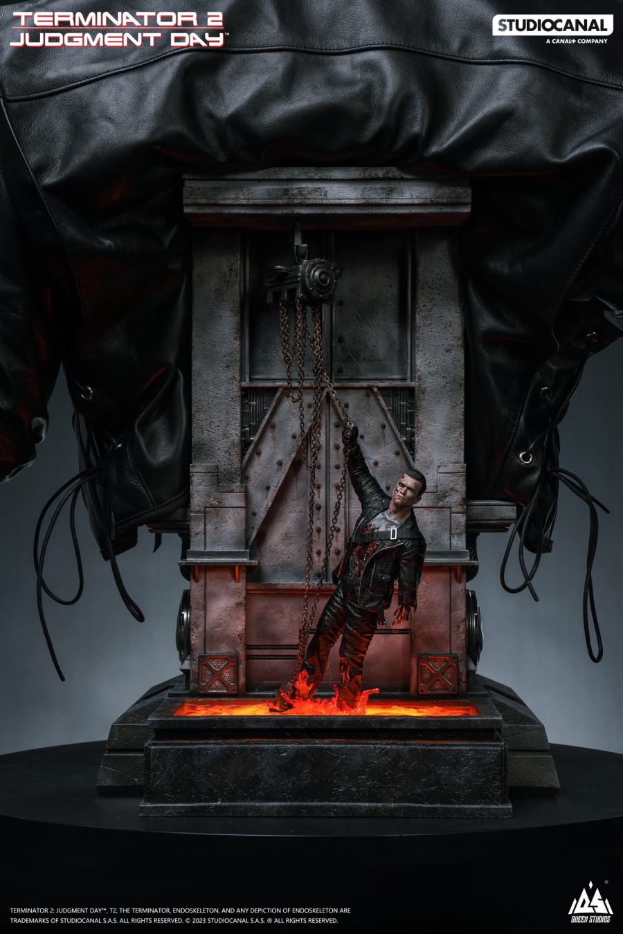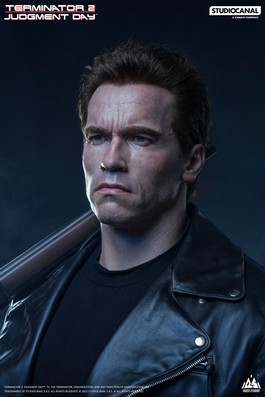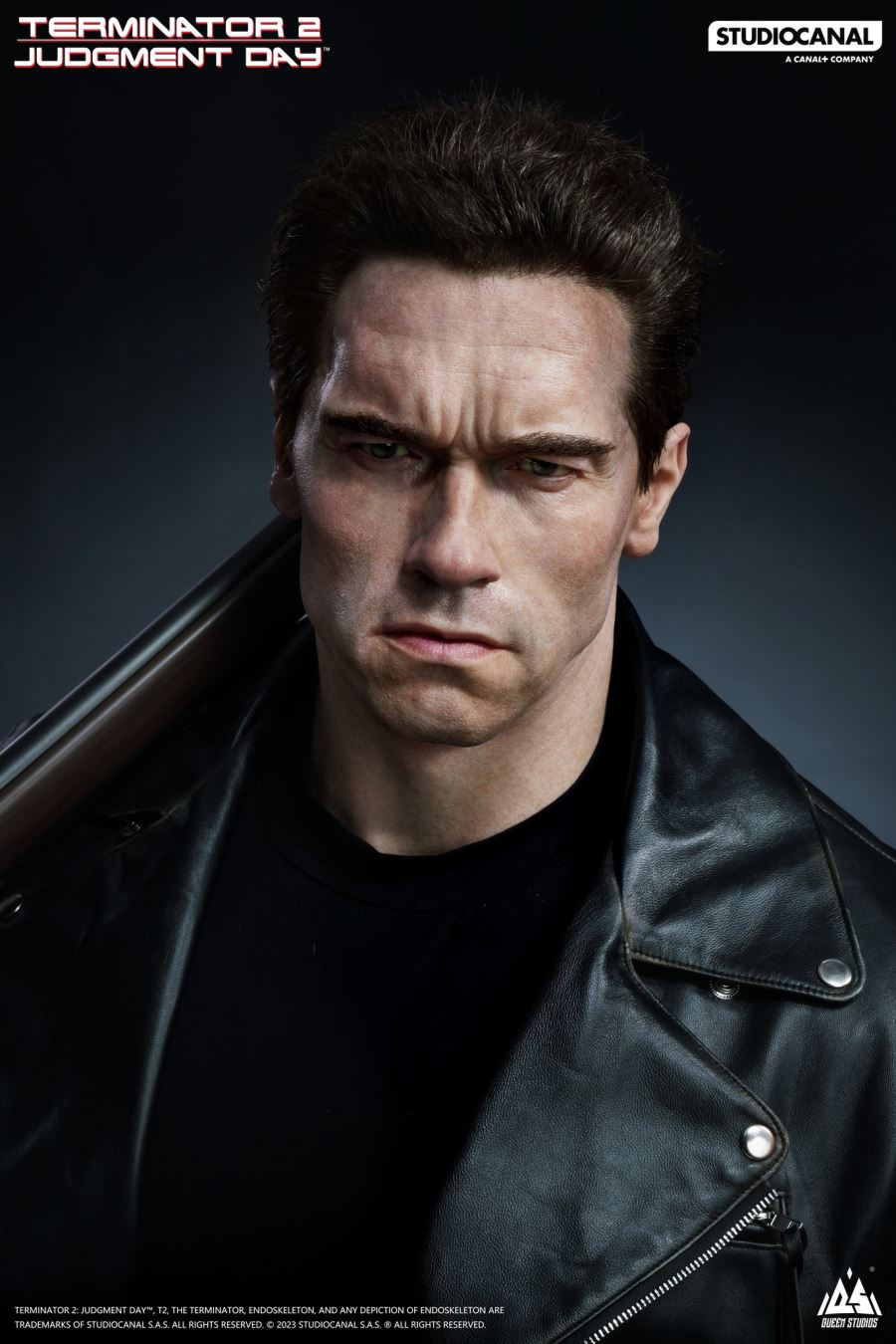 𝗣𝗥𝗢𝗗𝗖𝗨𝗧 𝗜𝗡𝗙𝗢𝗥𝗠𝗔𝗧𝗜𝗢𝗡Resin: Resin, Silicone, Genuine LeatherProduct Size: 94CM (H) × 76CM (W) × 55CM (D)Edition Size: 299Estimated Delivery Date: Q4 2024------------------------𝗔𝗕𝗢𝗨𝗧 𝗧𝗛𝗘 𝗕𝗨𝗦𝗧Inspired by the classic scene from James Cameron’s Terminator 2: Judgement Day. This 1/1 life-size bust captures the T-800 (Arnold Schwarzenegger) gripping a Winchester 1887 shotgun, clad in leather and donning his iconic sunglasses. The head sculpt has been meticulously crafted to capture the character’s likeness with remarkable accuracy.𝗔𝗕𝗢𝗨𝗧 𝗧𝗛𝗘 𝗕𝗔𝗦𝗘Our design philosophy extends to the base, and the T-800 bust's base is no exception. The front of the base draws inspiration from the movie's opening shot of the T-800, while the rear design pays homage to the movie's final scene featuring this iconic character. Each element of this collectible is thoughtfully constructed to capture the essence of the T-800's legacy.