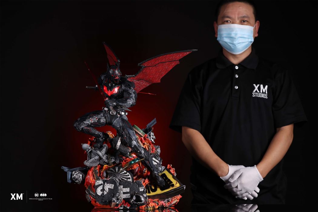 Featuring Japanese-inspired design elements and enhanced storytelling to evoke one’s imagination of unique worlds far away, we are proud to reveal the newest statue from our Batman Samurai line, Batman Beyond! This line is the result of a creative collaboration between Warner Bros. Discovery Consumer Products and XM Studios to showcase the Batman universe in unique new settings. Each highly detailed statue collectible is painstakingly handcrafted and expertly hand-painted with XM’s famous quality finish. The XM Team pulled out all the stops in developing a suit that’s worthy of being Bruce Wayne’s final suit, one worn here by his protégé in a unique world far away. This suit features intricate Japanese-inspired design motifs that have been incorporated into a high-tech suit that comes with switch-out options featuring Bat wings, beam blades, a batarang, and clawed hands. Collectors will also be able to display the statue with one of 3 head switch outs— a classic mask, a ninja-inspired mask or a kabuki-oni inspired one. Leaping over a converging portal with a mishmash of elements from parallel worlds, this statue showcases a cataclysmic event that would result in the intertwining mergence between unique far-off realities and characters. It explains how advanced technological devices such as Batman Shogun's mechanised horse may exist in a world otherwise dominated by Samurai and mystical Japanese demons. And besides familiar mementos, the base also has a conspicuous drone-like device that’s flying out of the portal belonging to none other than a certain Booster Gold… With multiversal time-travel now possible, who knows what else could come through in this Altered World! #DC #Batman Features: Highly detailed sculpt featuring Batman BeyondThree (3) head sculpts: a classic mask, a ninja-inspired mask and a kabuki-oni inspired oneTwo (2) right-arm switch-outs: 1 with the beam blade half drawn and 1 with the beam blade fully drawnLeft arm switch-out #1: a fixed arm holding a beam bladeLeft arm switch-out #2: with 2 swappable hands, 1 holding on to a batarang and 1 with unleashed clawsTwo (2) wing switch-outs: 1 with the wings opened and 1 with them retractedEach handcrafted statue is individually hand-painted and with high-quality finish Artists:James W Cain (3D)XM Studios Design and Development Team Manufactured by:XM Studios Note: Prototype shown and pending final approval, final product may differ. Batteries will not be included for products with light up features due to customs. Product and Box DimensionsProduct Size: 50*37*59cmEst. Box Size: 49*38*70cm Est. Product Weight: 9kgEst. Shipping Weight: 12kg