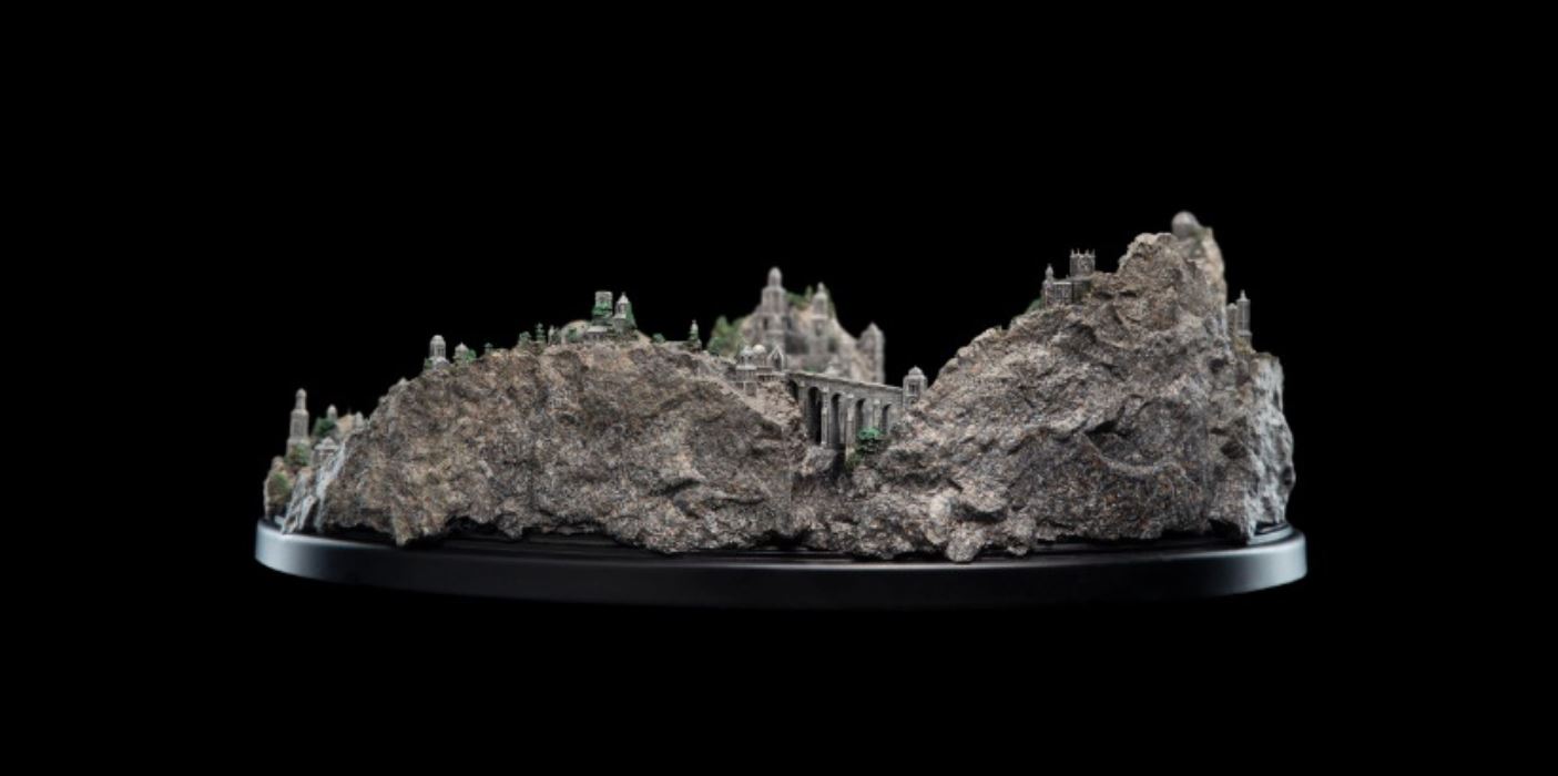 GREY HAVENSOnce a vibrant and bustling metropolis, the Grey Havens has since transformed into a serene and hushed landscape, inhabited only by a scant few elves who linger, awaiting their final departure. Yet, despite their dwindling presence, the ethereal beauty of this coastal sanctuary remains untarnished.This limited edition collectible environment perfectly captures the gracefully carved structures that organically emerge from the embrace of the encircling mountains. Their contours mimic the undulating waves of the ocean they cradle, evoking an atmosphere of calming serenity.From the careful recreation of Elven architecture to the meticulous and lifelike paint application, the tranquillity of this sacred haven and the aura of its ancient grace shines through - a testament to the enduring enchantment left by the Elves’ touch upon Middle-earthTM, and now, your shelf.FEATURES:Limited Edition;Depicts the elven harbour, the Grey Havens;Features the White Ship, upon which sailed the Ringbearers Frodo and Bilbo Baggins;Made in celebration of the 20th anniversary of The Return of The King;Digitally sculpted by Wētā Workshop veteran 3D Artist Charlotte Key;Includes a full 360° diorama of the surrounding environment;Created using reference to original film stills, bigature scans and on-set photography.It’s an emotional goodbye, but then it’s also quite a satisfying, peaceful, beautiful end to an epic trilogy; I was lucky enough to work on the original bigature for the Grey Havens and it was one of the first projects I worked on at Wētā Workshop. It was really useful to have Alan Lee’s beautiful drawings to use as a reference tool, especially when it came to the pattern work and fine detailing on buildings.Dimensions:15.36 x 5.31 x 15.36 (W x H x D) 39 cm x 13.5 cm x 39 cmWeight:8.598 lbs (3.9 kg)