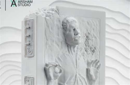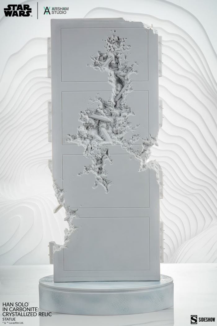 Arsham Studio and Sideshow are proud to present the Han SoloTM in CarboniteTM: Crystallized Relic Statue, a new fine art Star WarsTM collectible from world-renowned contemporary fine artist Daniel Arsham.Sculpted in Daniel Arsham’s signature style of creating future relics, this Han Solo fine art statue blends the timelessness of pop culture with the natural erosion of elements. The result is a contemporary piece of mythmaking that uncovers a piece of galactic history for collectors and art enthusiasts to enjoy. The sculpture reimagines the iconic design of this dashing smuggler frozen in carbonite containment, turning him into an archaeological monument from a long time ago and far, far away. Arsham's proprietary crystalline patterns artfully blend with the complexity of the figure's construction, with cast details perfectly preserved and scaled down from a life-size, hand-made, and unique fine artwork made by Arsham Studio.Each piece in this limited-edition release measures 21” tall and stands on a 10 x 10” blue-tinted base to subtly and elegantly highlight the delicate monochromatic matte white design of the sculpture. The Han Solo in Carbonite: Crystallized Relic Statue comes in custom-designed rigid, magnetic closure packaging that features concept art of the fully realized collectible highlighted with spot gloss. Custom-cut high-density foam provides premium protection, while the sleek, matte black exterior decorated with silver foil, and the official Sideshow and Arsham Studio seals, is display-worthy in its own right. Star Wars collectors won’t want to miss their opportunity to bring home this museum-quality collectible, the latest in a series designed by Daniel Arsham and produced by Sideshow.Unearth the possibilities of pop culture and fine art in your collection with the Han Solo in Carbonite: Crystallized Relic Statue by Daniel Arsham today.Purchase LimitsLimit of 2 per person.MaterialsPolystoneView in ARSee in AR (Mobile Device)Product SizeHeight: 21 (53 cm)Width: 10 (25 cm)Depth: 10 (25 cm) ** Size and weight are approx. valuesLearn moreSKU700235UPC747720264557