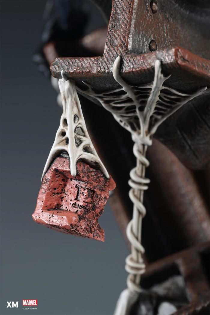 XM Studios is excited to present our next 1/4 scale Marvel Premium Collectible, Symbiote Spider-Man! Each painstakingly handcrafted statue is individually hand-painted with XM’s famous quality finish, and comes in a bold, dynamic, and story-laden style. Fresh off the events of Secret Wars in the comics, there was a period of time when Spider-Man’s enhanced abilities with the symbiote suit would enable him to become an even more formidable Super Hero. Of course, this was before he would notice his suit’s sinister secret! In this statue, he is perched on top of a pile of cityscape debris barely held together with webbing as the mysterious suit accentuates his vascularity, giving you a small glimpse of the explosive power and agility possessed by our favourite web-slinging wall crawler. As his muscles contract, he readies himself to dodge or to launch himself into action against villainous foes. And if you look closely, the name of a familiar crime boss can be seen on the statue as well. One whose criminal empire runs so deep within New York City that even its very construction bricks bear his name – a reminder of his level of influence within this bustling metropolis. Ver B Features:Highly detailed sculpt featuring Symbiote Spider-ManCrafted in PolystoneEach painstakingly handcrafted statue is individually hand-painted with the highest possible quality finishArtists:InHyuk Lee (2D)Ray Toh (2D)Jonah Buzeta (2D)Paul Tan (3D)Jeremy Jap (3D)XM Studios Design and Development Team Manufactured by:XM Studios Product and Box DimensionsProduct Size: 36 x 38 x 64cmEst. Box Size: 46 x 36 x 73cmEst. Product Weight: 6kgEst. Shipping Weight: 9kg Note: Prototype shown and pending final approval, final product may differ. Batteries will not be included for products with light up features due to customs.