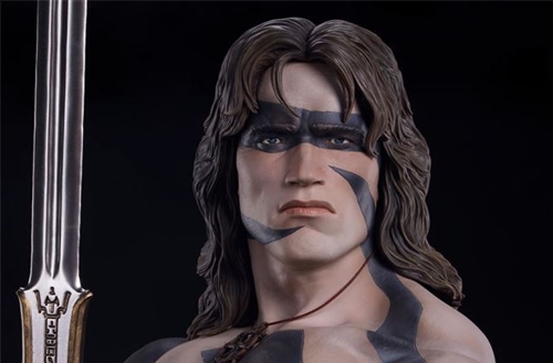 Sideshow and Premium Collectibles Studio are proud to present the Conan 1:2 Scale Elite Series Statue - Warpaint Edition, a gorgeous new tribute to the epic sword and sorcery film.Standing at a staggering 46” tall, this is the definitive Conan the Barbarian statue . Featuring an uncannily accurate portrait of Arnold Schwarzenegger in his iconic role, this collectible brings the Cimmerian warrior to life as never before. The Conan 1:2 Statue features a costume masterfully crafted in real fabric including pants, gauntlets, boots with faux fur trim and a faux fur covered sheath at his hip.Clutching the Atlantean sword with both hands before him, every muscle in Conan's body appears ready for the next challenge that awaits him. The beautiful paint work on the statue emphasizes the expertly sculpted musculature of this larger than life warrior. The Warpaint Edition sports a unique deco and museum style base paying homage to the fan-favorite scene in which Conan and his allies infiltrate the temple of the villainous Thulsa Doom. The stark contrast of the white and black body paint adds an even greater sense of drama to this already imposing statue. The Temple base is decorated with snake emblems and marble like finishes.Bring glory to Crom and add the Conan 1:2 Scale Elite Series Statue - Warpaint Edition by PCS to your collection today!Purchase LimitsLimit of 2 per person.View in ARSee in AR (Mobile Device)Product SizeHeight: 46 (117 cm)Width: 16 (41 cm)Depth: 16 (41 cm) ** Size and weight are approx . valuesLearn moreSKU9131892Vendor IDPCSCONAN12WPUPC783214378409