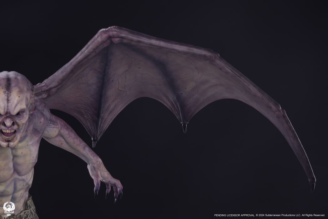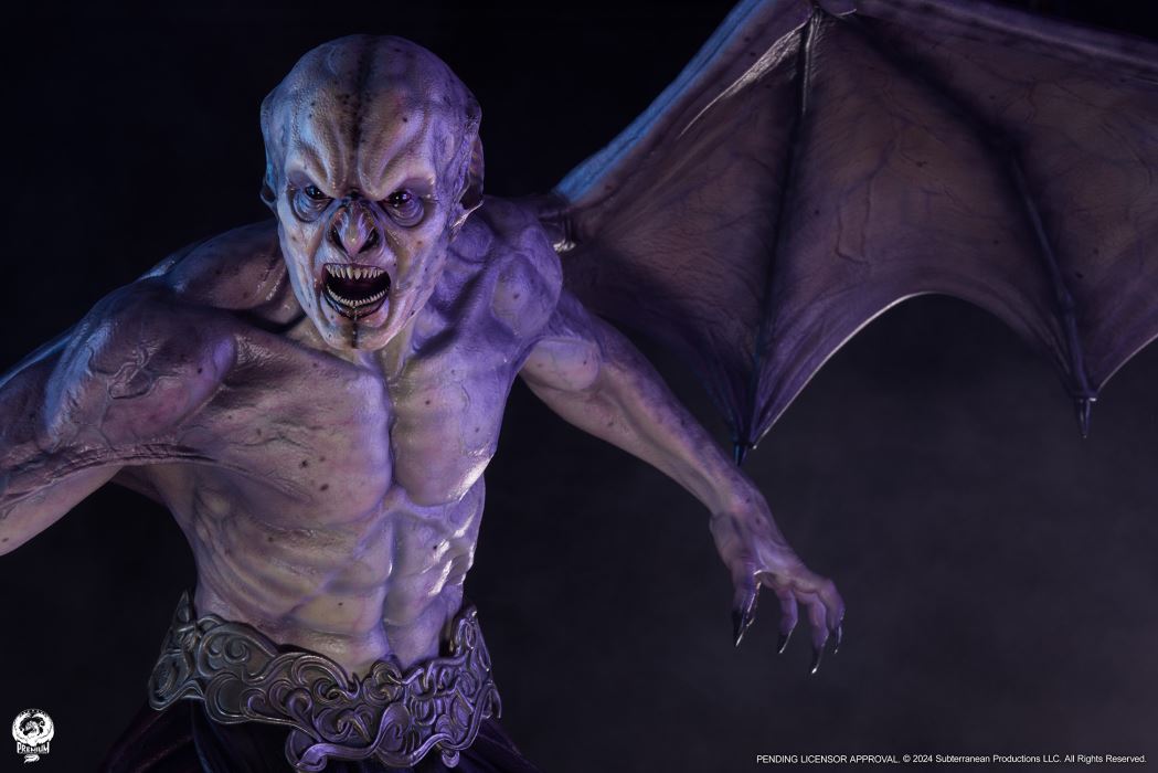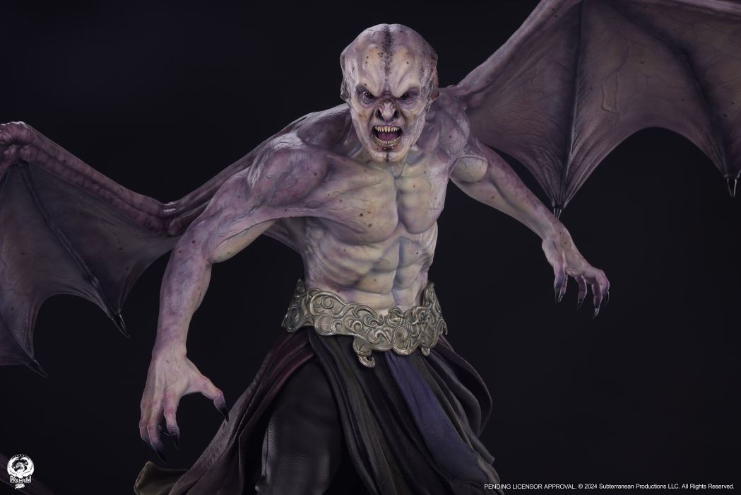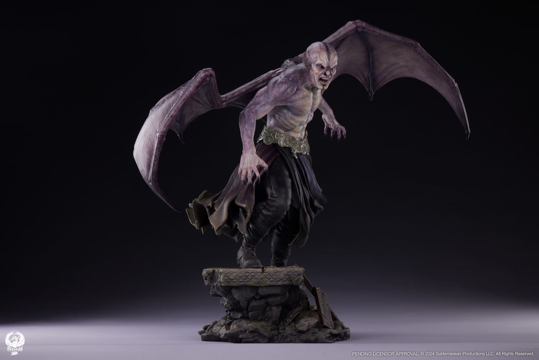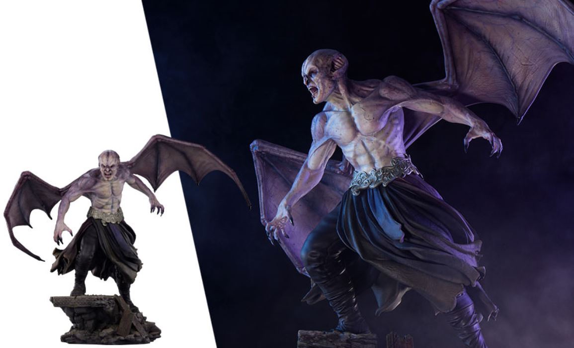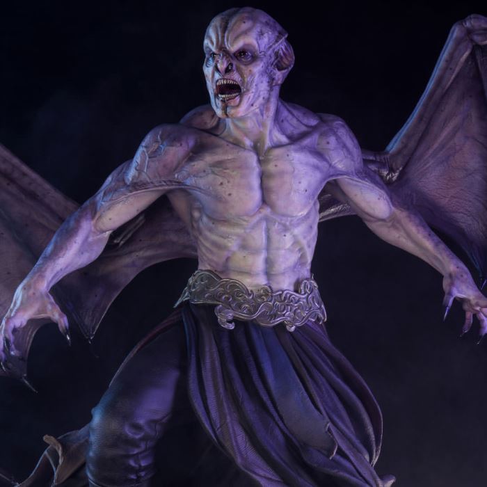 Sideshow and Premium Collectibles Studio are proud to present the Marcus 1:3 Epic Series Statue based on his appearance in the hit action/horror film Underworld: Evolution.The Marcus 1:3 Statue is fully sculpted standing nearly 27” tall with an intimidating 30” wingspan. This unique vampire design is brought to stunning life with detailed sculpting capturing the musculature and supernatural vascularity of this immortal creature. Marcus’ bat-like features and razor sharp teeth bring some serious severity to his ferocious expression. The life-like textures of his tattered clothing and ornate belt add yet another layer of dimension to this impressive design.The statue is elevated even further by the incredible paintwork on display. The subtle purple gradation on Marcus’ skin adds depth to his chiseled from and the glossy black finish on his inhuman eyes will send chills down the spine of even the bravest collector. His massive purple-hued leathery wings are detailed with intricate veining that carries through the torso adding a cryptic cohesion to this nightmarish collectible.Awaken the beast within and add the Marcus 1:3 Scale Epic Series Statue to your collection today!Product SizeHeight: 26.5 (67 cm)Width: 32 (81 cm)Depth: 17 (43 cm) *