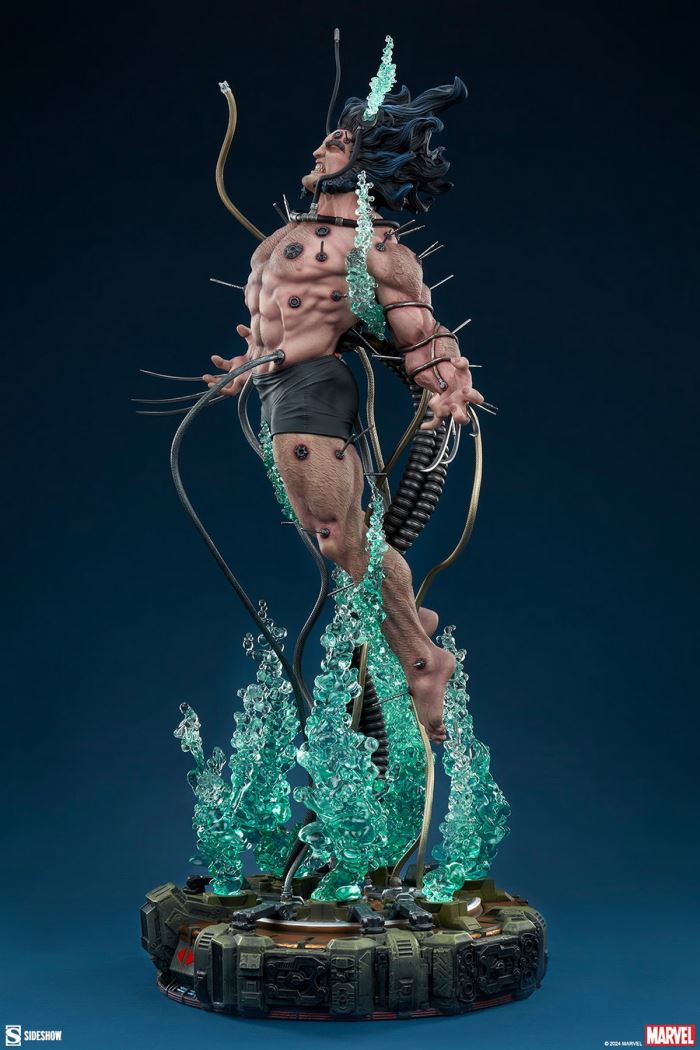 I don't know when, where, or even who I am. But I do know this: I'm an expert on pain.Sideshow presents the Wolverine: Weapon X Premium FormatTM Figure, a fearsome Marvel collectible which explores the hero's death-defying origins.Measuring 25.25” tall, 14.13” wide, and 10.88” deep, the Wolverine: Weapon X Premium Format Figure shows Logan as he endures the excruciating procedure which gave him an Adamantium skeleton. Suspended in an underwater tank, Department K's latest test subject grits his teeth while he writhes in agony. Sharp sprues and tubes protrude painfully from all over Wolverine's bare body, injecting an indestructible steel alloy to fuse to his bone structure — including the claws which extend from the feral mutant's aching knuckles.This fully sculpted X-Men collectible depictions Wolverine as the survivor and pillar of strength that fans know him to be. Inspired by his transformation into a living weapon, the entire piece blends elemental and industrial aspects through sculpted water, wires, and the aggravated skin marred by infusion ports which force liquid metal to permeate his skeleton. The Marvel statue also includes light-up features beneath the clear-cast bubbles, giving it an eerie and exciting ambiance that will stand out on every shelf. From the circular tank base to Wolverine's wild hair, every detail emphasizes the pain and peril of Wolverine's journey into becoming a super hero.Experiment with your collection and add the Wolverine: Weapon X Premium Format Figure to your display today!Additional DetailsPurchase LimitsLimit of 2 per person.MaterialsPolystoneView in ARSee in AR ( Mobile Device)Product SizeHeight: 25.25 (64 cm)Width: 14.13 (36 cm)Depth: 10.88 (28 cm)Weight: 10 lbs (4.5 kg) ** Size and weight are approx. valuesLearn moreSKU300869UPC747720264656